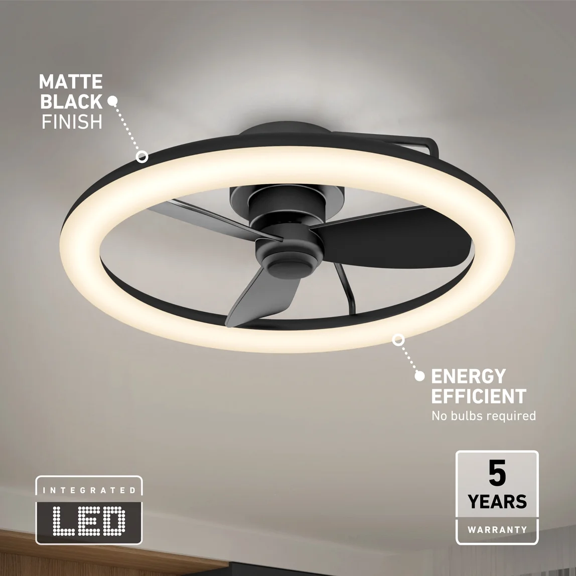 Artika 23in Darren Hugger Modern LED Ceiling Fan Black with Remote