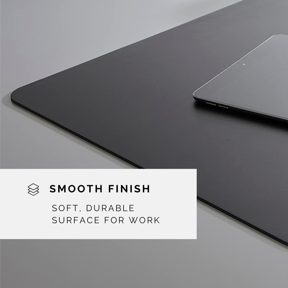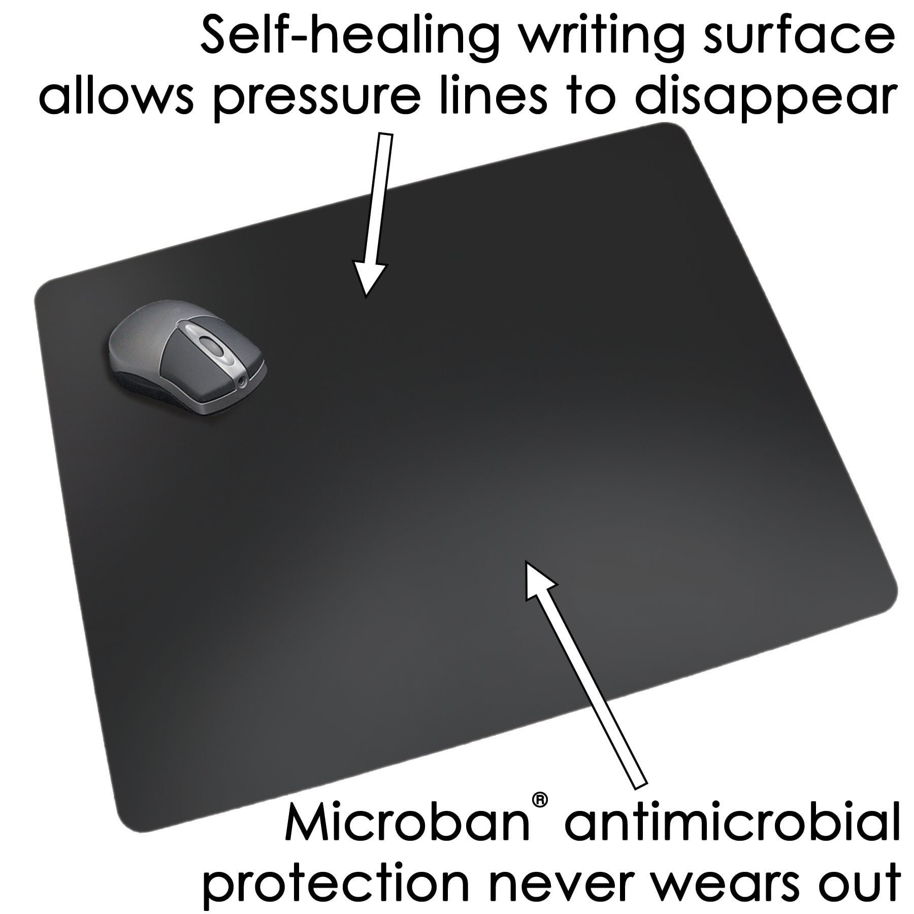 Protective desk pad is a must for wood desktops and is safe for all desk finishes. Use the Rhinolin II Desk Pad to protect your desktop from scratches, stains and spills. Desk pad is infused with antimicrobial product protection to inhibit the growth of stain-causing bacteria and provides an ultra-smooth writing surface. PVC desk pad also offers a 3/16″ thickness, low-glare black surface and durable washable surface. Ergonomic surface enables smoother writing. Soft, anti-skid, suede-like backing keeps pad in place.