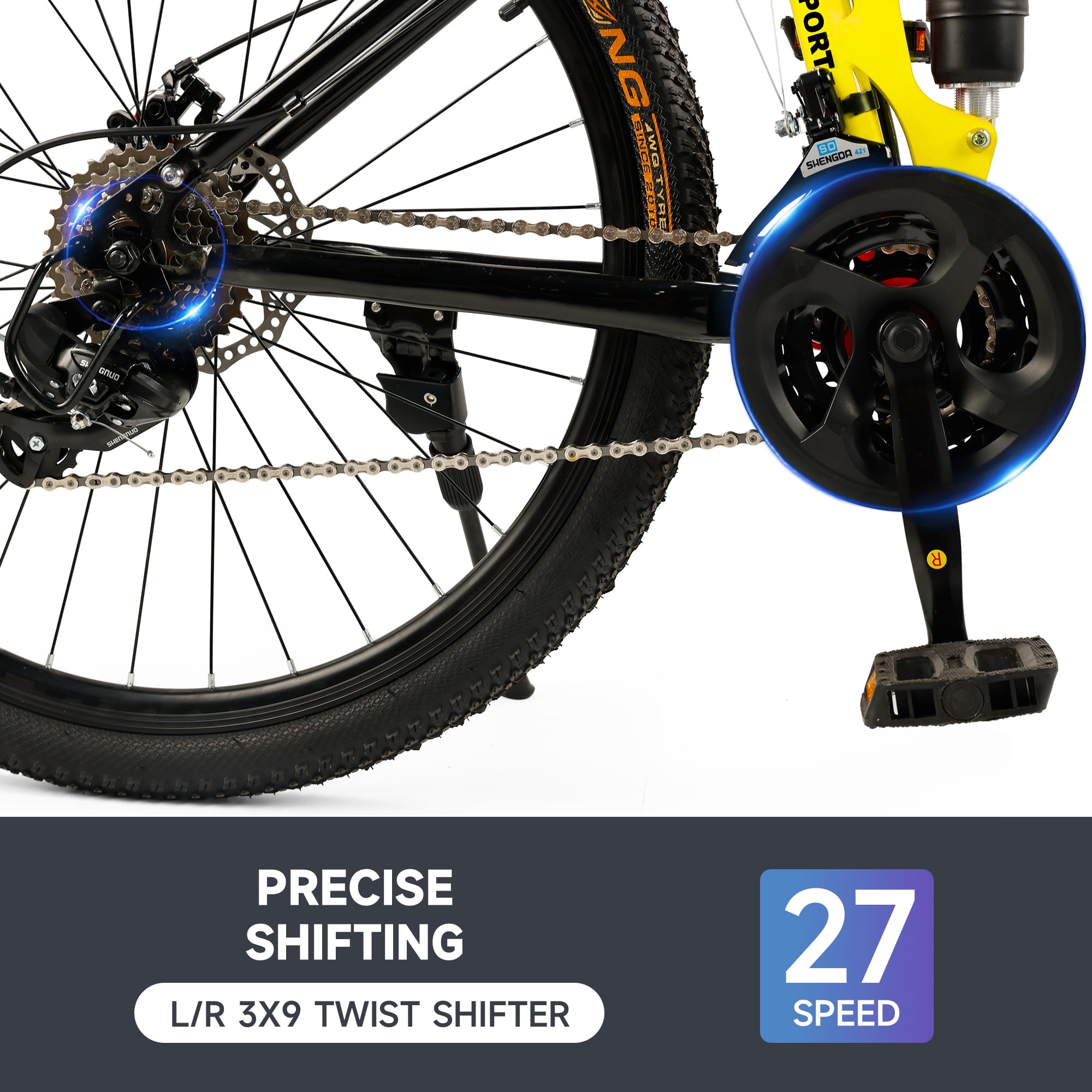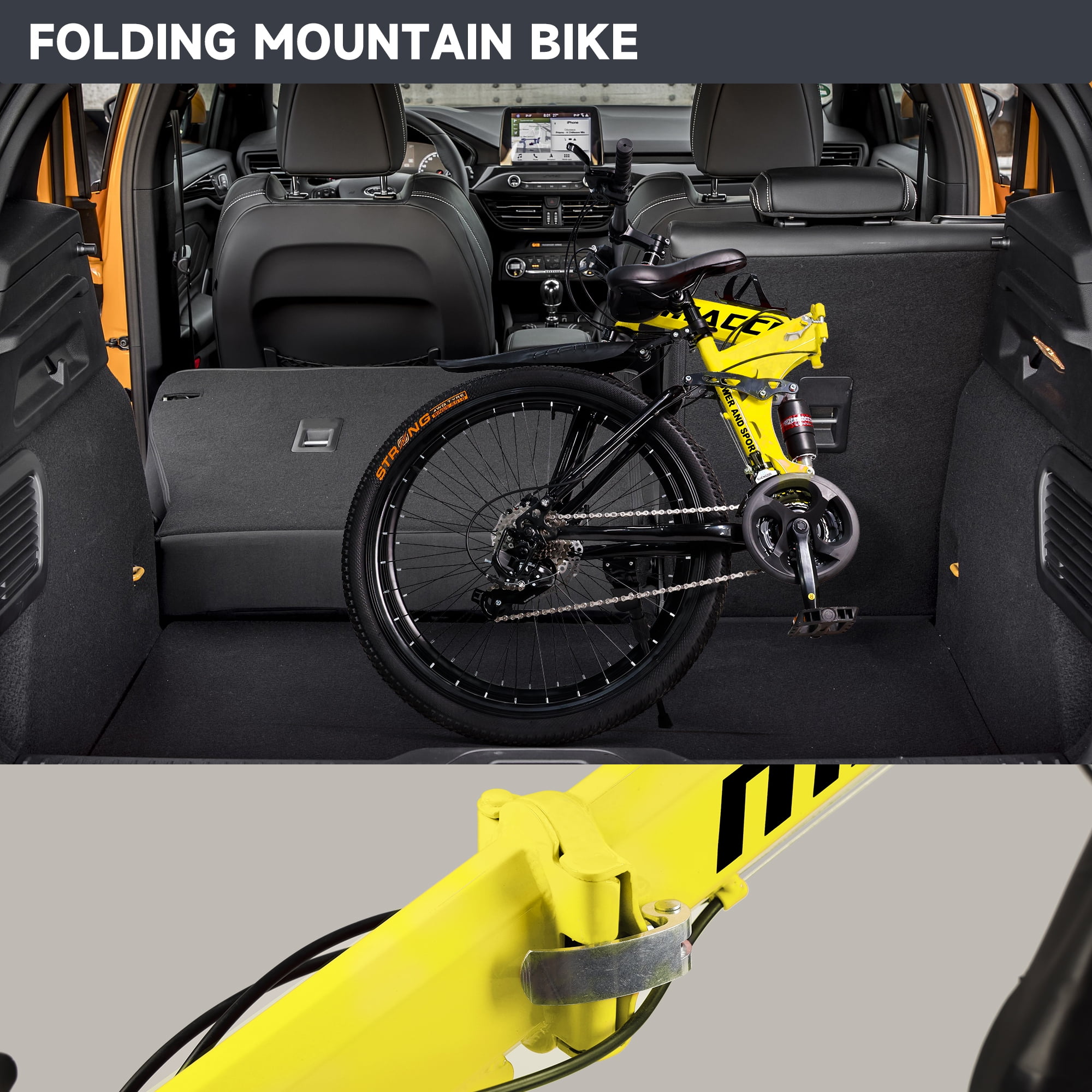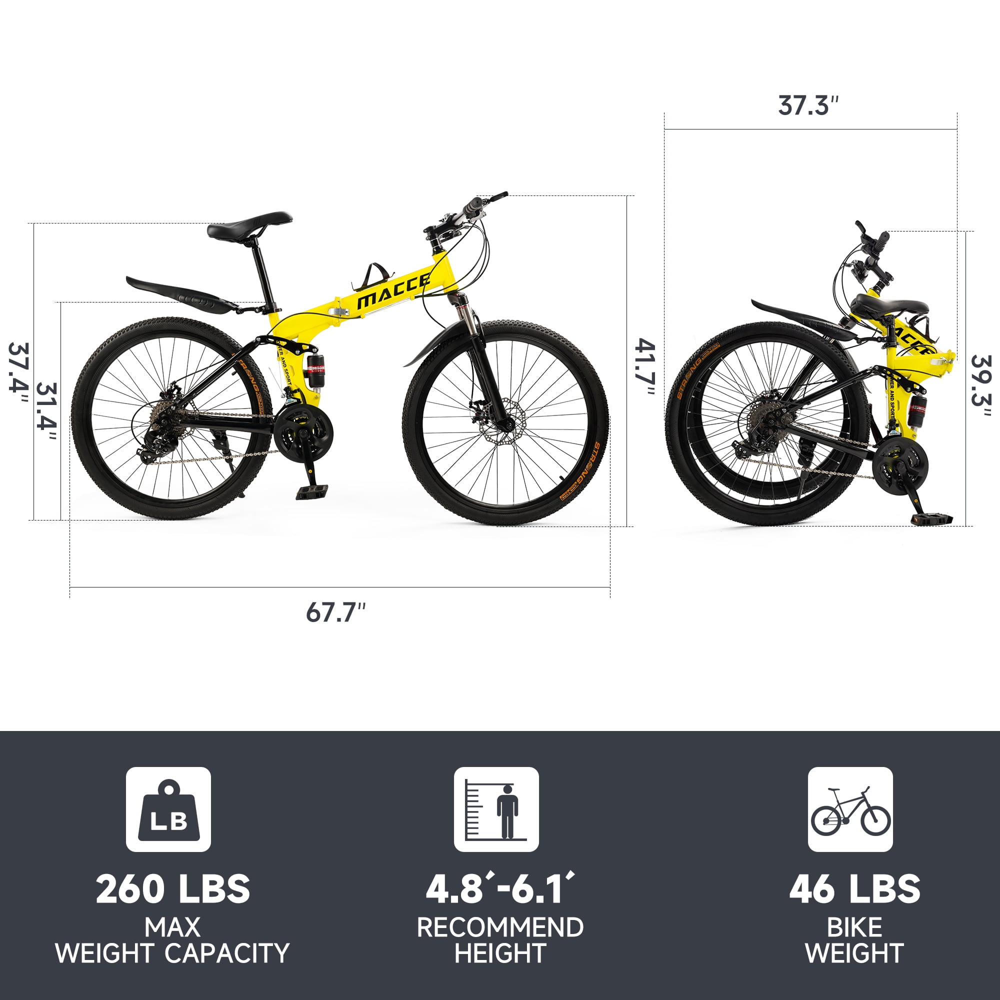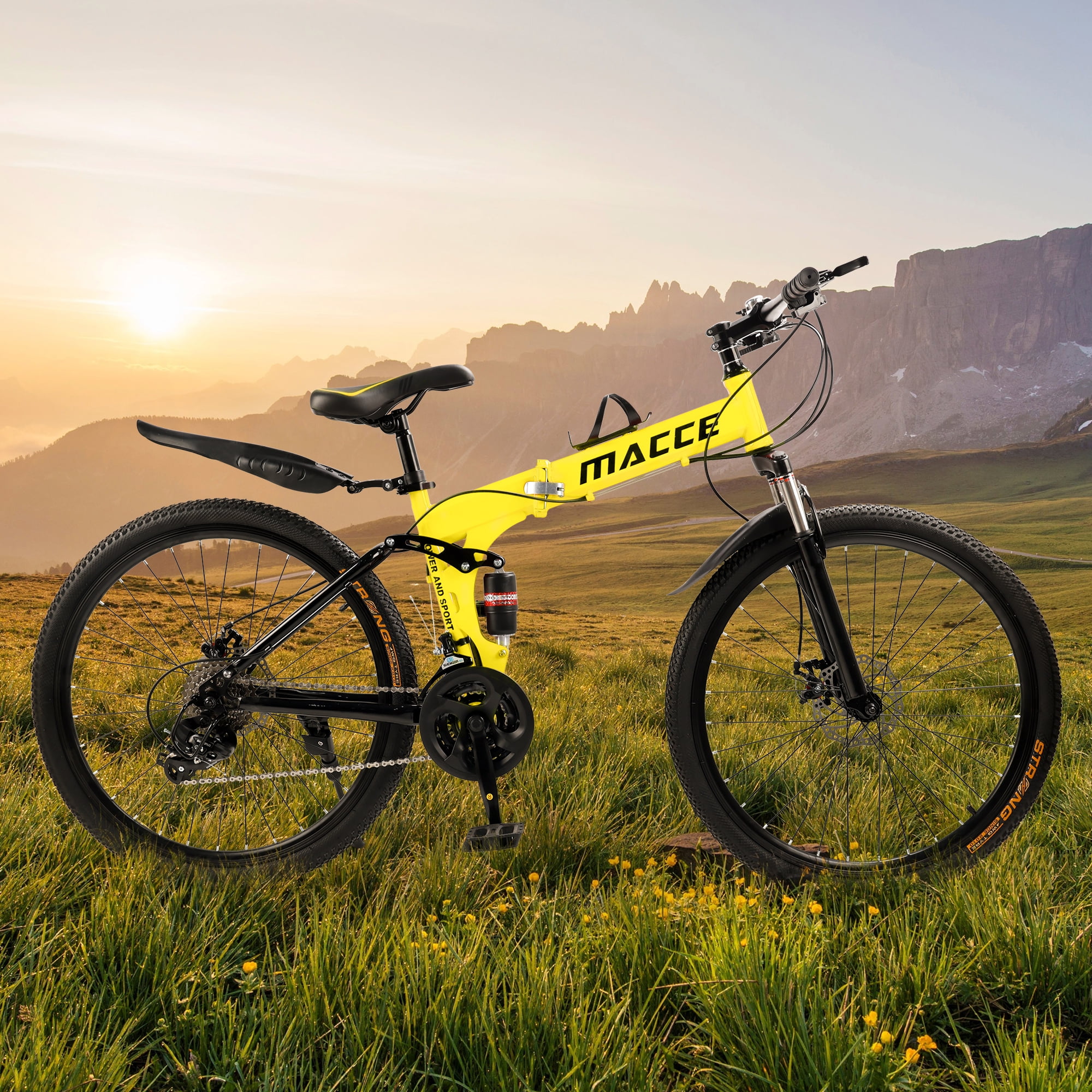ARTUDATECH 26 Inch Folding Mountain Bike 27 Speed Full Suspension MTB ARTUDATECH 26 Inch Folding Mountain Bike 27 Speed Full Suspension MTB Foldable Bicycle Artudatech’s premier mountain bike, tailored for today’s adventurers conquering rugged trails. Our mountain bike epitomizes versatility and performance, featuring a foldable design for effortless transport and storage convenience. Engineered with cutting-edge suspension technology, each ride promises unmatched comfort and control over various terrains. Enhanced with precise disc brakes, our bike ensures reliable stopping power, instilling confidence in every descent. Crafted from high-grade carbon steel, the frame offers enduring durability and stability, complemented by lightweight aluminum alloy rims for agility and resilience. With its 27-speed capacity and intuitive gear shifting mechanism, every detail is meticulously designed for the ultimate riding experience. Experience peak mountain biking excellence with Artudatech. Specifications: Color: Black / White / Red / Yellow Speed: 27-speed versatility for varied terrain Frame: High carbon steel construction for durability and stability Front Fork: Spring Suspension Fork for enhanced shock absorption Hub: Disc brake hub for reliable performance in all conditions Center Shaft: 3S sealed shaft for smooth pedaling experience Thumbshift: One-piece thumbshift for intuitive gear changes Chain: 110-speed variable chain for seamless transitions Flywheel: 9-speed tower wheel for efficient power transfer Brakes: Dual disc brakes for responsive stopping power Rim: Lightweight aluminum alloy rims for agility and durability Package Includes: 1 Foldable Mountain Bike 1 Assembly Tools 1 User Manual 1 Bike Lock 1 Air Pump 1 Bike Bell 1 Cup Holder as a special gift