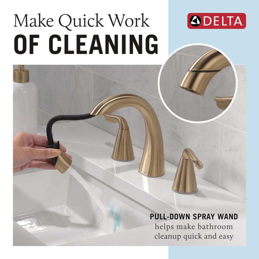 The fluid lines of the Arvo™ Bath Collection bring a delicate, serene look to the bath while an integrated pull-down spray wand simplifies cleanup. You can install with confidence, knowing that Delta faucets are backed by our Lifetime Limited Warranty. Delta WaterSense labeled faucets, showers and toilets use at least 20% less water than the industry standard—saving you money without compromising performance.