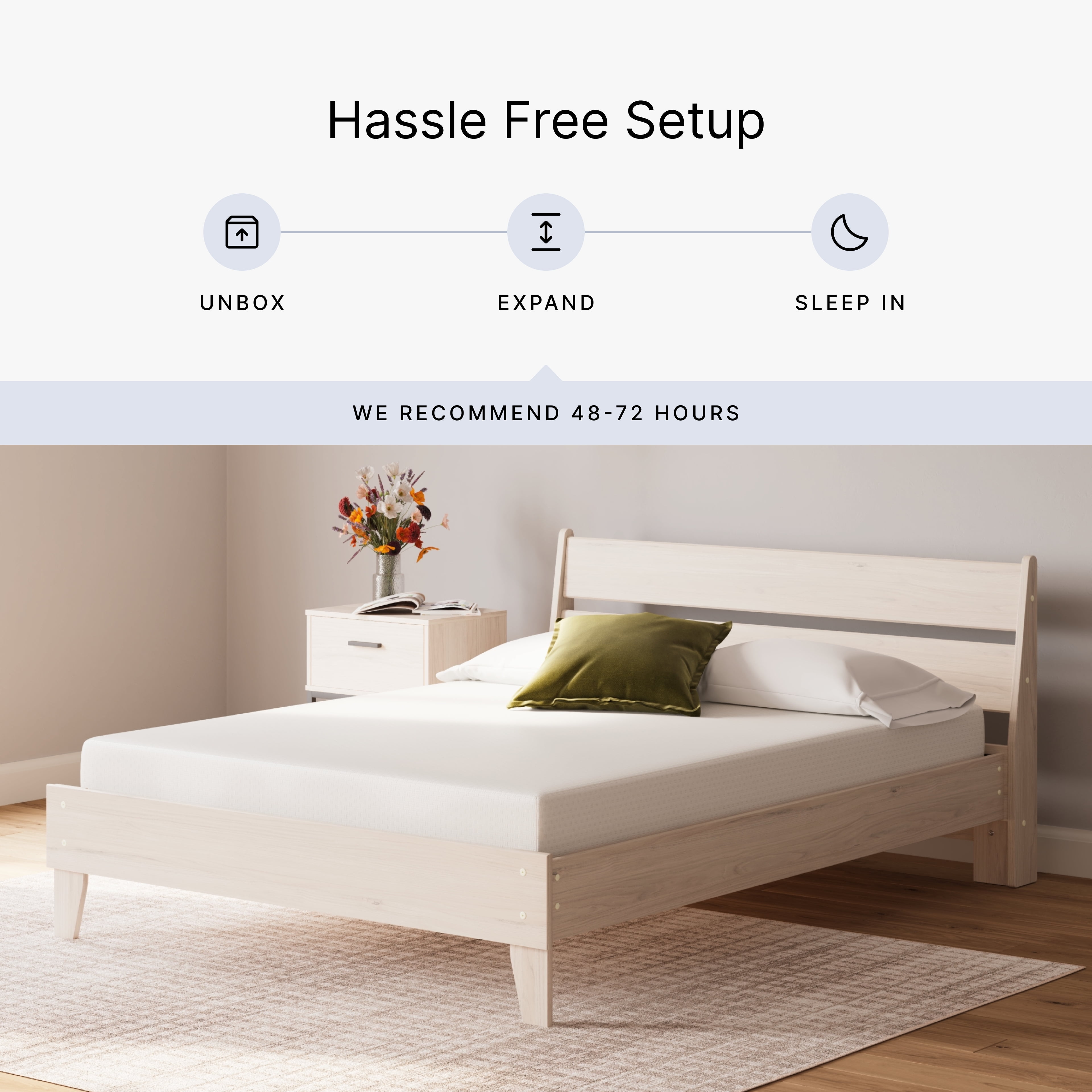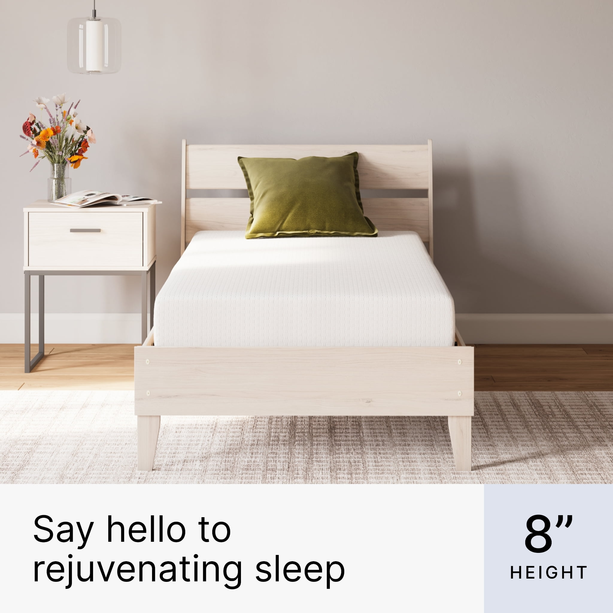 Transform your bedroom with this premium twin-size memory foam mattress from Signature Design by Ashley. Engineered for optimal comfort, the mattress features cooling technology and body-contouring memory foam that helps relieve pressure points while you sleep. The robust high-density support foam base reduces motion transfer, making it perfect for couples. This medium-feel mattress combines plush comfort with reliable support for a better night’s rest. The convenient bed-in-a-box delivery makes setup easy in any room. Simply unbox, unroll, and watch your mattress expand to its full 8-inch height within 48 hours. The luxurious HyperCool stretch knit cover promotes airflow while providing lasting durability and consistent comfort across the entire sleep surface