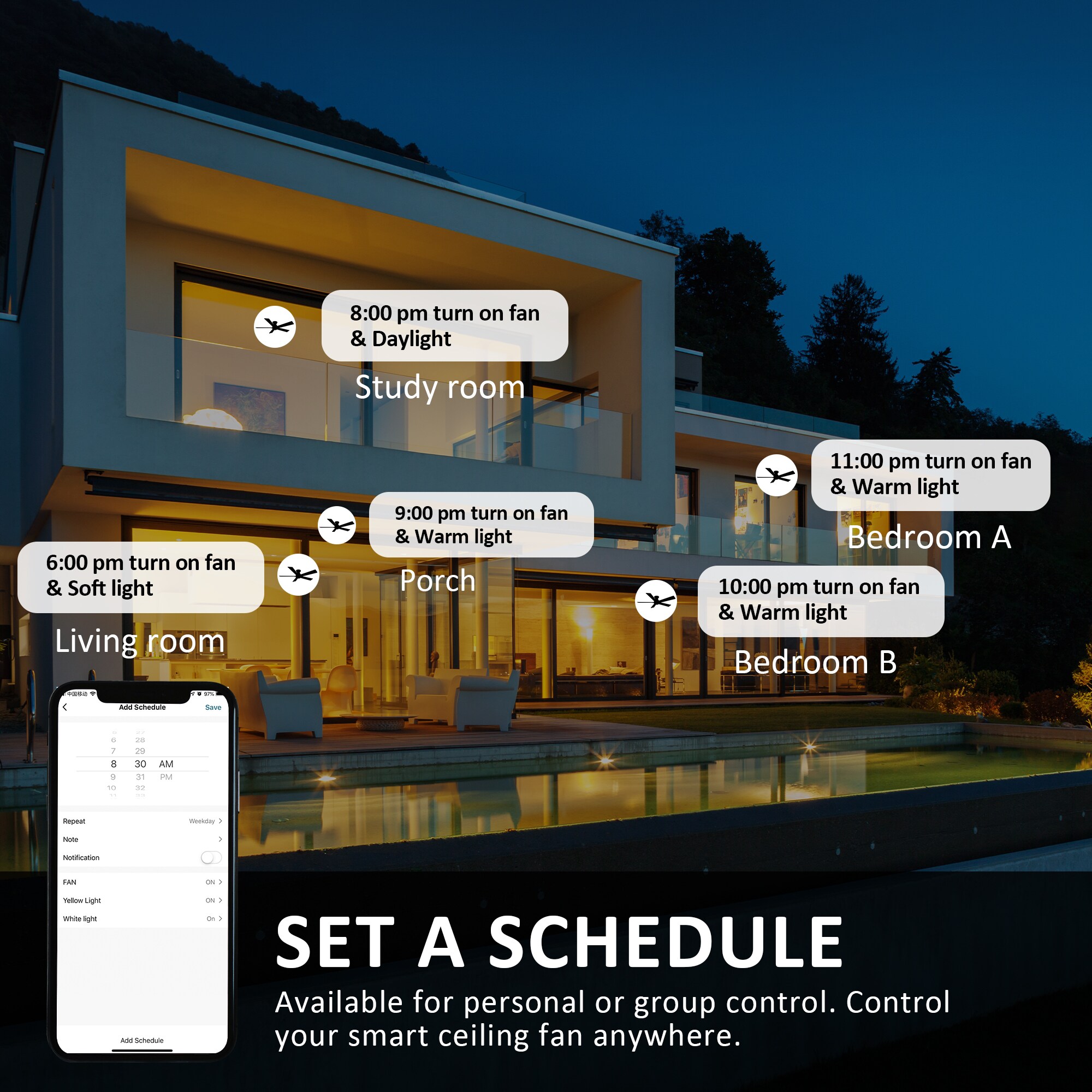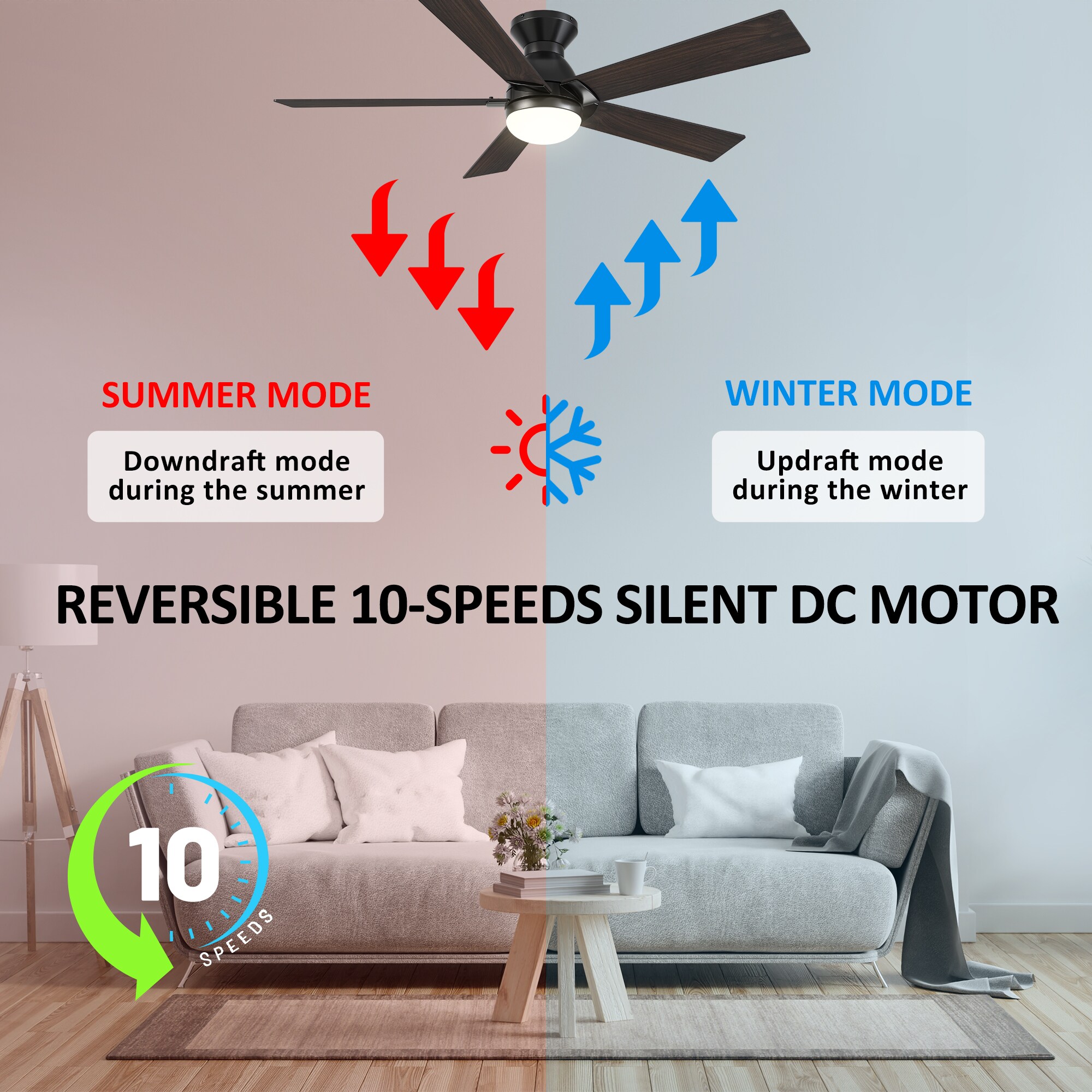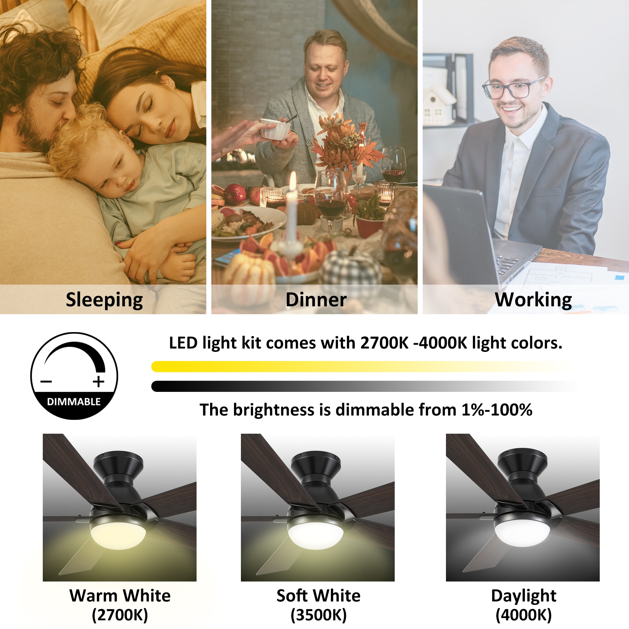 The Aspen 52-in smart ceiling fan offers a combination of cooling, illumination, and aesthetics, making it an ideal choice for spacious indoor living areas. With its sleek design and Black finish, this Wifi-enabled smart ceiling fan showcases a blend of simplicity and elegance. It incorporates elegant Plywood blades and has an Integrated 4000K LED daylight, enhancing both functionality and style. The fan provides convenient features such as a Remote control, Wi-Fi apps, Siri Shortcut compatibility, and Voice control technology, making it compatible with Amazon Alexa and Google Home Assistant for effortless fan customization.