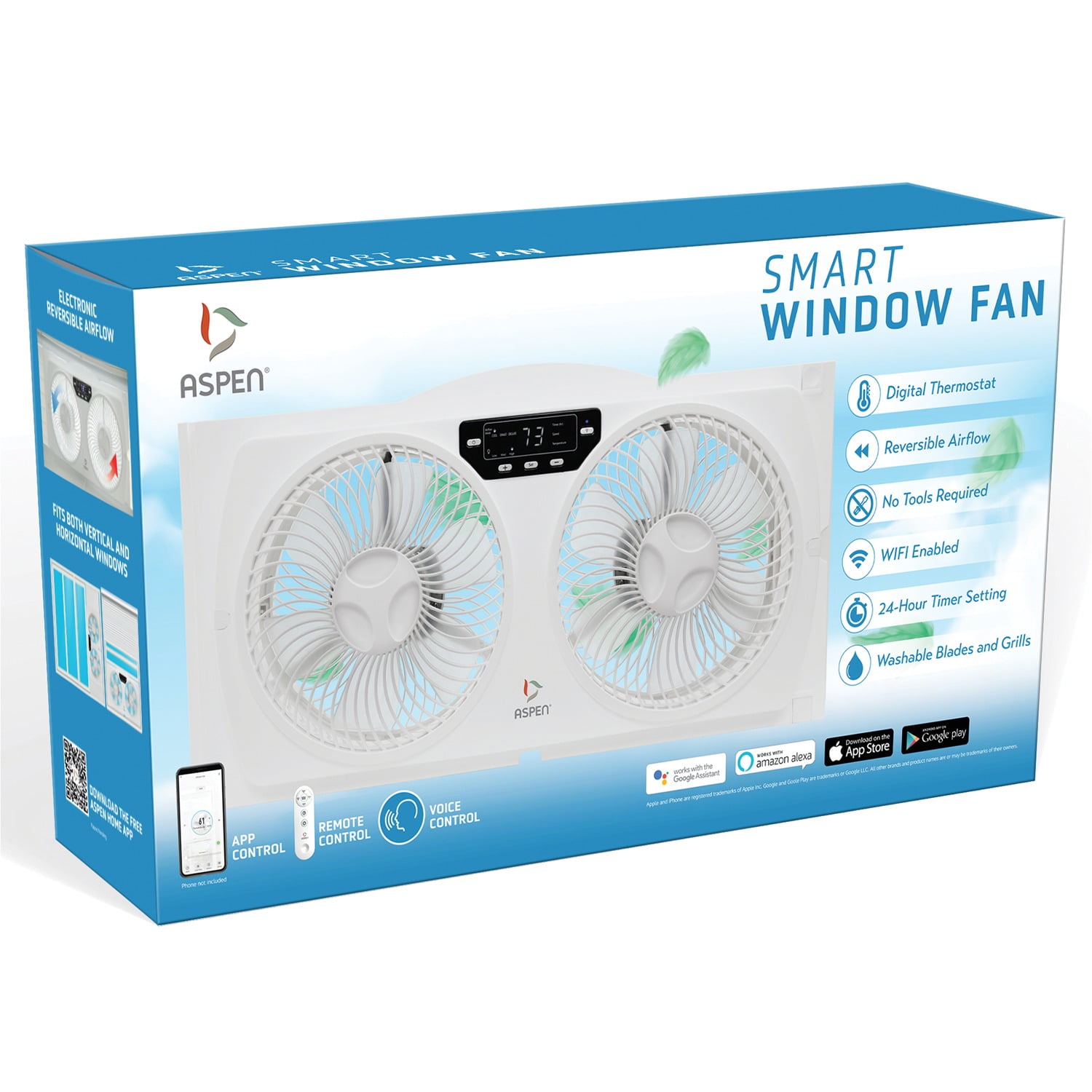 Aspen ASP-200 Smart Wi-Fi Window Fan/ Works with Google Assistant/ Washable Blades