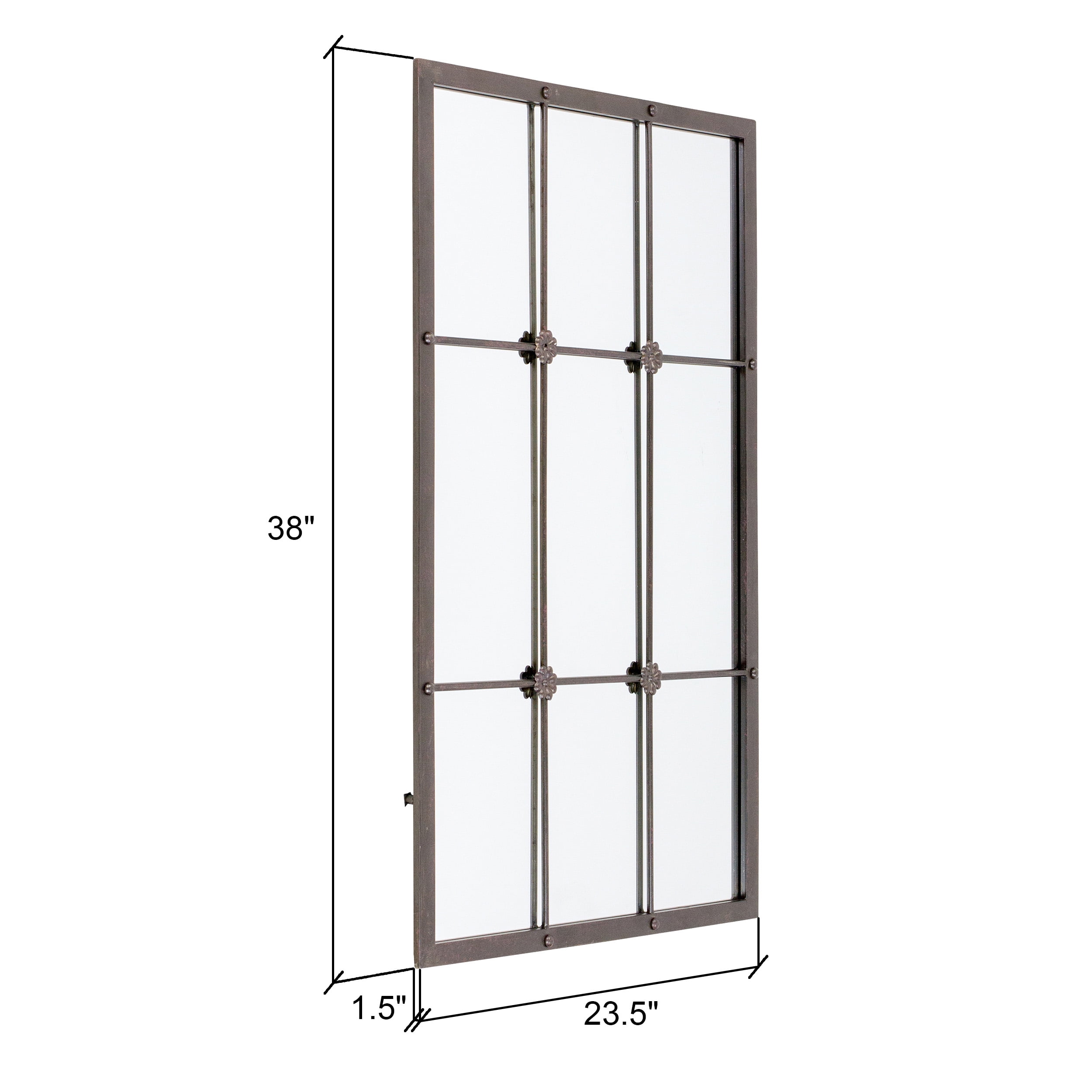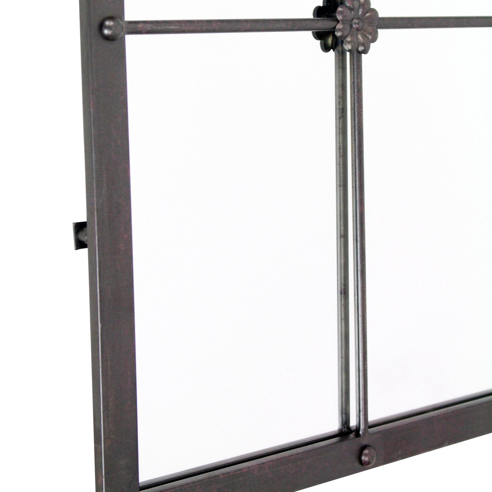 This window pane wall mirror makes an attractive addition to any space. Featuring a dark metal frame and flower designs that decorate the center of the mirror. Use this mirror to enlarge the feel of your space. You can choose to place two or more next to each other to create a stunning wall feature that your guests are sure to notice and comment on. Can be hung vertically or horizontally. Features Iron mirror frame Dark brown finish Can be hung vertically or horizontally Buy 2 or 3 and display together for a distinctive wall feature Makes your space feel largerSpecifications Dimension: 38″H x 23.5″W x 1.5″D Weight: 22 lbs – SKU: ASPR2018