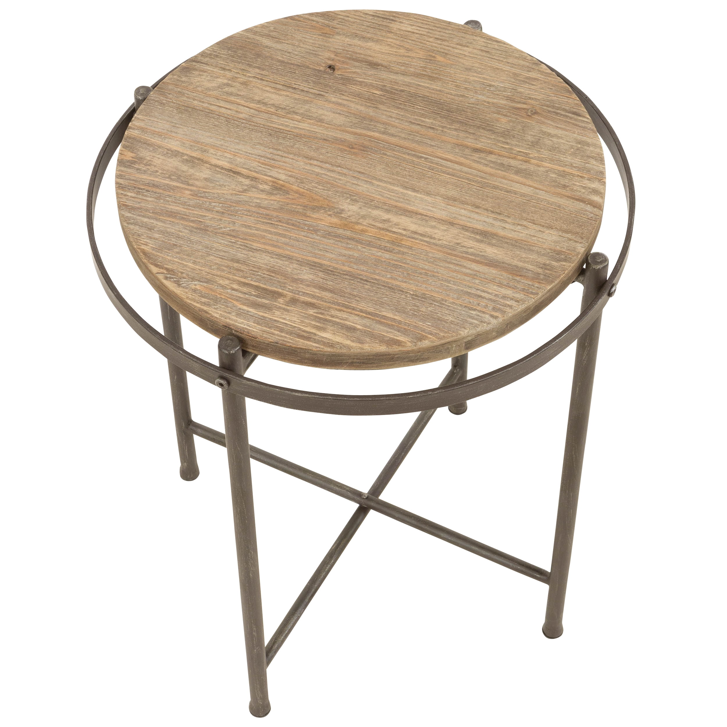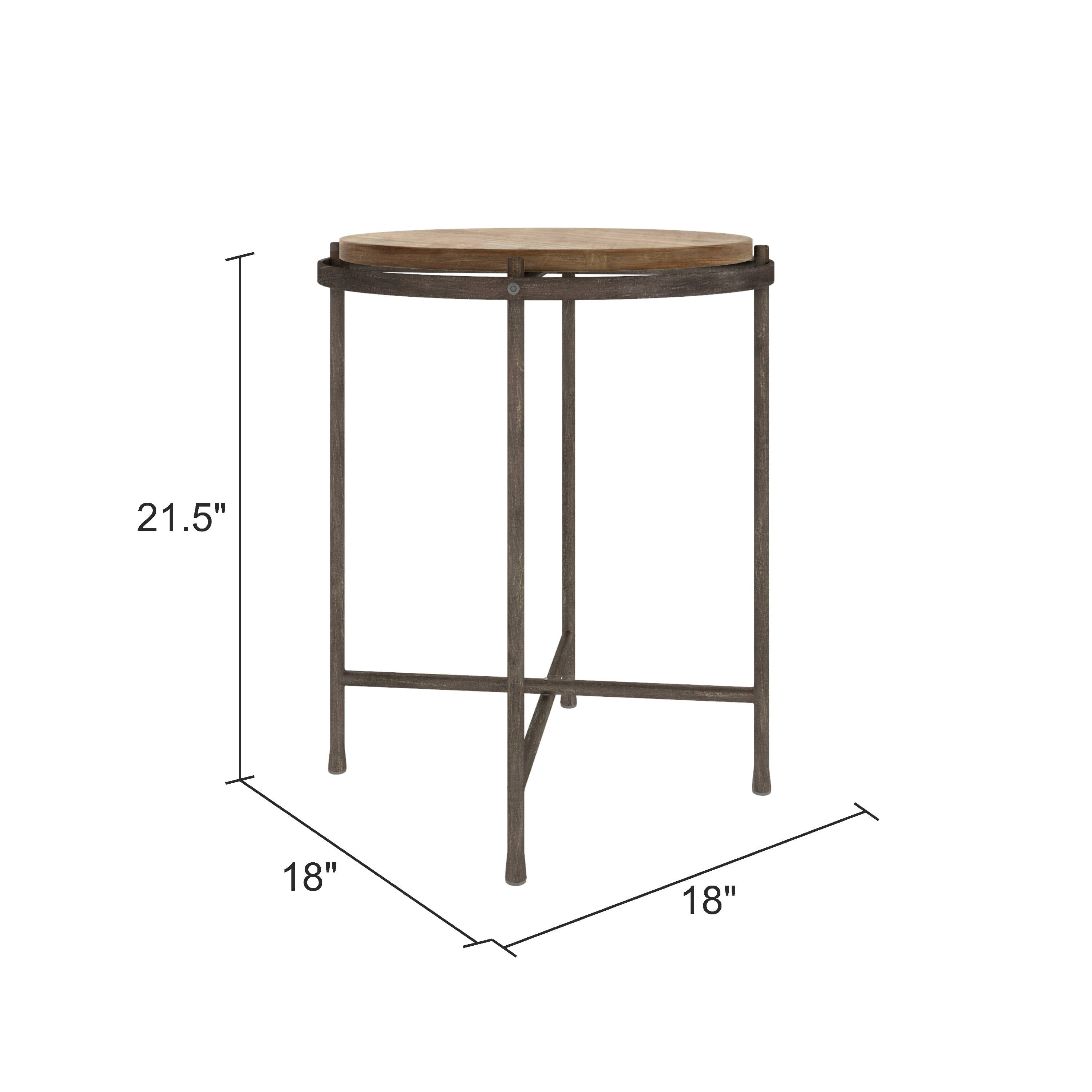 Modern style meets rustic chic, this table incorporates both elements of wood and iron. The wood top is encased in distressed gray iron to create a slight open design around its edge. Draw attention to your rustic, modern, or industrial space with this handsome table. Features Iron legs with inlayed wood top Distressed gray finish Blends rustic and modern elements Easy to assemble Sturdy designSpecifications Color: Gray Material: Metal & Wood Dimension: 21.5″ H x 18″ W x 18″ D Weight: 9 lbs – SKU: ASPR1962