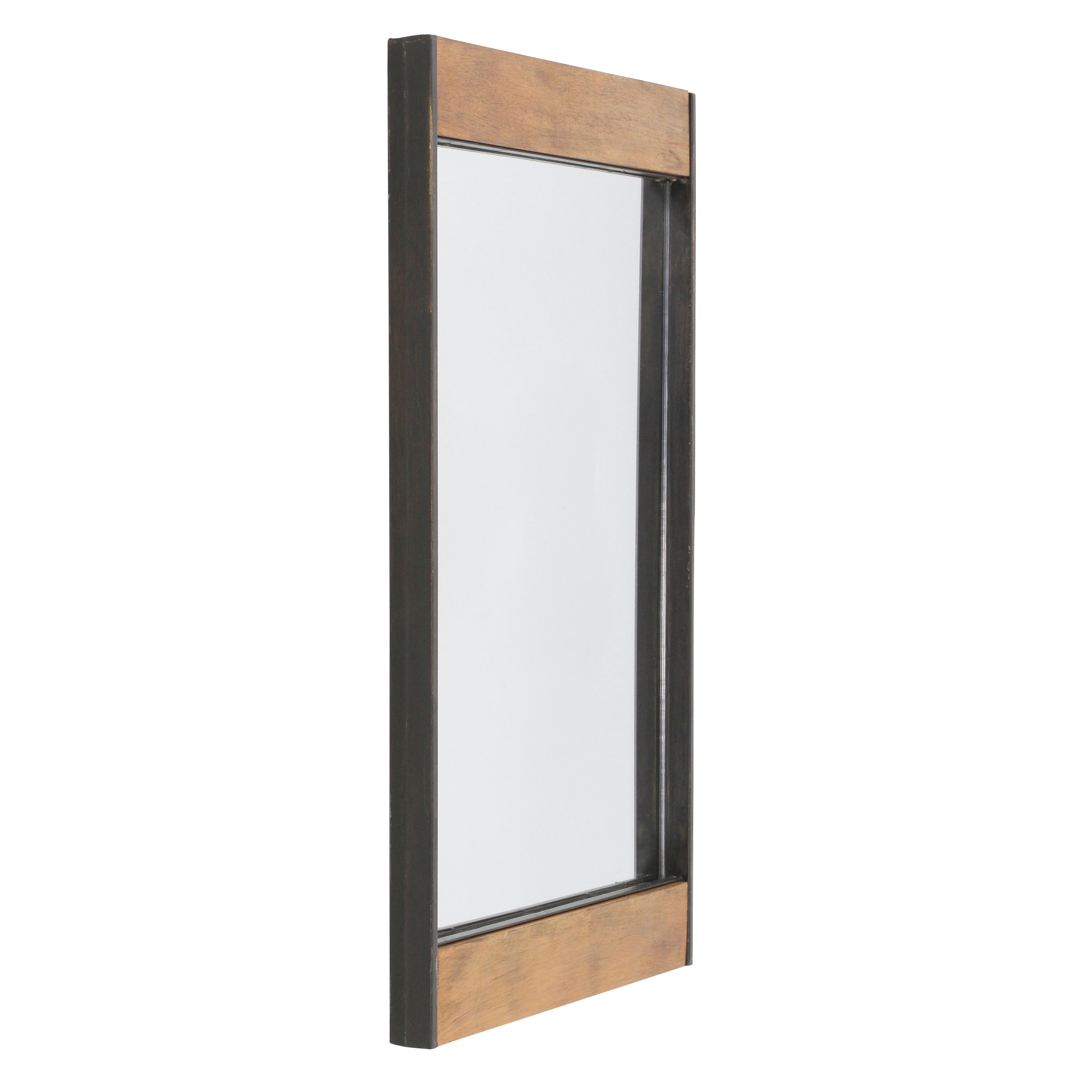 Add a touch of modern and industrial vibes to your living space with this minimalist Cliveden Wood & Metal Wall Mirror. The combination of wood and metal materials exudes quality and craftsmanship, making it a perfect addition to any bathroom, living room or entryway. This solid mirror weighs 18 lbs and can be hung both vertically or horizontally, making it versatile for any space. Features: Modern and industrial design Combination of wood and metal materials Quality and craftsmanship Weighs 18 lbs Can be hung vertically or horizontally