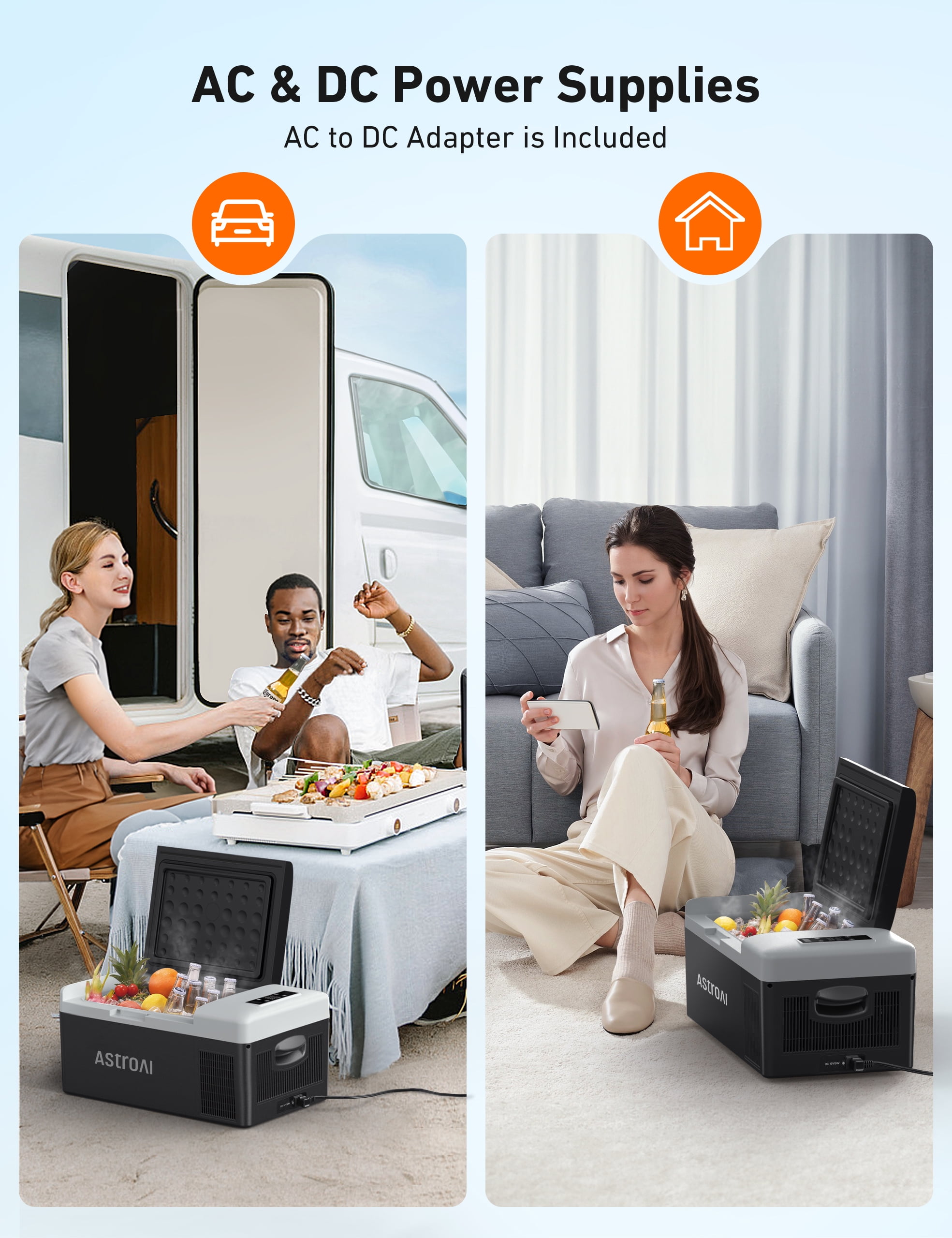 AstroAI 12 Volt Car Refrigerator, 15L/16 Quart Portable Refrigerator -4℉~68℉, Portable Freezer Mini Fridge 12/24V DC & 110V AC for Camping, Travel, Truck, Home, Car, RV, Van, Boat, Black