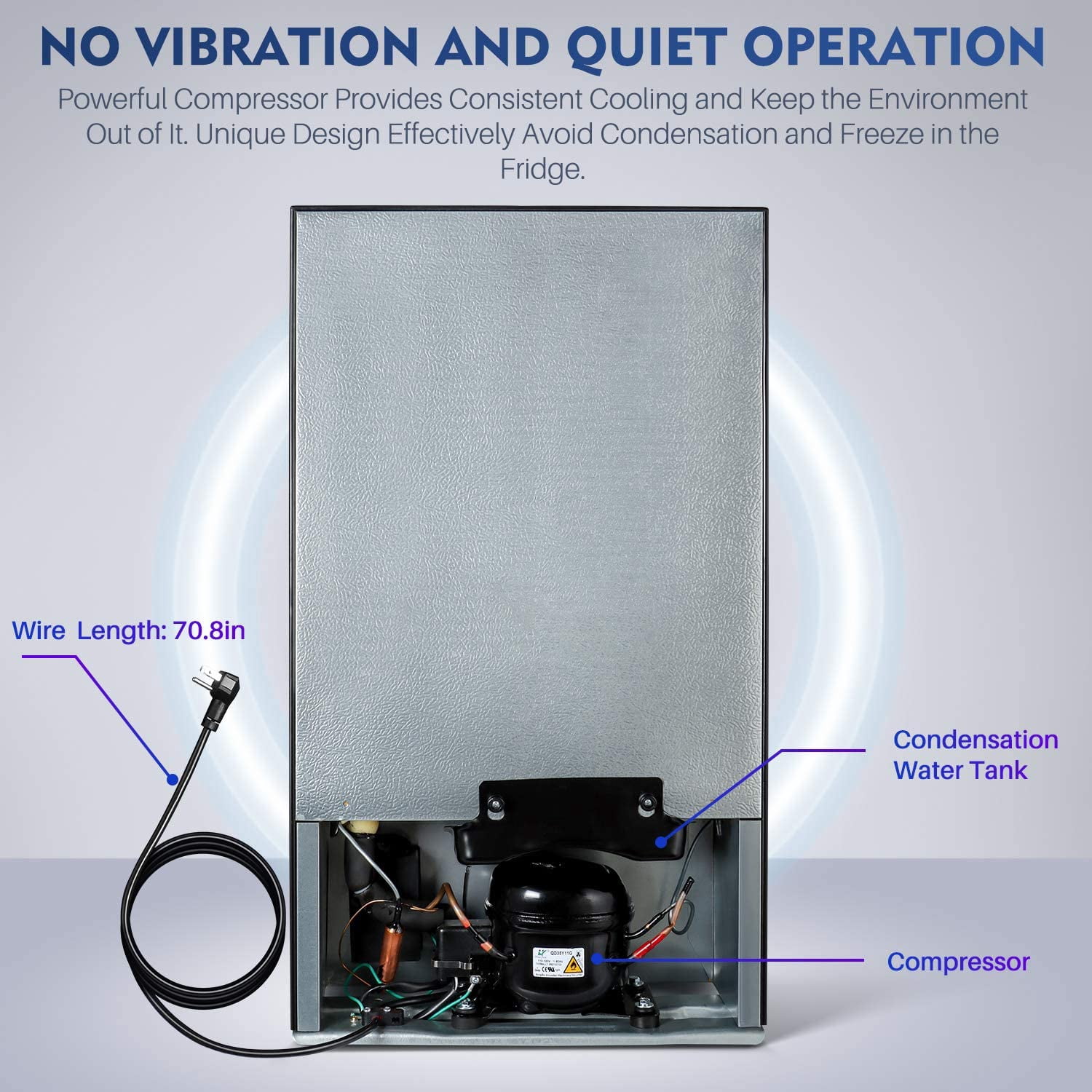 AstroAI Beverage Refrigerator and Cooler with Temperature Control 120 Can Mini Fridge with Glass Door for Beer Soda or Wine – Small Drink Dispenser Machine for Office/Bar with Reversible Door and Removable Metal Shelves – Black Stainless Steel This freestanding electric beverage refrigerator is ideal for home, office, dorm or bar to keep drinks cool and always within reach. The stylish and modern design makes it perfect for different decor. The compact 3.2 cubic feet fridge can hold up to 120 standard cans of drinks, different sized water bottles or several bottles of wine! To have a better cooling and heat dissipation effect, please ensure that there is 3-inch ventilation space around it.