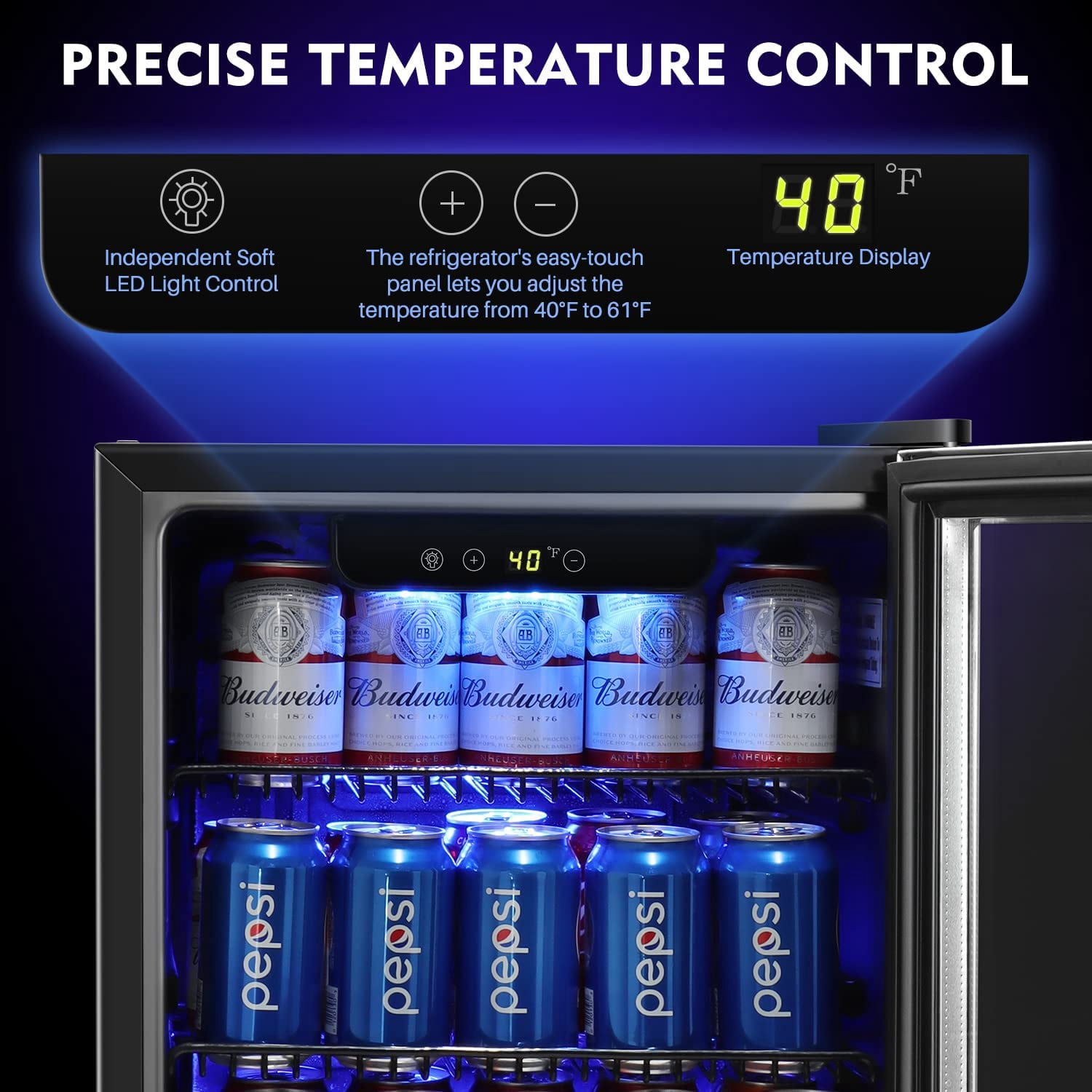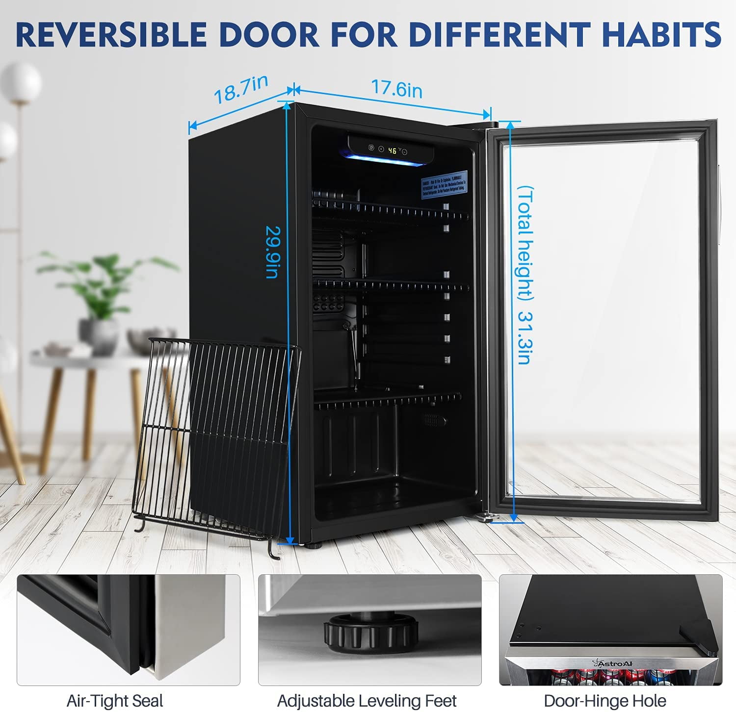 AstroAI Beverage Refrigerator 90 Liter/120 Can, Mini Fridge with Glass Door for Beer Soda or Wine, Drink Fridge for Office, Bar, Home