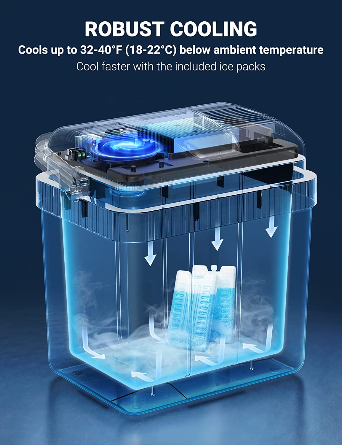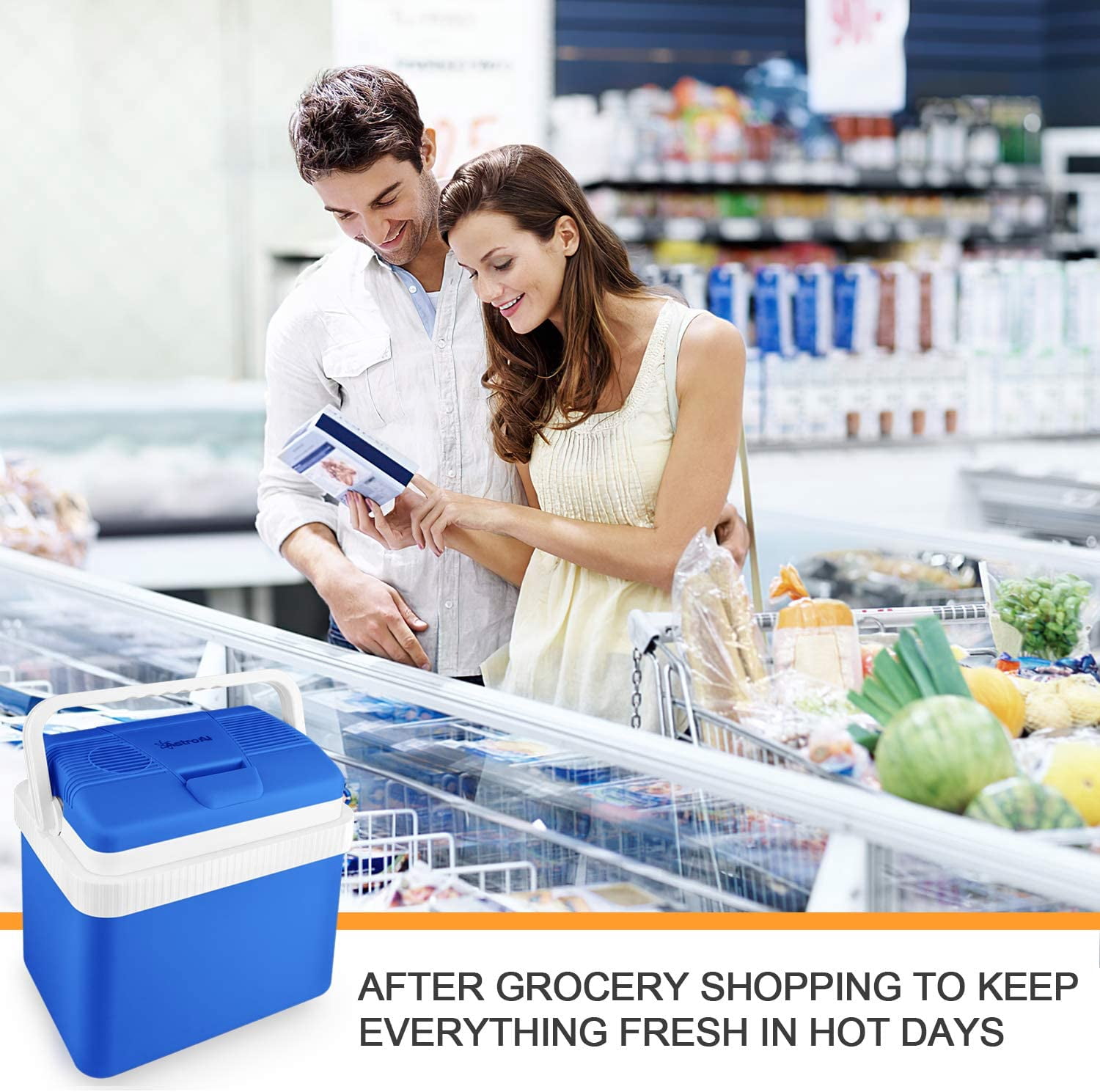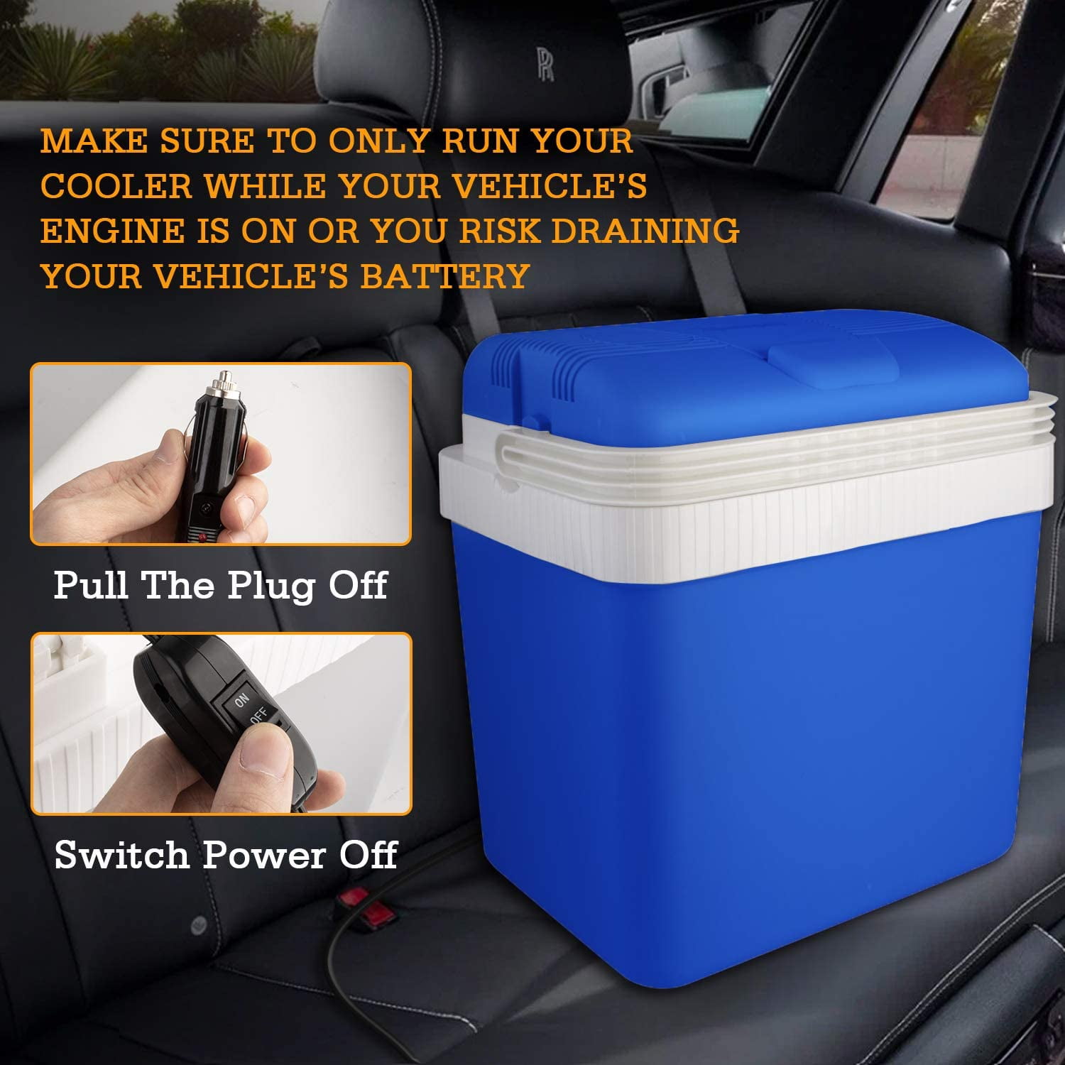 AstroAI Electric Cooler 26 Quarts/ 24 Liter, Thermoelectric Car Cooler for Beverage, Beer, Wine, Seafood, Fruits, Home and Travel with 2 Ice Packs, (Blue)
