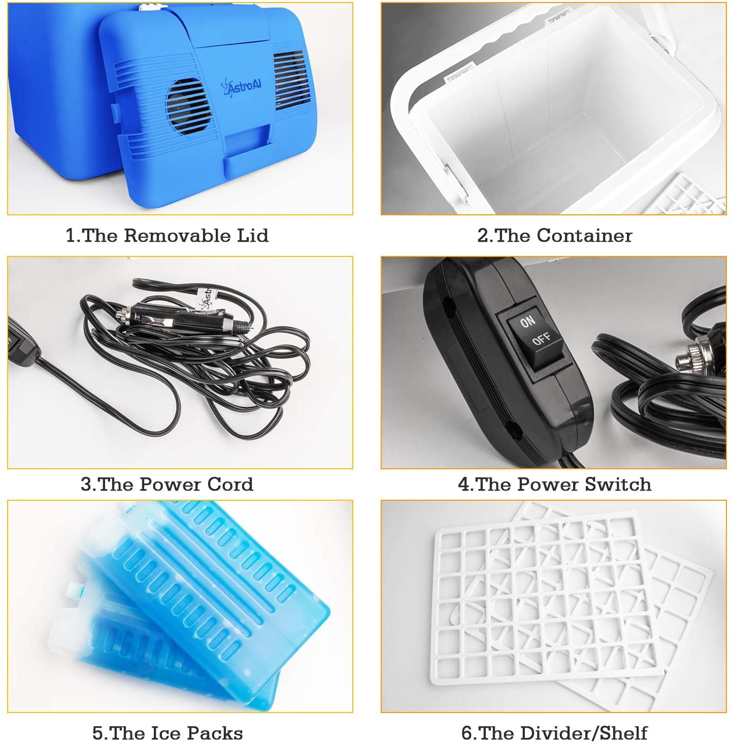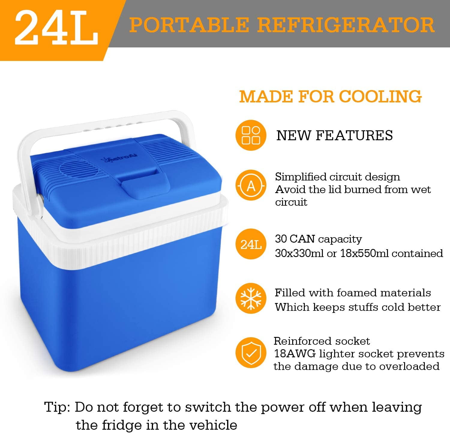 AstroAI Electric Freezer Cooler Fridge 26 Quarts/ 24 Liter, 12V DC Portable ,Gray About this item ONLY FOR COOL : Cool up to 32°F (18°C) below ambient temperature, one-day ice retention without electricity, simplified circuit design avoids the lid burned from condensation 24 LITERS OF CAPACITY: Store ! (30) 12 oz cans ! Store beers and wines with ease; Inner dimensions are 12.8”(L) x 8.8”(W) x 13.1”(H); The removable divider makes small items like beverages, beers, wines, food, or fruits easy to separate, best gift for household DC ADAPTER: 12V cigarette lighters in vehicles; NOTE: stay divider 0.4″ away from the bottom to avoid deformation ECO-FRIENDLY ENGINEERING: Semiconductor refrigeration chip is freon-free and environmentally friendly; The flip-up handle is locked towards the back and is open to the front, keep the lid tightly sealed, no worries of falling over when you drive in the bumpy road CE, FCC, RoHS certified; 3 Year Warranty provided by AstroAI – if you have any dissatisfaction with your product quality, please reach out to us immediately