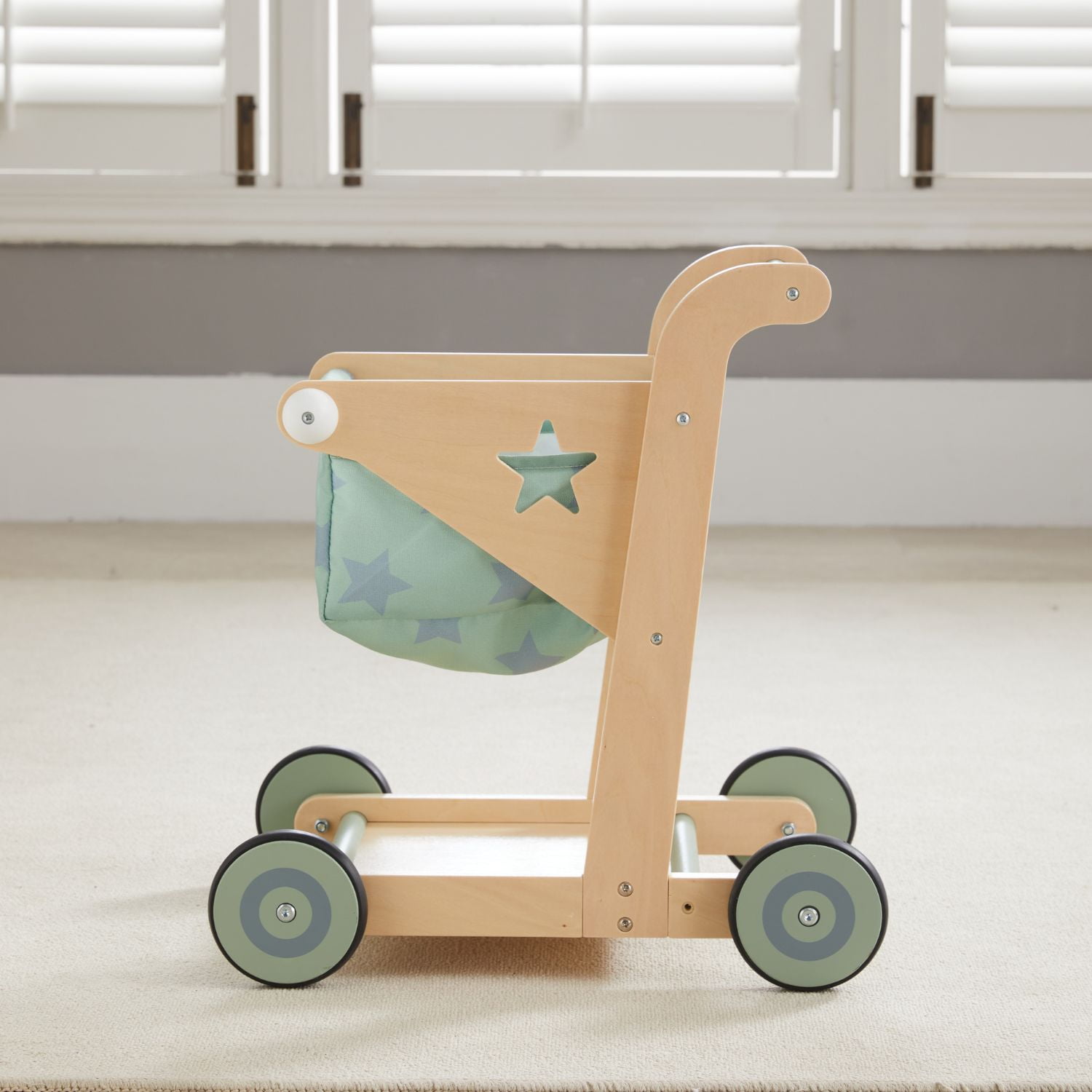Looking for an engaging playtime addition that sparks imagination and fosters early development? Meet our Wooden Shopping Cart for Toddlers! This sturdy baby push walker is designed to inspire endless adventures while nurturing crucial motor skills and imaginative play. Crafted from durable wood, it’s a safe and eco-friendly option for curious toddlers aged 1-3. Encourage exploration as your little one maneuvers this cart, enhancing balance and coordination with every push. Crafted for interactive play, this wooden push walker doubles as a baby doll stroller for 1 year old to 3 years old, fostering nurturing instincts and creative role-play scenarios. The wooden wheels on this wooden doll stroller are covered with a thick layer of rubber for a smooth ride, letting your child pretend to shop like in real life. It helps them learn and use their imagination while playing. The spacious basket holds lots of toys, helping kids learn to tidy up and giving plenty of room for their favorite toys. SPECIFICATIONS: Material: Wood Age Range: 1-3 years old Product Dimensions: 18 x 18 x 19 inches Target gender: Unisex Material Type: Wood Style: Baby Walker, Learning Walker, Push-pull Walker Batteries required: No Item Weight: 4.69 pounds