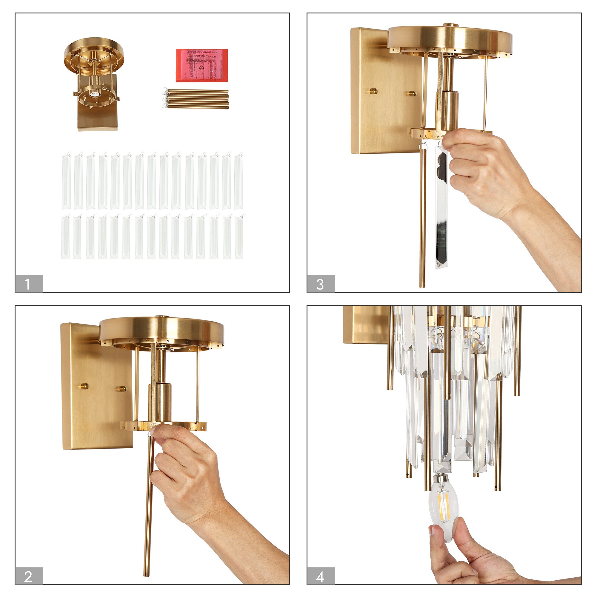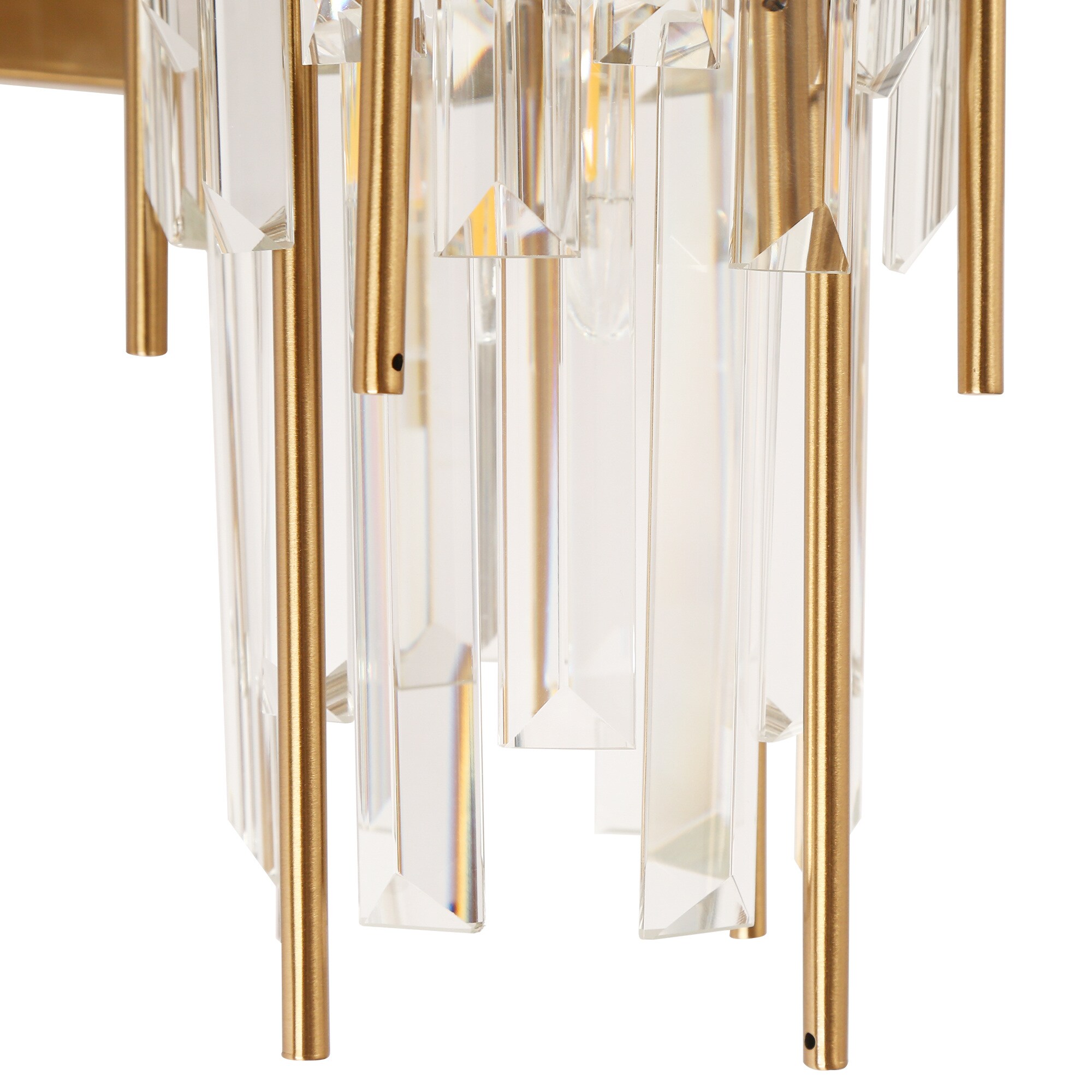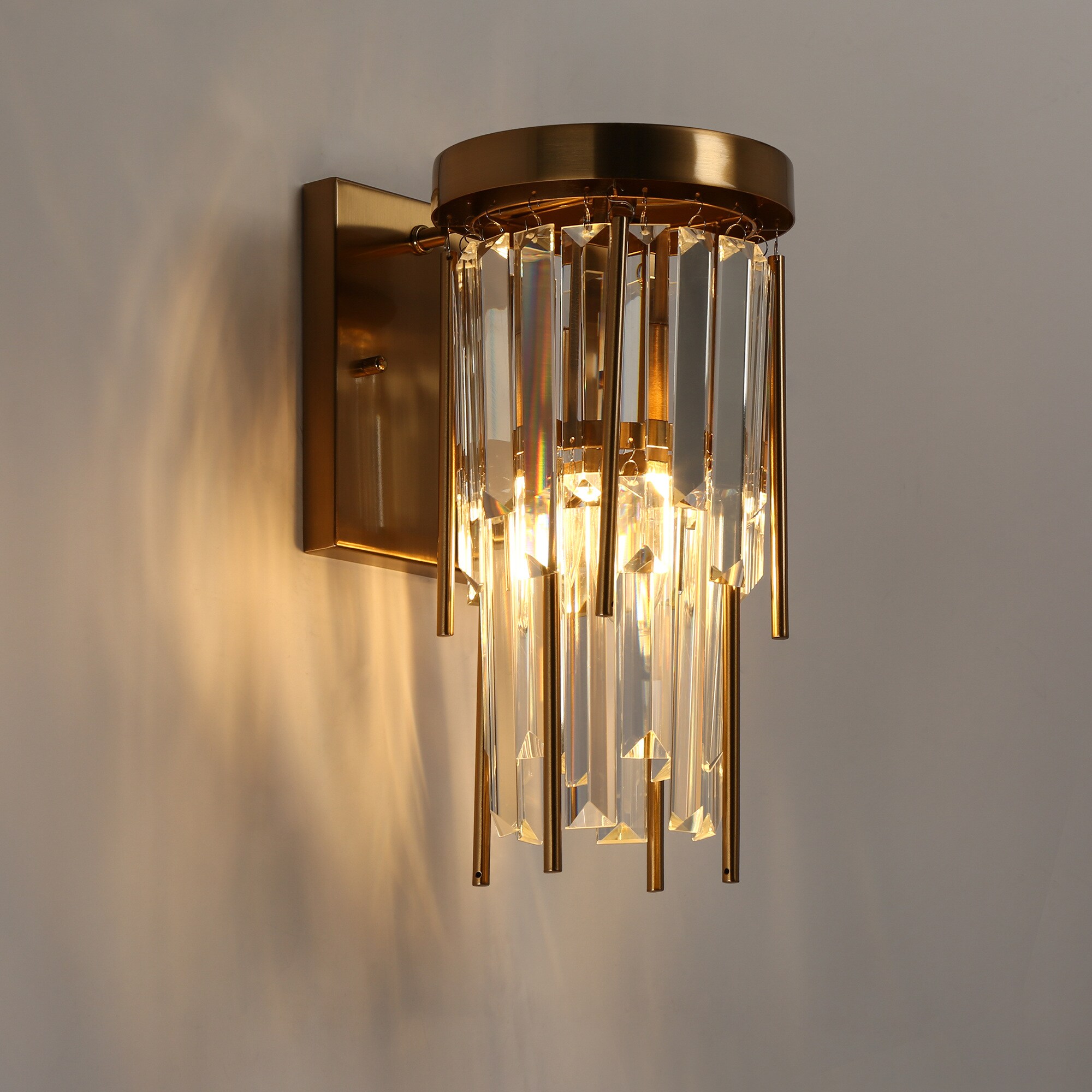 Step into a world of enchantment with our 1-Light Plating Brass with Crystal Modern/Contemporary LED Wall Sconce. A captivating cascade of crystal and metal rods creates a dazzling display of light, reminiscent of rainfall frozen in time. With hundreds of slender tubes suspended asymmetrically from a sleek canopy, this wall sconce casts a refractive glow that adds a touch of drama and elegance to any space. Illuminate your home with sophistication and style, transforming your walls into a breathtaking work of art.