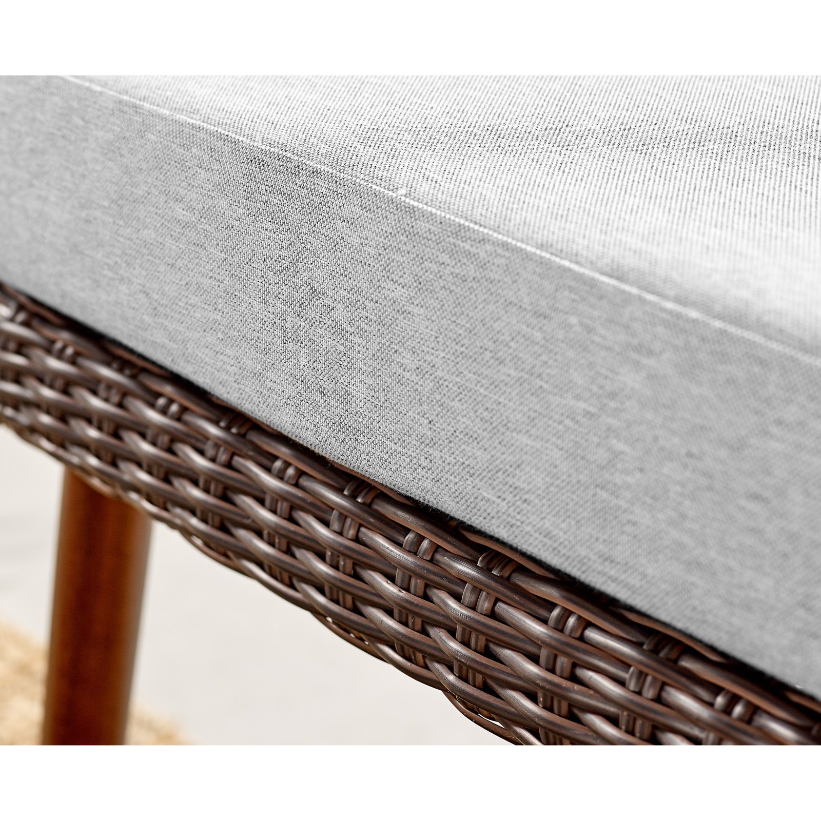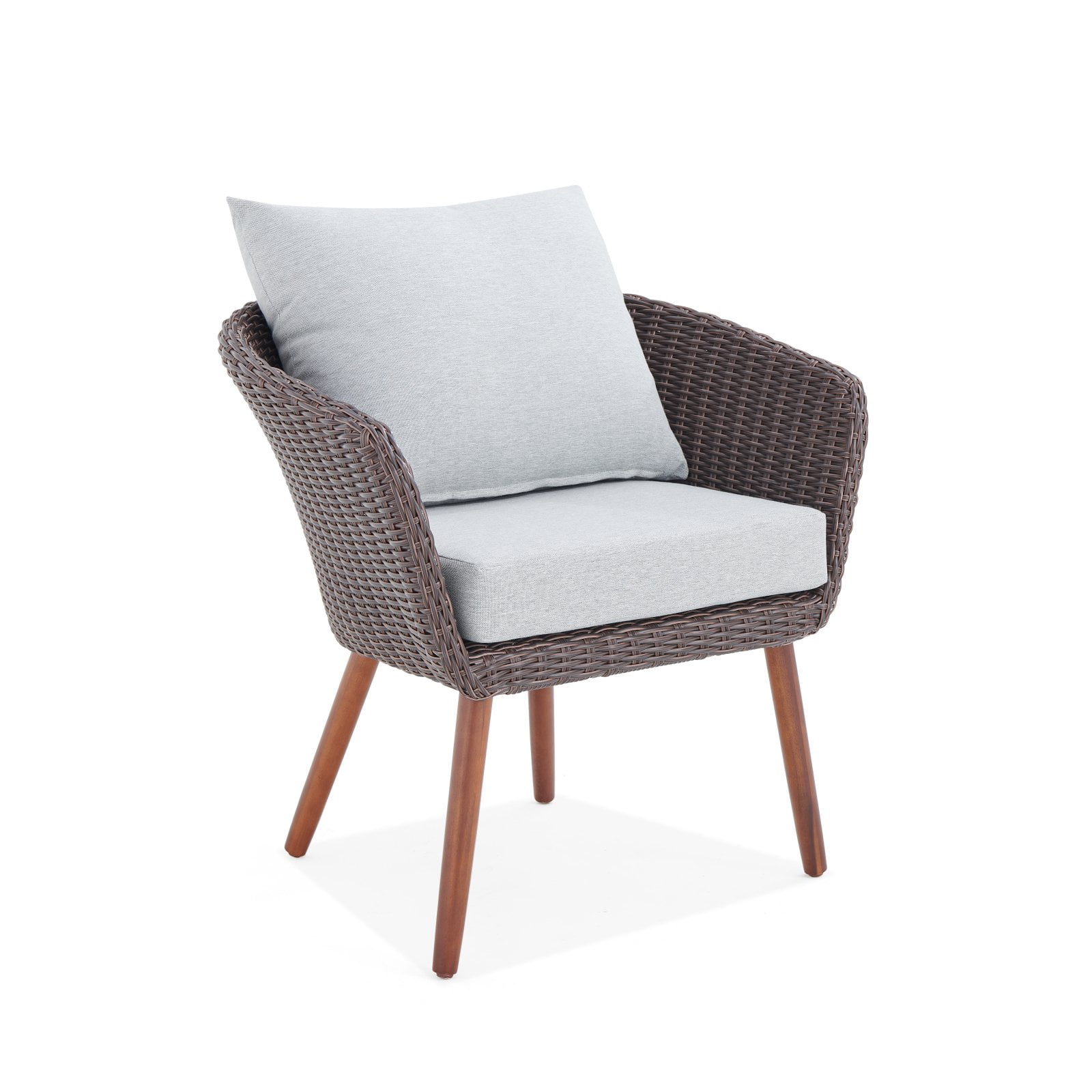 ALL WEATHER DURABILITY: Two durable all-weather wicker chairs designed for year-round outdoor use. These patio chairs withstand extreme temperatures, moisture, and sunlight for reliable comfort MIXED MATERIALS: This modern outdoor chair set features a combination of dark brown wicker, light gray Removable cushions, and dark wood legs that create a unique and stylish aesthetic COMPACT DESIGN: The chairs measure 30″ W x 27″ D x 27″ H, making them the perfect size for any patio or outdoor area WEATHER-RESISTANT COMFORT: These Athens All-Weather Wicker Chairs resist damage from extreme temperatures and UV rays, ensuring they remain pristine in various conditions IDEAL FOR OUTDOOR ENJOYMENT: Spend time outdoors enjoying your comfort and style with this weather-resistant Alaterre Furniture Athens Set. Perfect for your porch or patio, be sure not to forget to store chairs in a covered location when not in use