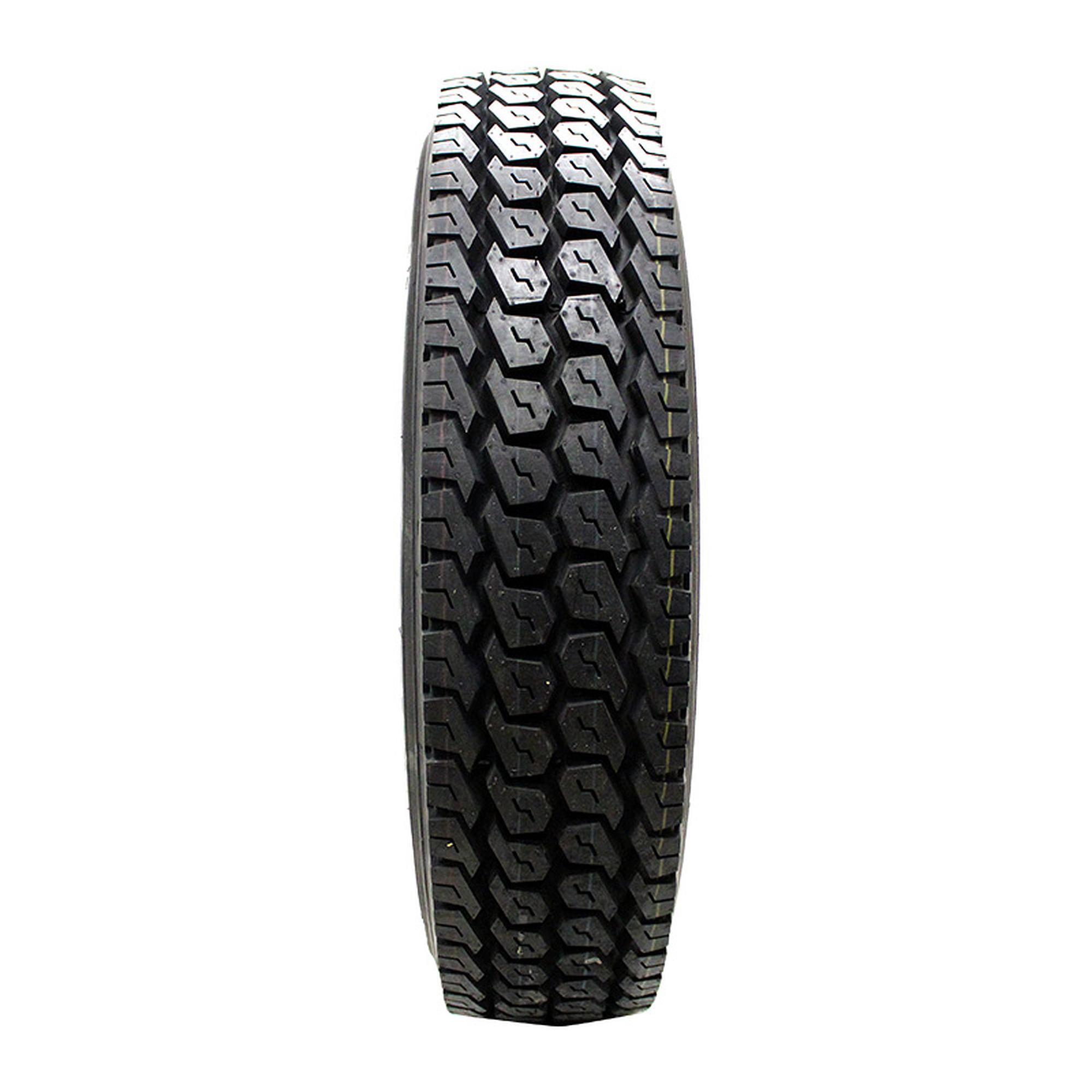 14-ply rating M speed rating 25/32″ tread depth Nylon reinforcement and steel belt package are designed for optimum weight distribution and even wear Tread elements are designed to minimize tread squirm Rubber compound is formulated for long wear while remaining flexible year-round Aggressive tread pattern and large tread blocks enhance wet and dry traction Size: 11R22.5 Load Range: H Product May Vary From Picture Wheel/Rim Not Included
