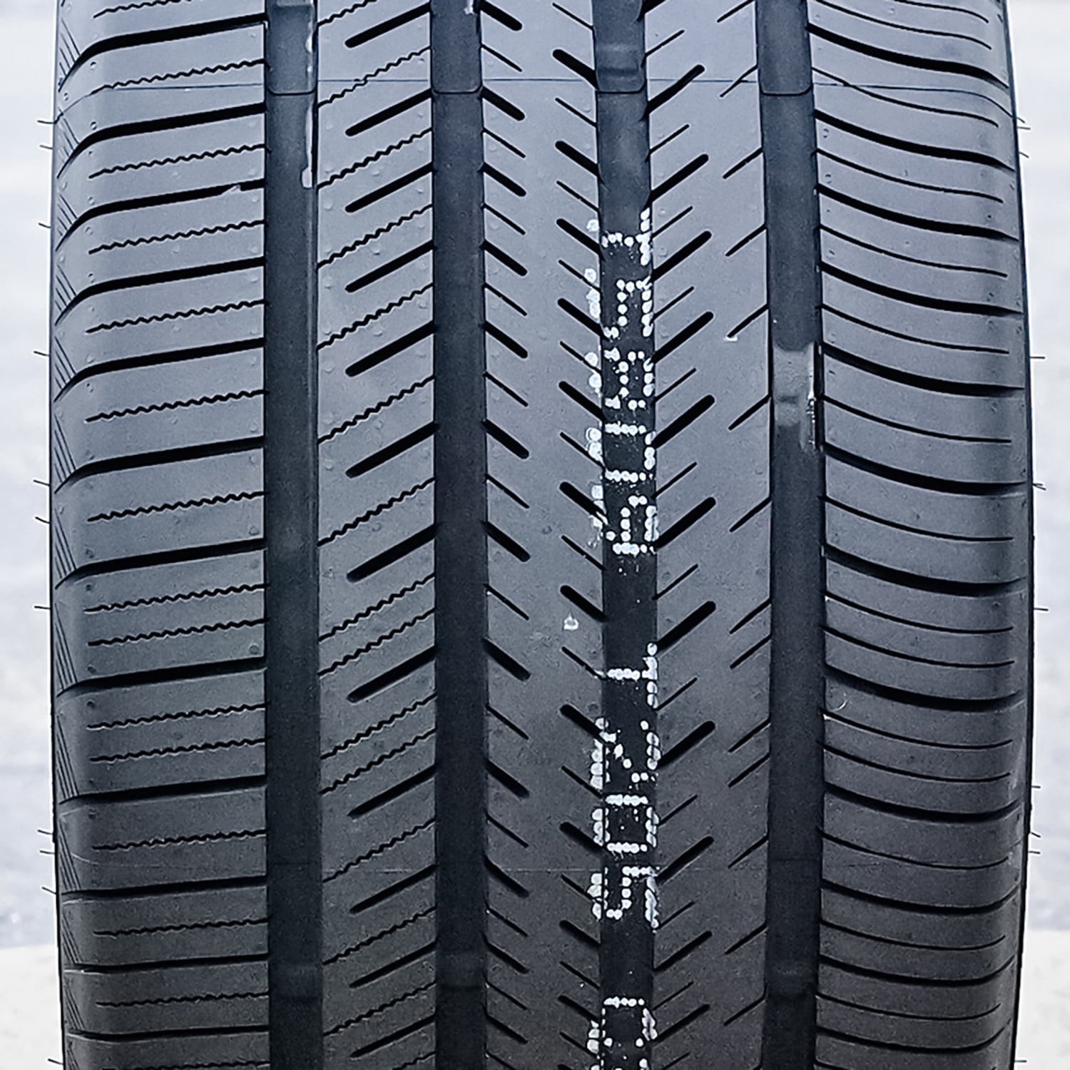 Atlas Tire Force UHP FEATURES AND BENEFITS Excellent all weather traction Longer lasting tread life Low road noise Superb high-speed stability OVERVIEW The Atlas Tire Force UHP is a performance and high performance, depending on the speed rating of the specific tire size, all season tire constructed for passenger and crossover vehicles and SUVs. This tire model has excellent all weather traction, and will perform well in winter weather. The asymmetric tread design helps grip the road surface firmly during on-road driving, which enhances the driving safety. The wide grooves in the tread pattern evacuate water and mud from under the tread and effectively prevent hydroplaning. The intricate siping design enhances its grip in light snow, and improves the cornering and braking ability. Even at high speed, this model does not lose its directional stability. It maintains its shape at any speed and does not deform under pressure. The asymmetric siping design of this performance model gives additional road grip and traction for maneuvering at high speeds. The center rib in the tread design offers good contact between the tire and the road increasing the steering precision, making it easier to handle. The Force UHP’s maximized road contact patch helps reduce the road noise heard in the cabin of the vehicle, enabling a comfortable driving experience. This also makes the tire resistant to irregular wear by equally distributing the driving force along the tread. This allows a slower wear ratio, which lengthens the tire’s tread life. Manufacturers recommend changing tires every 10 years. As long as tires are properly stored before they are sold, the year of their manufacture will not shorten their service life.