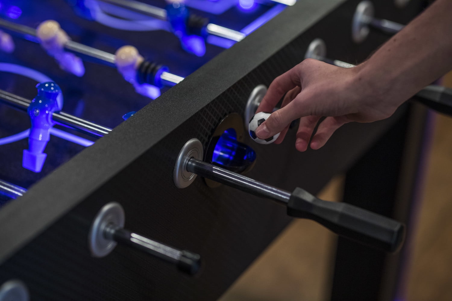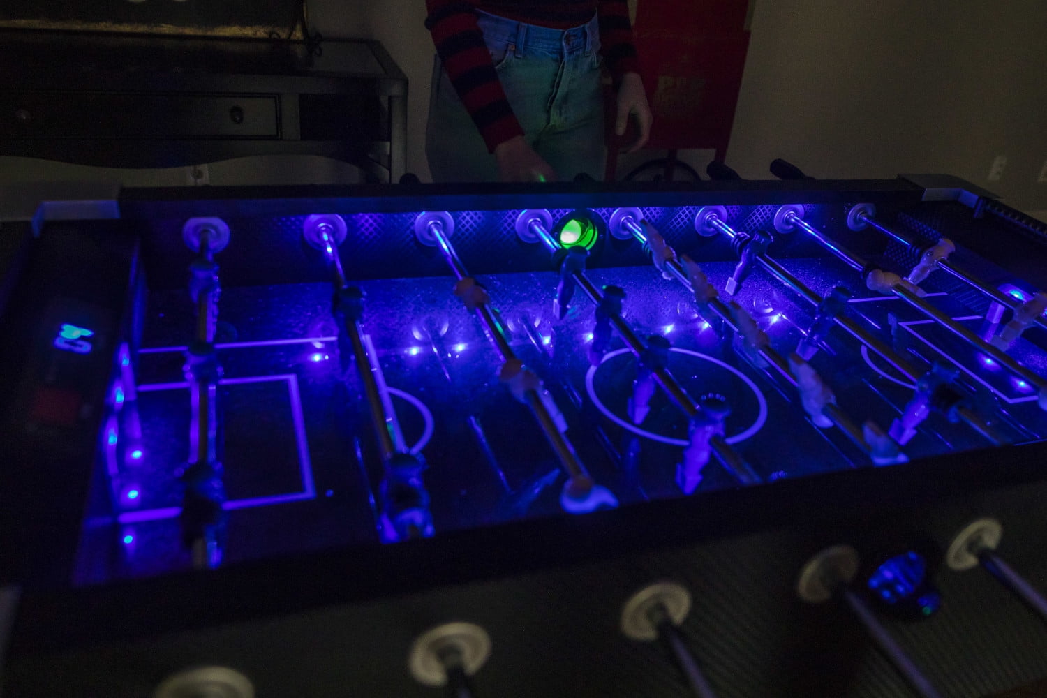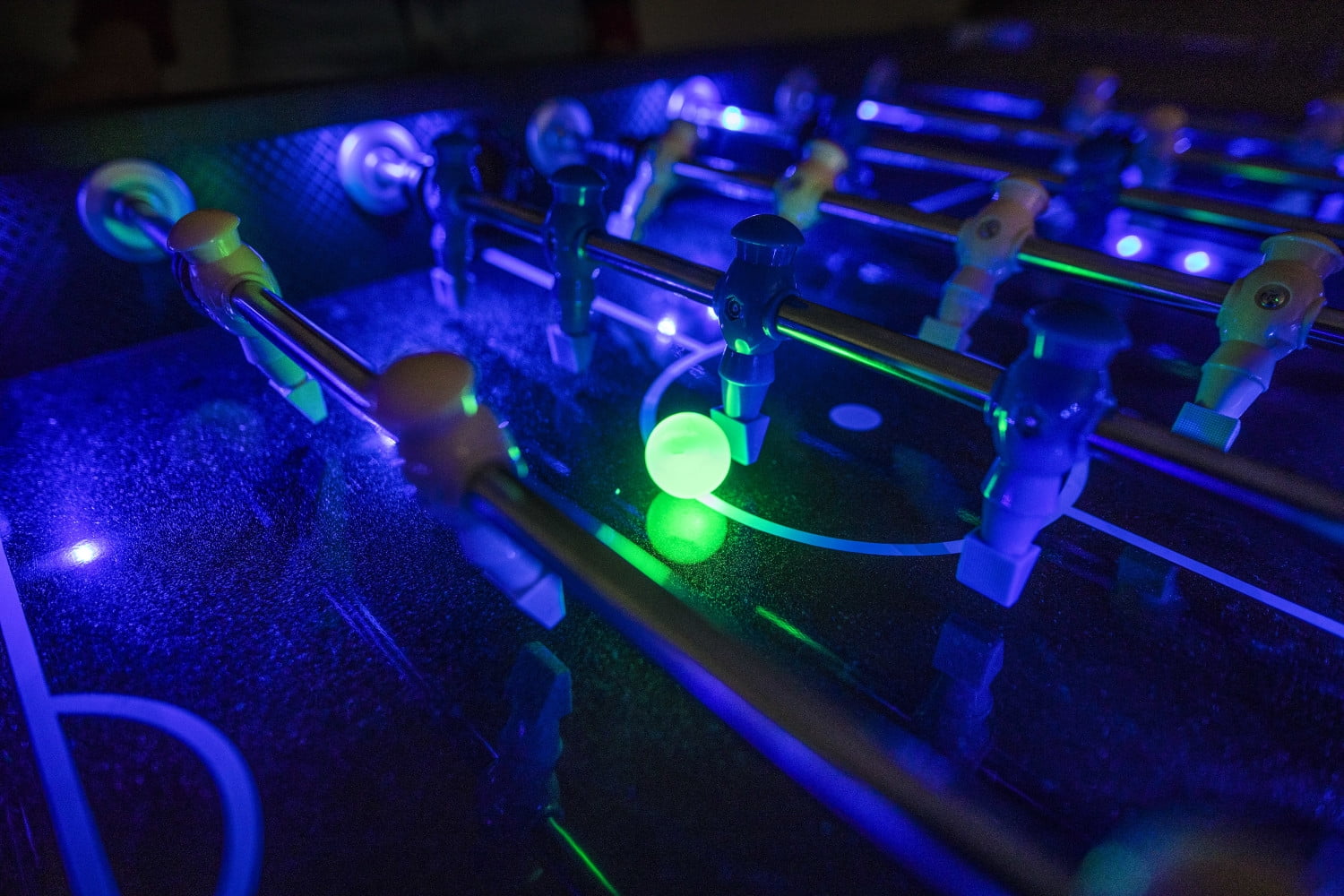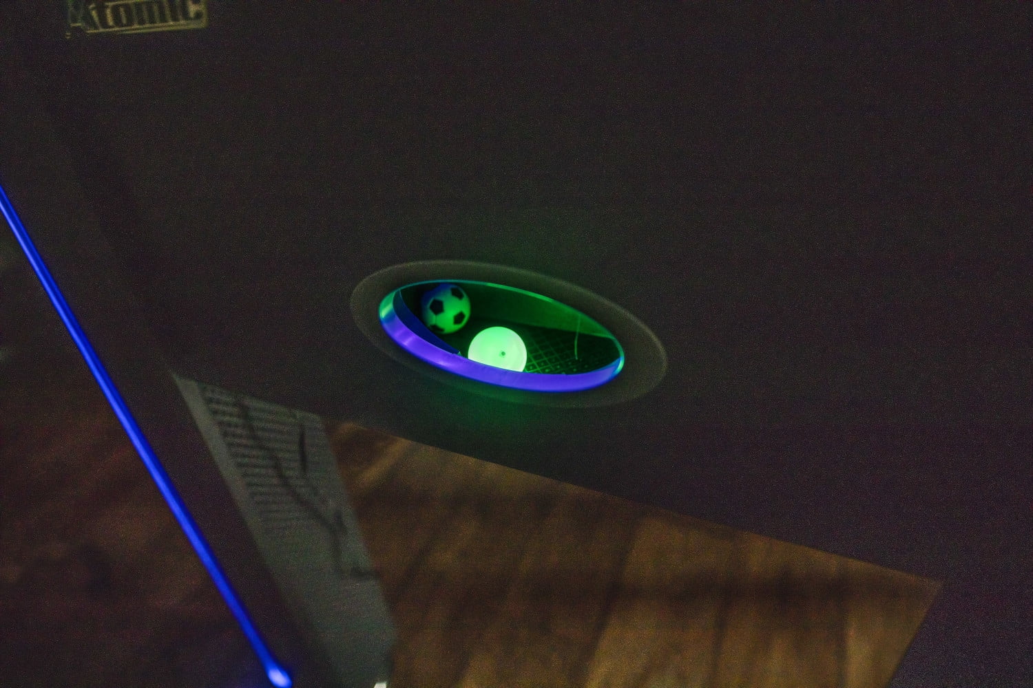 Atomic Azure LED Light Up Foosball Table with Interactive Inrail LED Lighting and Cascading Effects Paired with In Game Music