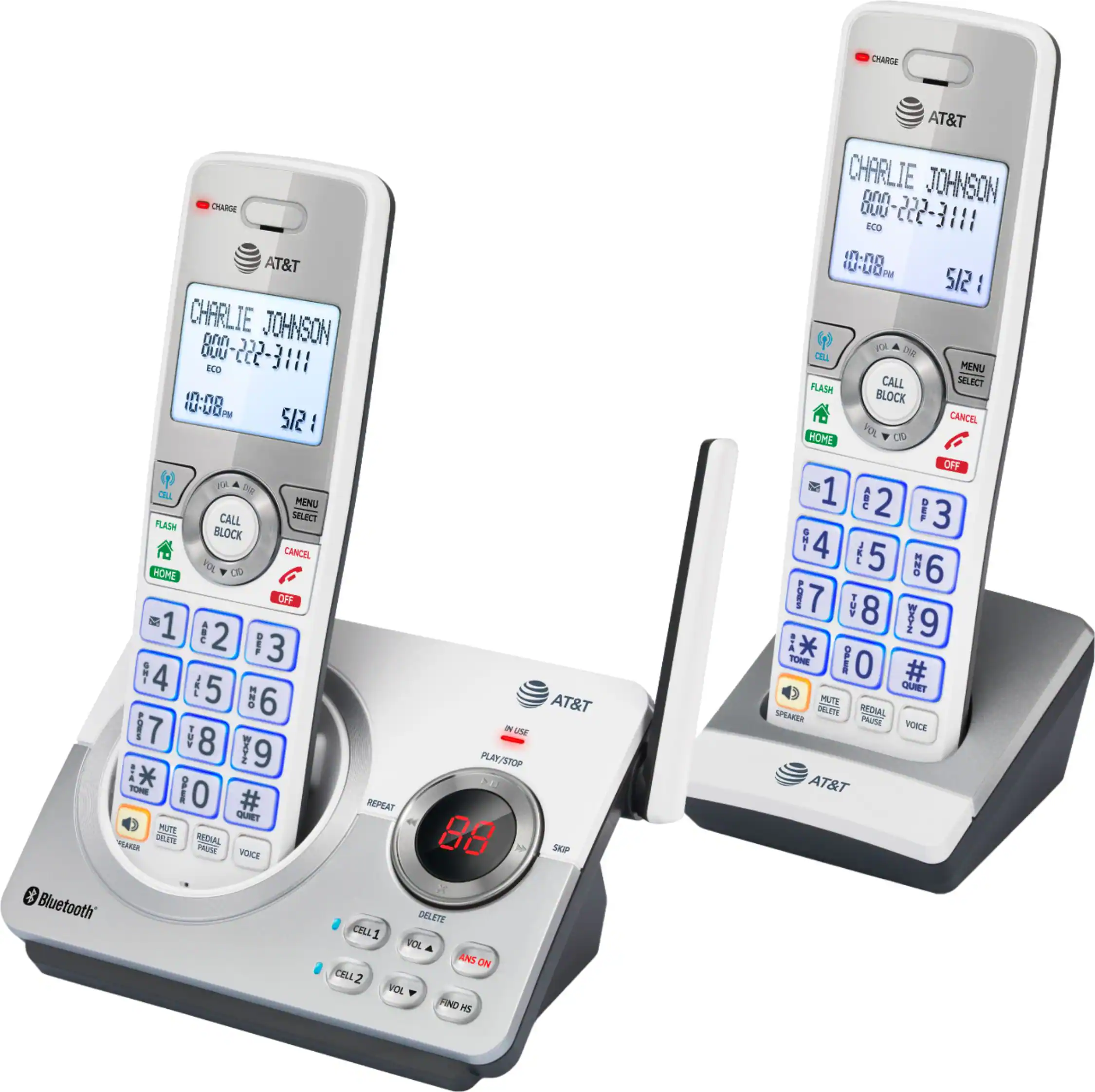 With the AT&T DL72210 DECT 6.0 2-Handset Expandable Cordless Phone featuring, Unsurpassed, Range, Bluetooth Connect to Cell and Smart Call Blocker, you won’t have to worry about unwanted calls waking you up in the middle of the night or tying up the line. Robocalls are automatically blocked from ever ringing through—even the first time. You can also permanently blacklist any number you want with one touch. Bluetooth Connect to Cell technology on the AT&T DL72210 DECT 6.0 Expandable Cordless Phone lets you receive cell and/or landline calls from one home phone system. With a touch of a button, enjoy the high-tech benefits your smart phone offers. Even if your smart phone is in a different room, you can still access Siri or Google Now from the cordless handsets. Place a call, write or read a text and perform all the other actions these services offer.