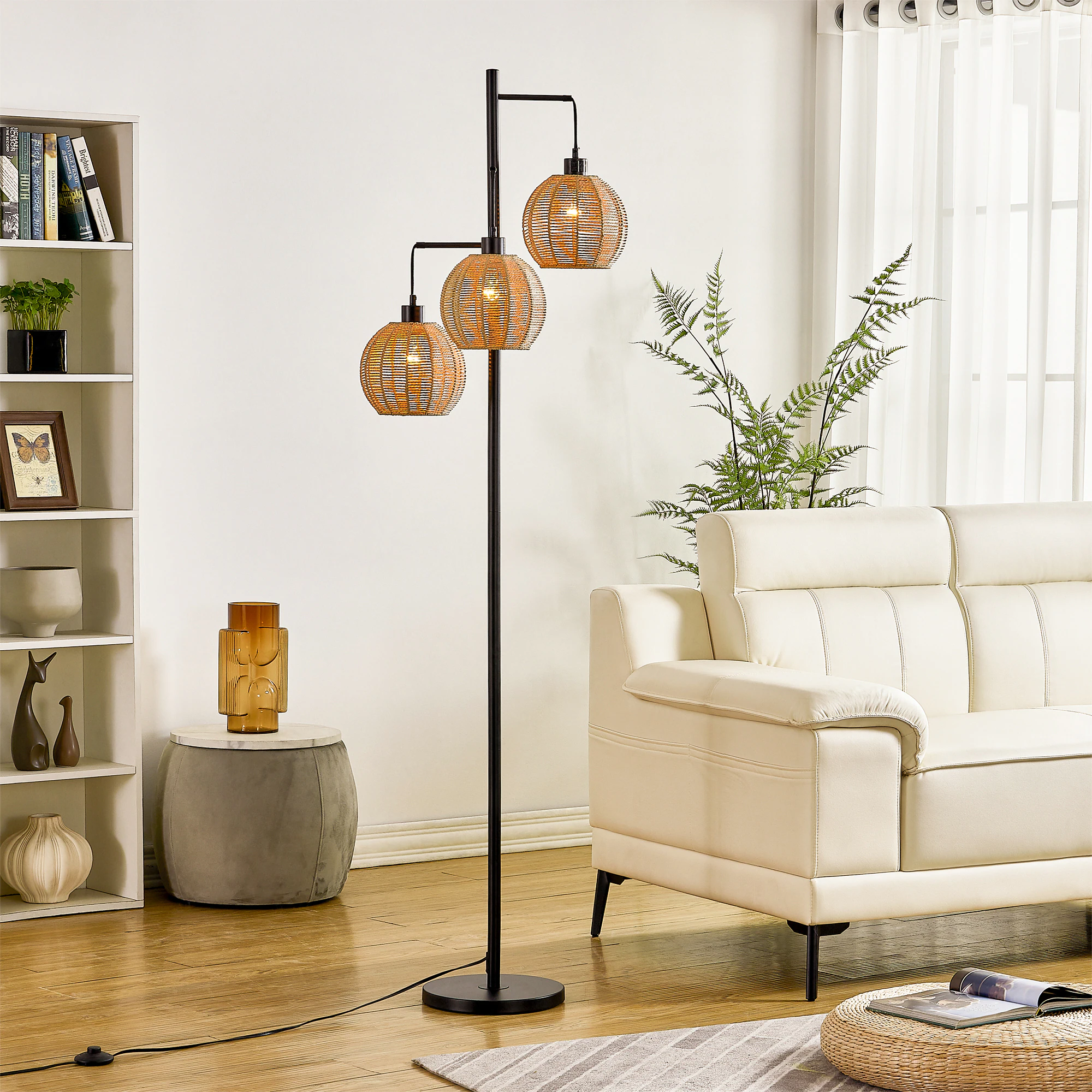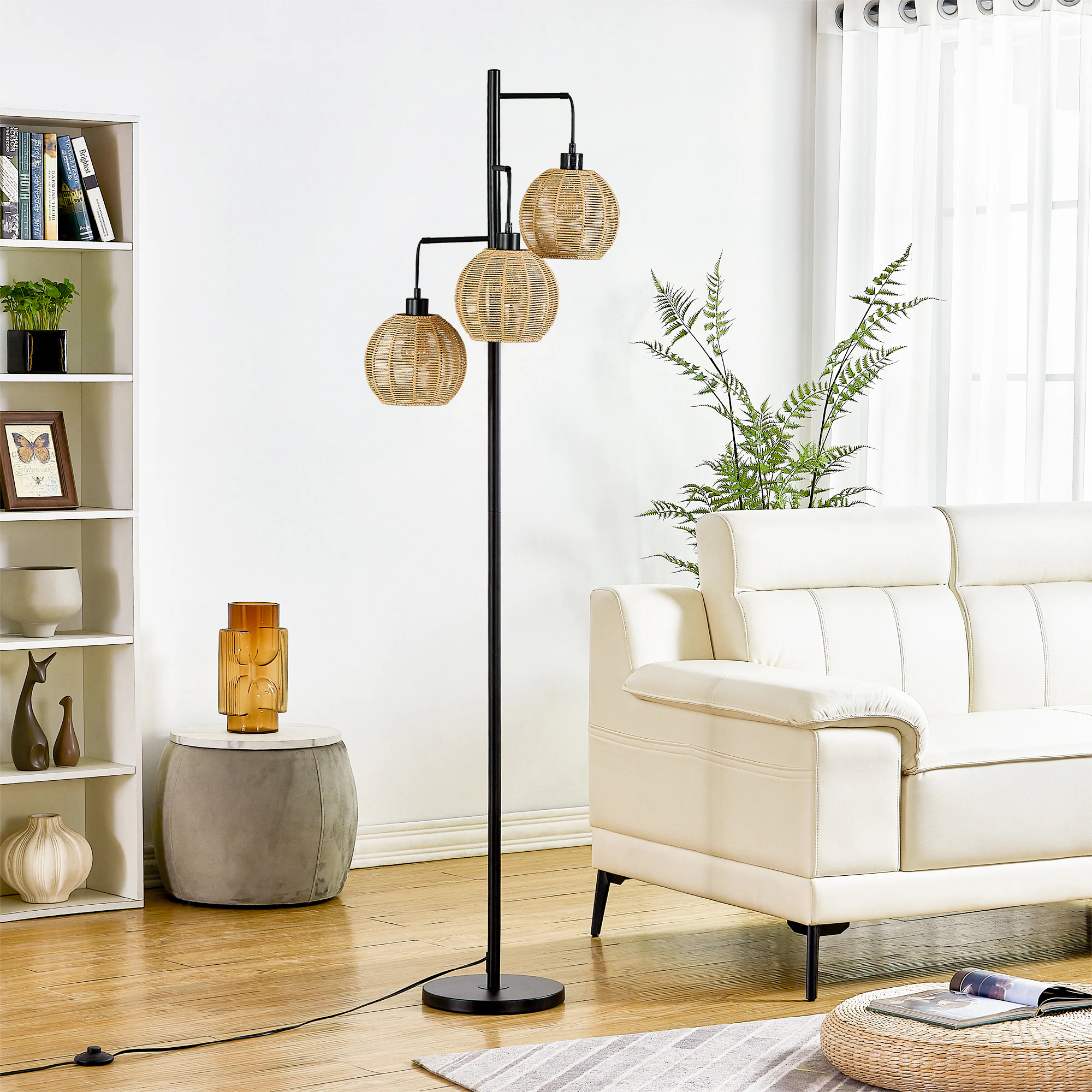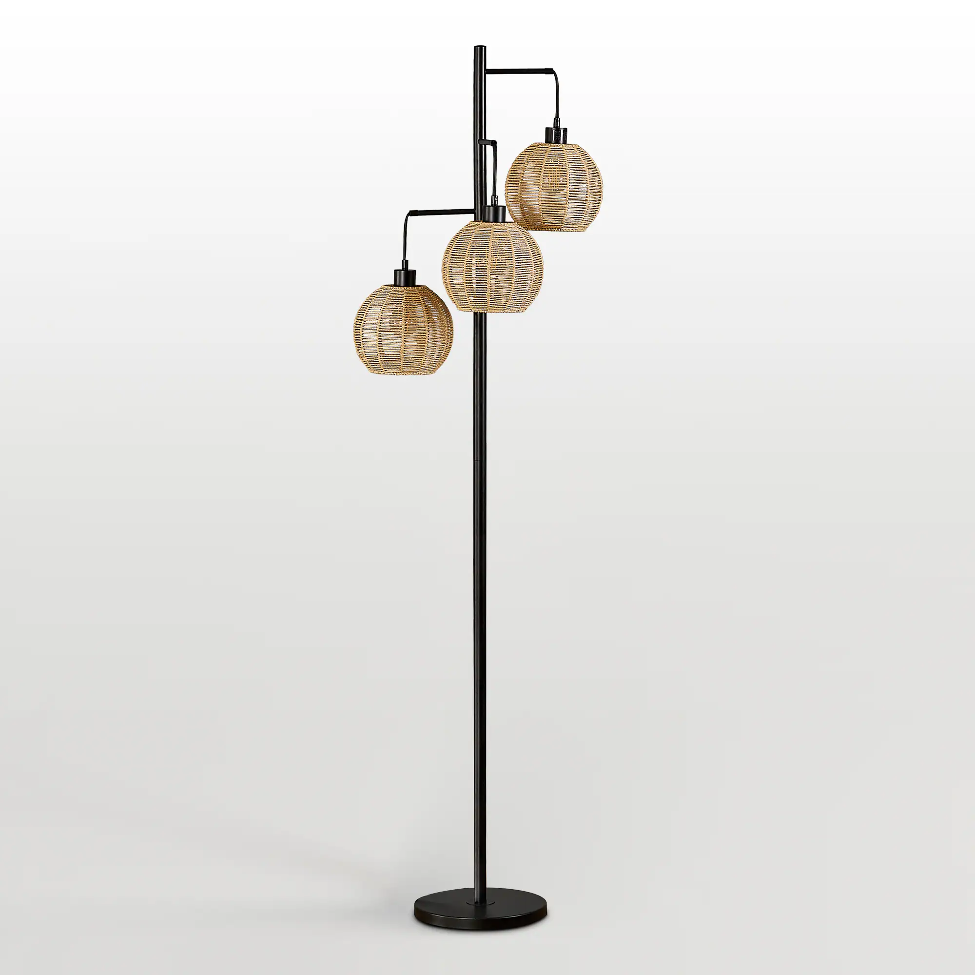 Enhance your living space with this stylish floor lamp, featuring a sleek black powder-coated metal body paired with a natural rope-woven lampshade. Its blend of modern and natural elements makes it a versatile piece, seamlessly fitting into any room, whether it’s your bedroom, study, or living room. The lamp’s non-KD design ensures durability and stability, while the convenient inline foot switch offers easy control. Certified with ETL, this lamp guarantees both safety and quality, making it an ideal choice for any dry indoor setting.