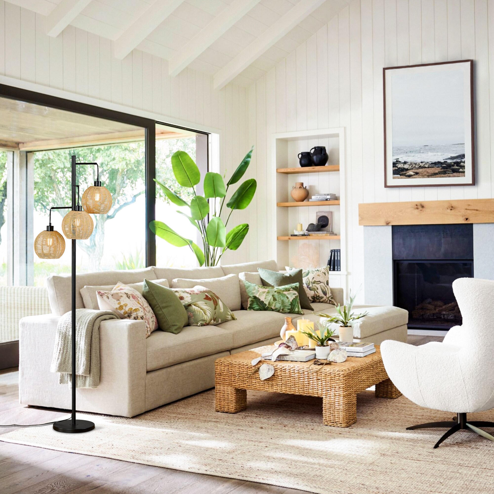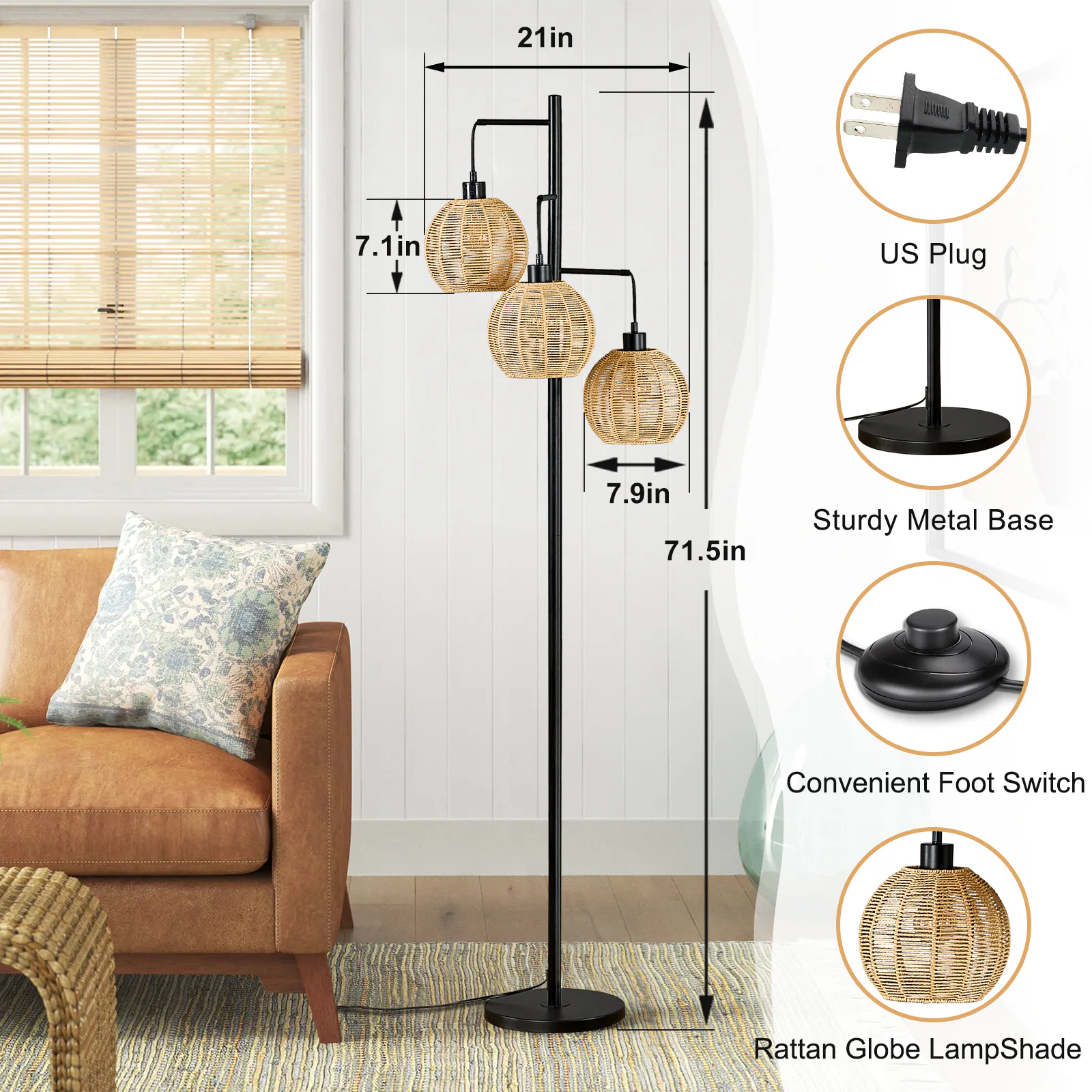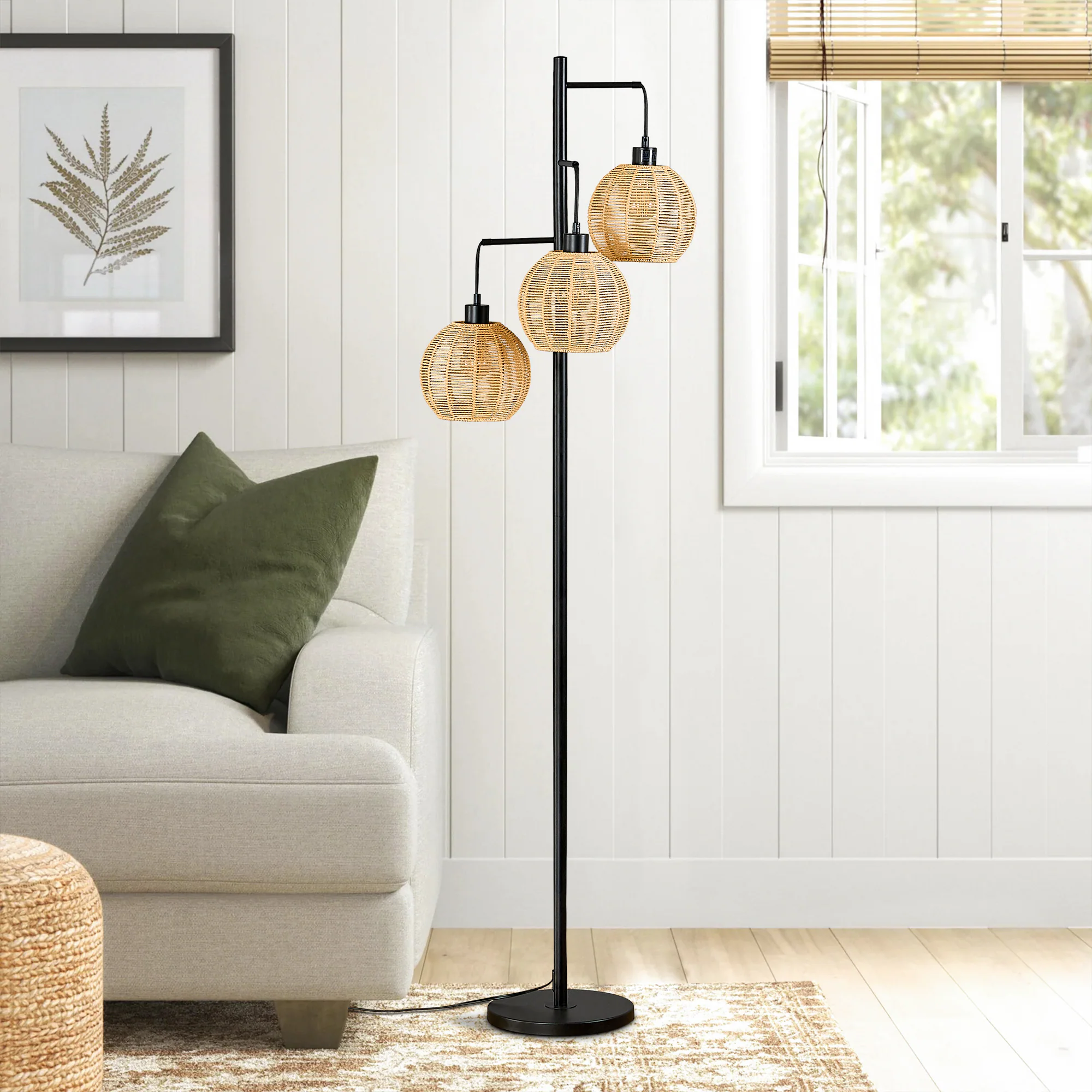 Enhance your living space with this stylish floor lamp, featuring a sleek black powder-coated metal body paired with a natural rope-woven lampshade. Its blend of modern and natural elements makes it a versatile piece, seamlessly fitting into any room, whether it’s your bedroom, study, or living room. The lamp’s non-KD design ensures durability and stability, while the convenient inline foot switch offers easy control. Certified with ETL, this lamp guarantees both safety and quality, making it an ideal choice for any dry indoor setting.