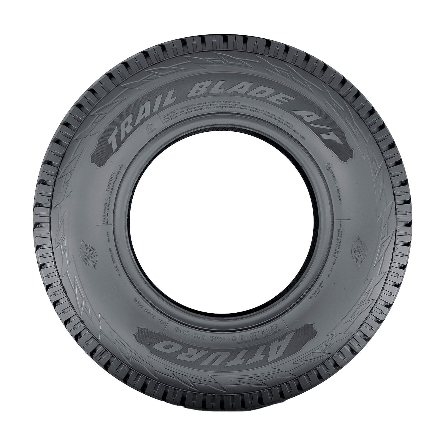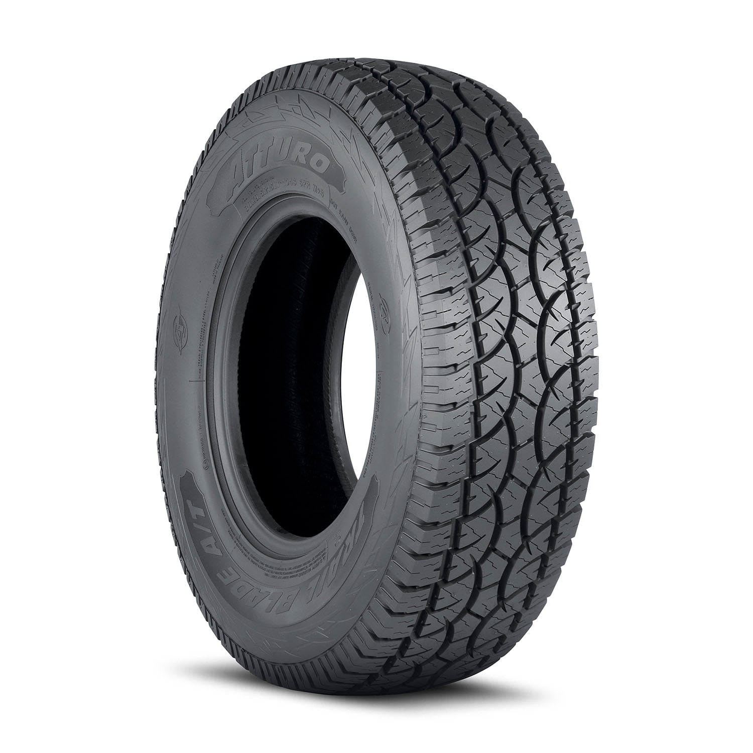 Atturo Trail Blade A/T 265/70R16 112TOVERVIEWThe Atturo Trail Blade A/T tire is designed for use on light trucks and SUVs and offers drivers better traction and performance on- and off-road. A durable rubber compound protects the tire against damage for longer tread life, and the Trail Blade A/T’s heavy-duty carcass boosts load-carrying capacity, and the Trail Blade A/T’s deep sipes improve grip on muddy, wet, and snowy surfaces while wide grooves channel water out of the footprint to reduce the risk of hydroplaning on wet roads. The Atturo Tire Trail Blade A/T tire is designed for all-season traction. It performs well on both road and off-road terrain thanks to its deep durable tread. The large shoulder blocks on this tire enhance handling and steering response while the heavy-duty carcass provides superb load-bearing ability and endurance.