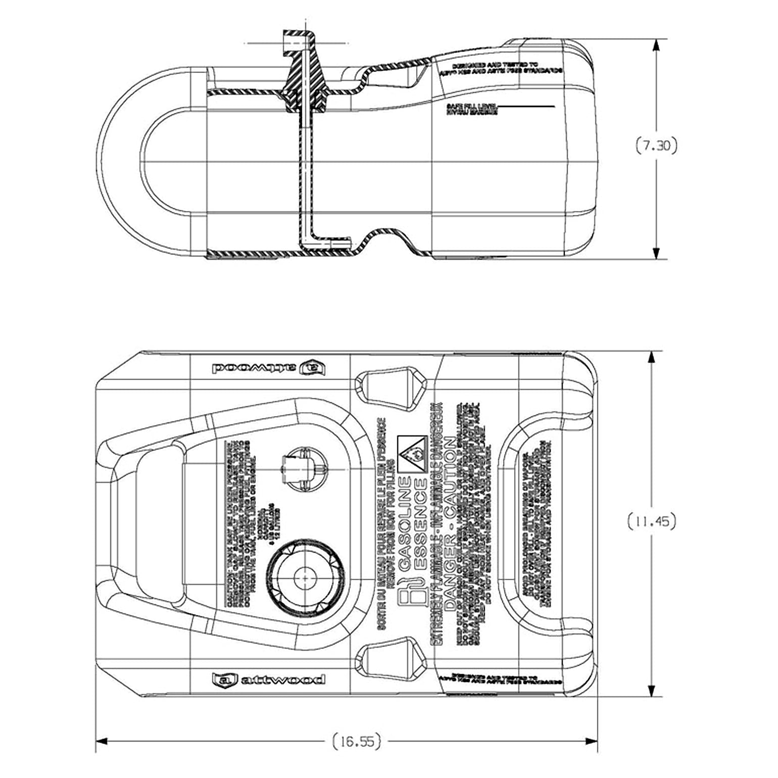 strongPortable Fuel Tank – 3 Gallon with Gauge/strongAttwood has engineered the industry&rsquos only comprehensive EPA-certified fuel tank-to-engine solution. Tough materials and innovative design stand up to harsh marine conditions. A 3-gallon tank is perfect for small outboards. Includes gauge.strongFeatures: strongulli3 Gallon fuel capacity/liliCompatible with 1/4-inch NPT fuel fittingsulliHigh-Contrast, easy to read gage/li/ul/liliAdditional oil and ullage/vapor capacity/liliEPA Cap with automatic, high-flow vacuum valve/liliUV-grade multi-layer tank material/liliAutomotive-grade, multi-layer construction withstands the pressure build-up associated with closed fuel systems/liliCap with built-in vacuum valve means no need for manual venting/liliMeets EPA and CARB (California Air Resources Board) regulations/liliComplies with all ABYC/NMMA requirements for portable marine fuel tanks/li/ulstrongDimensionsstrongulliLength: (inch) 16.6″/liliWidth: (inch) 11.45″/liliHeight: (inch) 7.3″/li/ul*No fuel line included !