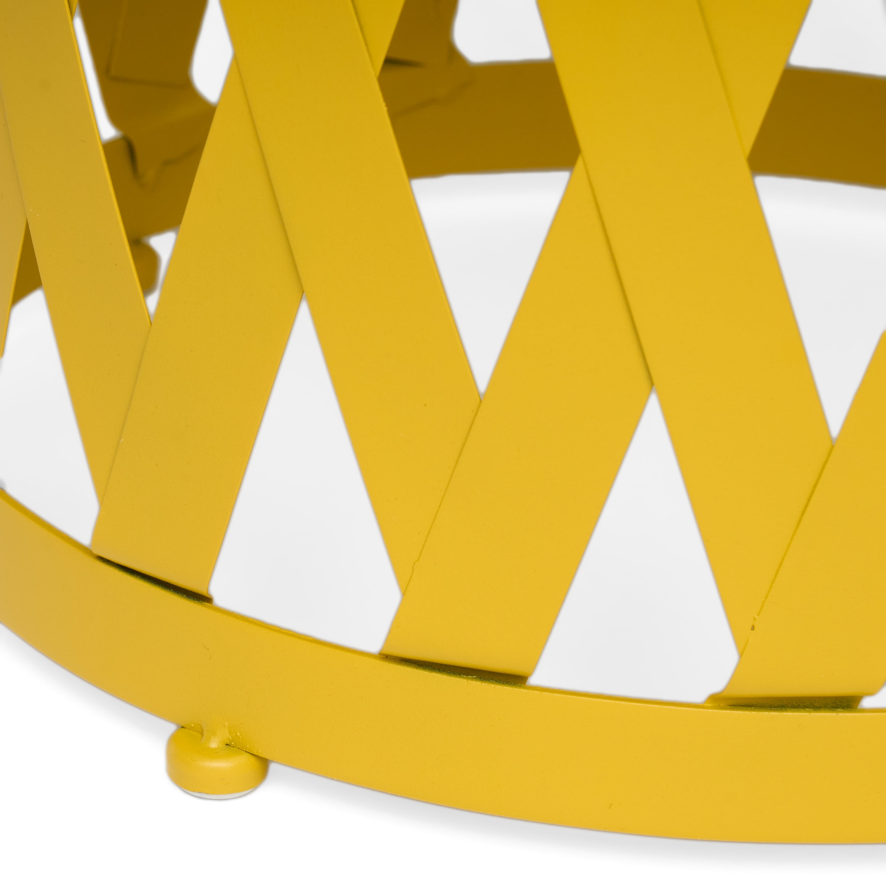 Aubriella Outdoor 14 Inch Diameter Iron Side Table, Matte Yellow: Includes: One (1) Side Table Material: Iron Multiple Finish Options Hand-Crafted Details No Assembly Required Dimensions: 15.00 inches deep x 15.00 inches wide x 22.75 inches high Weight Capacity: 15.00 lbs