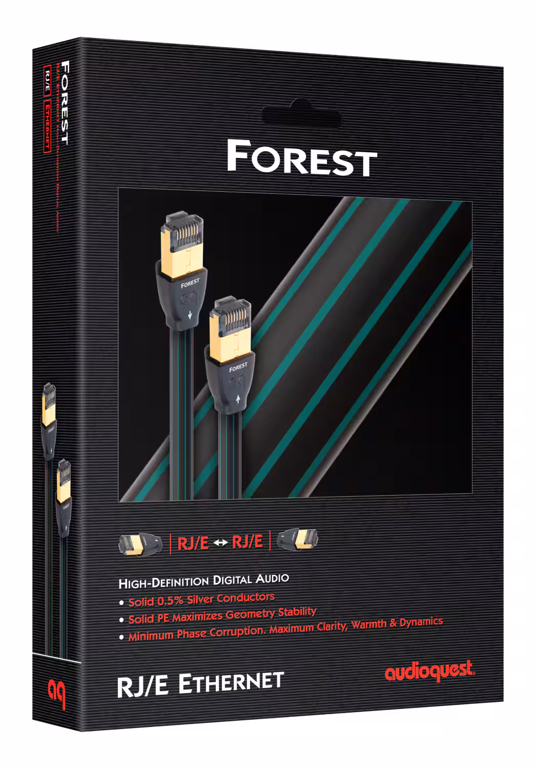 The AudioQuest Forest RJ/E Ethernet Cable is crafted for those who demand reliable, fast speeds, and a more naturally beautiful sound. Its solid 0.5% silver conductors are designed for streaming and gaming, making it a perfect fit for an optimized digital lifestyle.