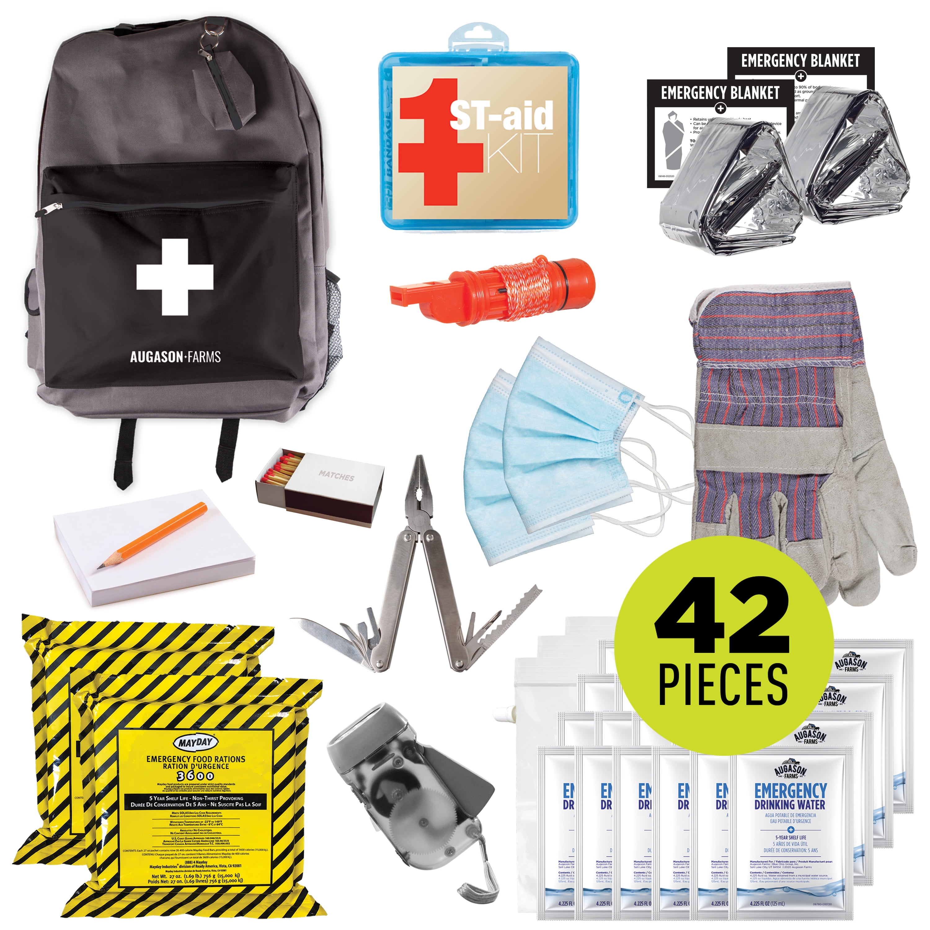 Augason Farms Survival Pack, 72 Hours, 2 Person, 42 Pieces, Emergency Kit, 14 lbs