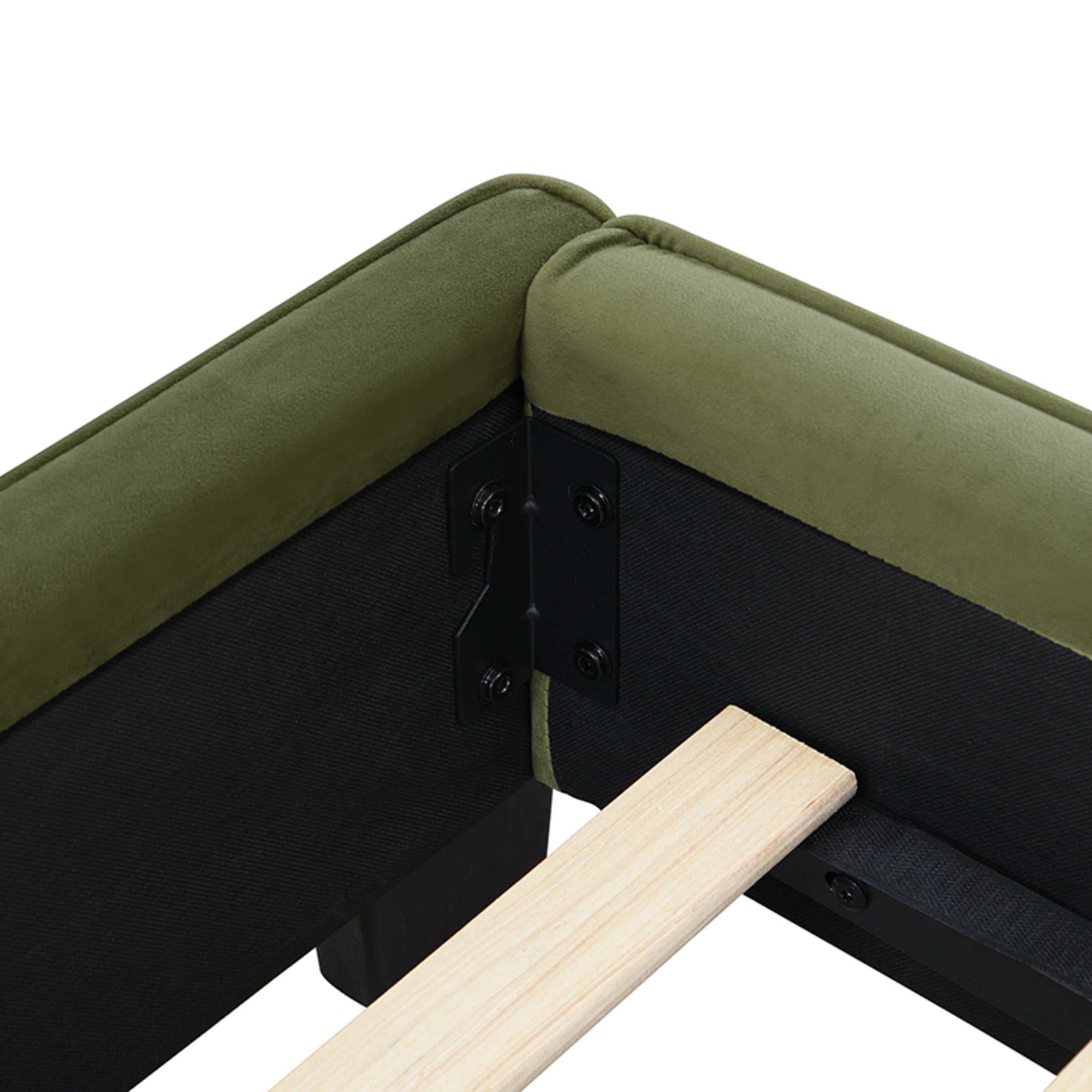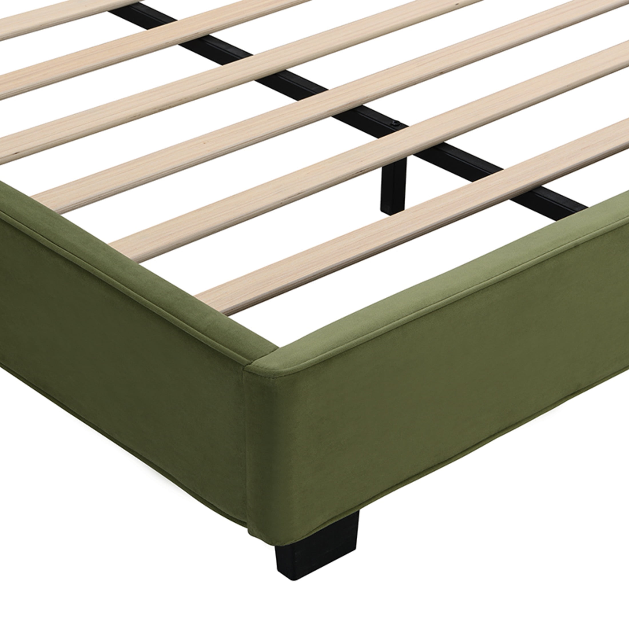 Augustus Luxurious Velvet King Bed Frame with Curved Tufted Headboard, Oliver Green