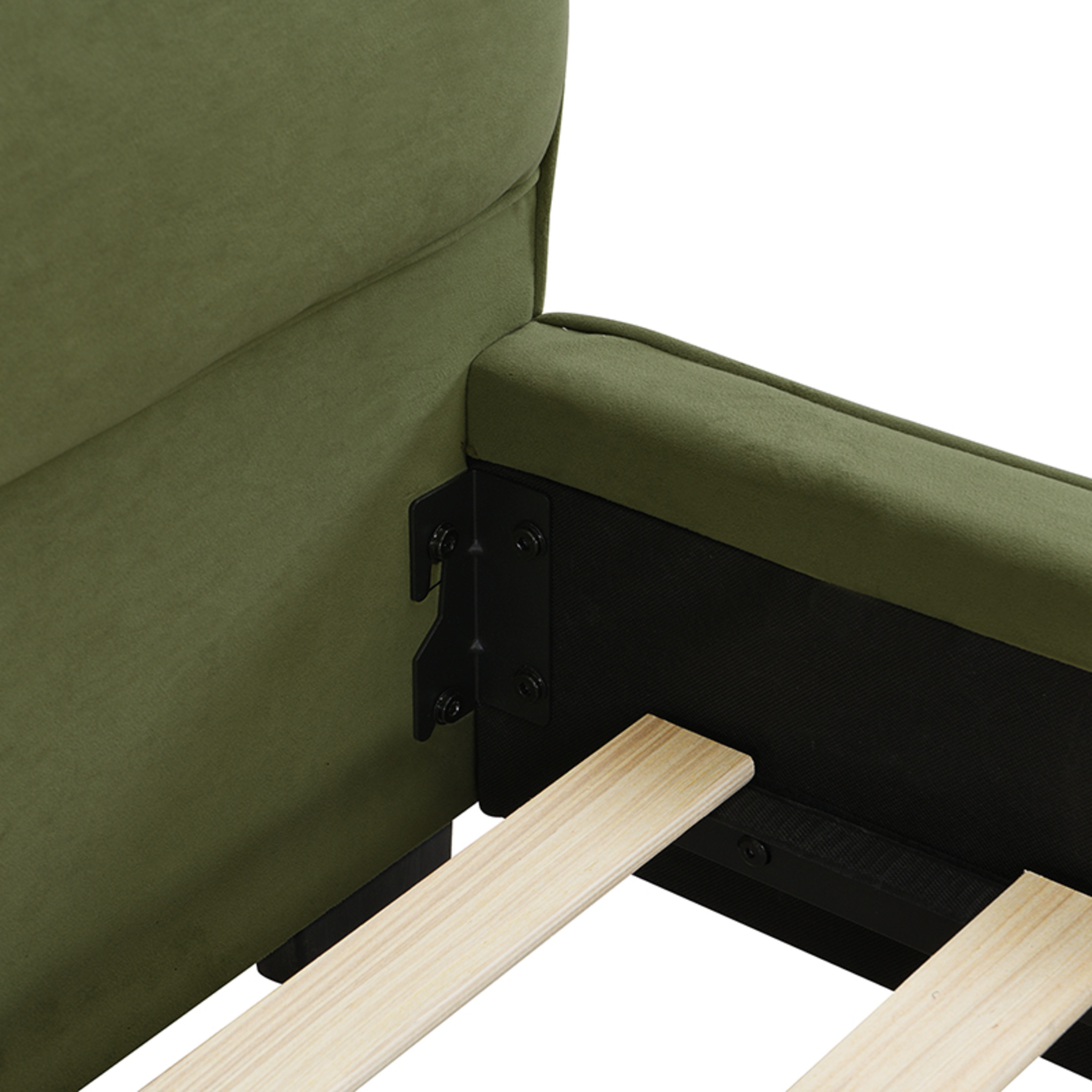Augustus Luxurious Velvet King Bed Frame with Curved Tufted Headboard, Oliver Green: Includes: One (1) Bed Frame Upholstered Material: Velvet Frame Material: MDF Assembly Required Weight Capacity: 500 lbs Dimensions: 85.50″ L x 80.75″ W x 35.00″ H