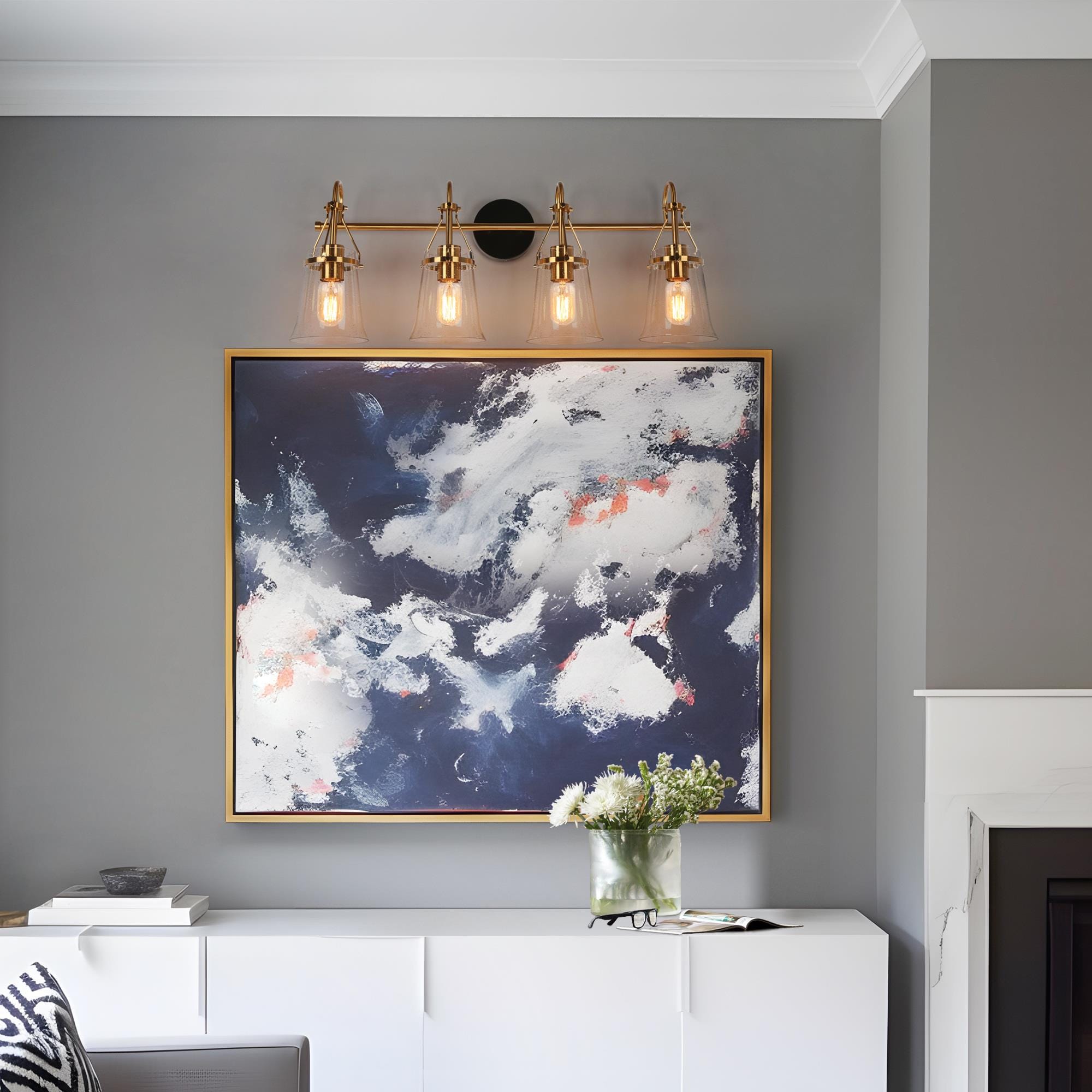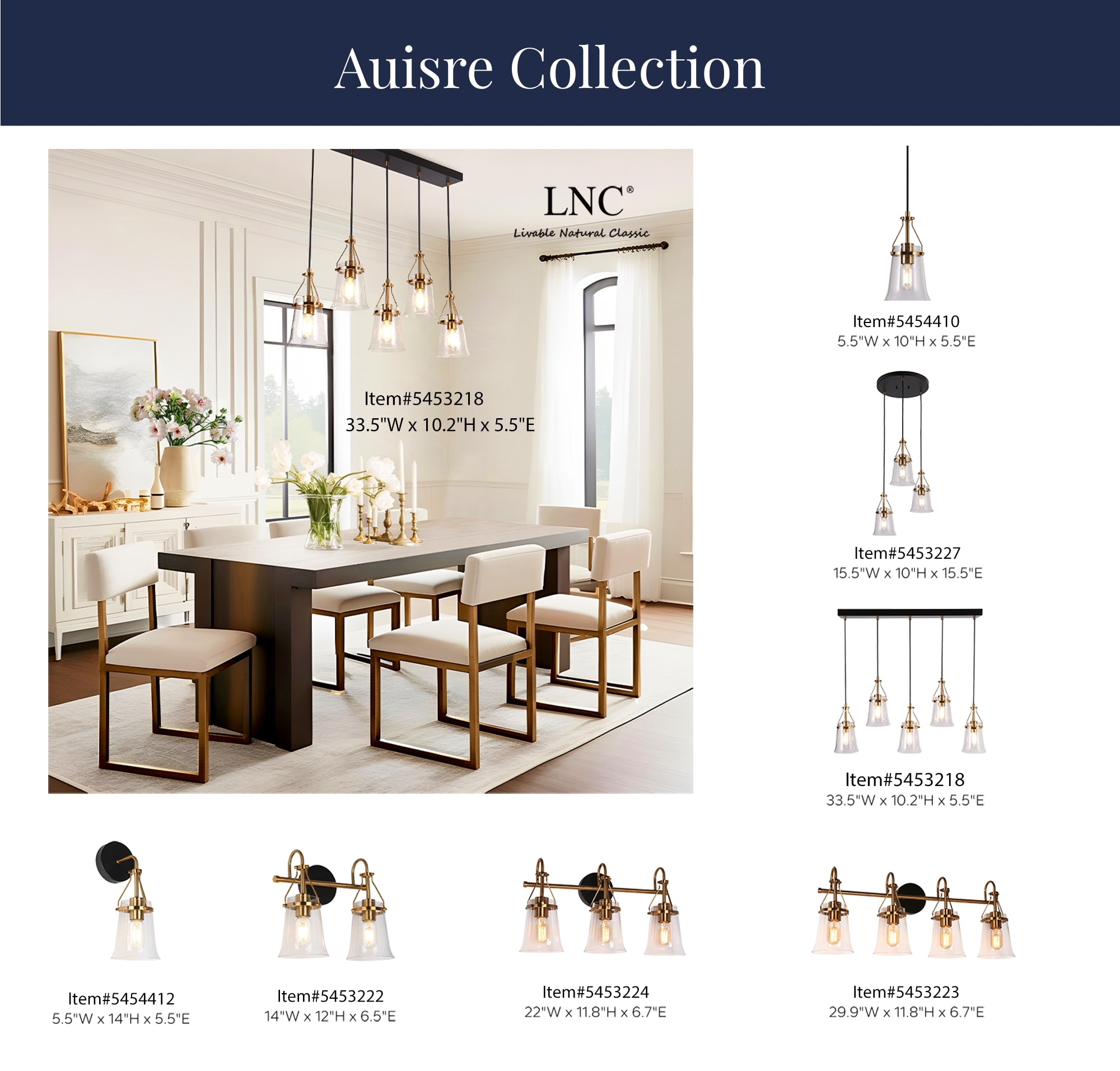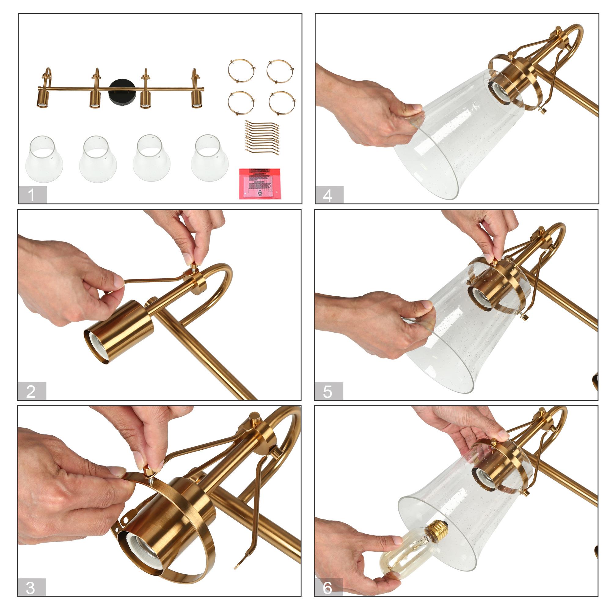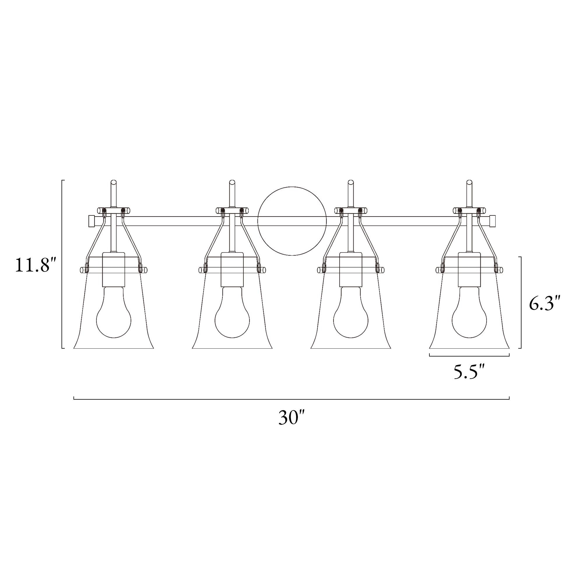 Upgrade your bathroom with our LNC Auisre collection Polished Brass Modern 4-light Bathroom Vanity Light. With its stylish combination of matte black and polished electroplated gold brass finishes, this vanity light bar adds a touch of contemporary elegance to your space. The four bell-shaped clear seeded glass shades mounted on a tapered bar create a visually striking design. For maximum energy efficiency and a soft, warm glow, we recommend using LED light bulbs. Illuminate your entire bathroom with this stunning and functional vanity light, and elevate your home decor to a new level of style and sophistication. Shop now and transform your bathroom into a modern oasis!