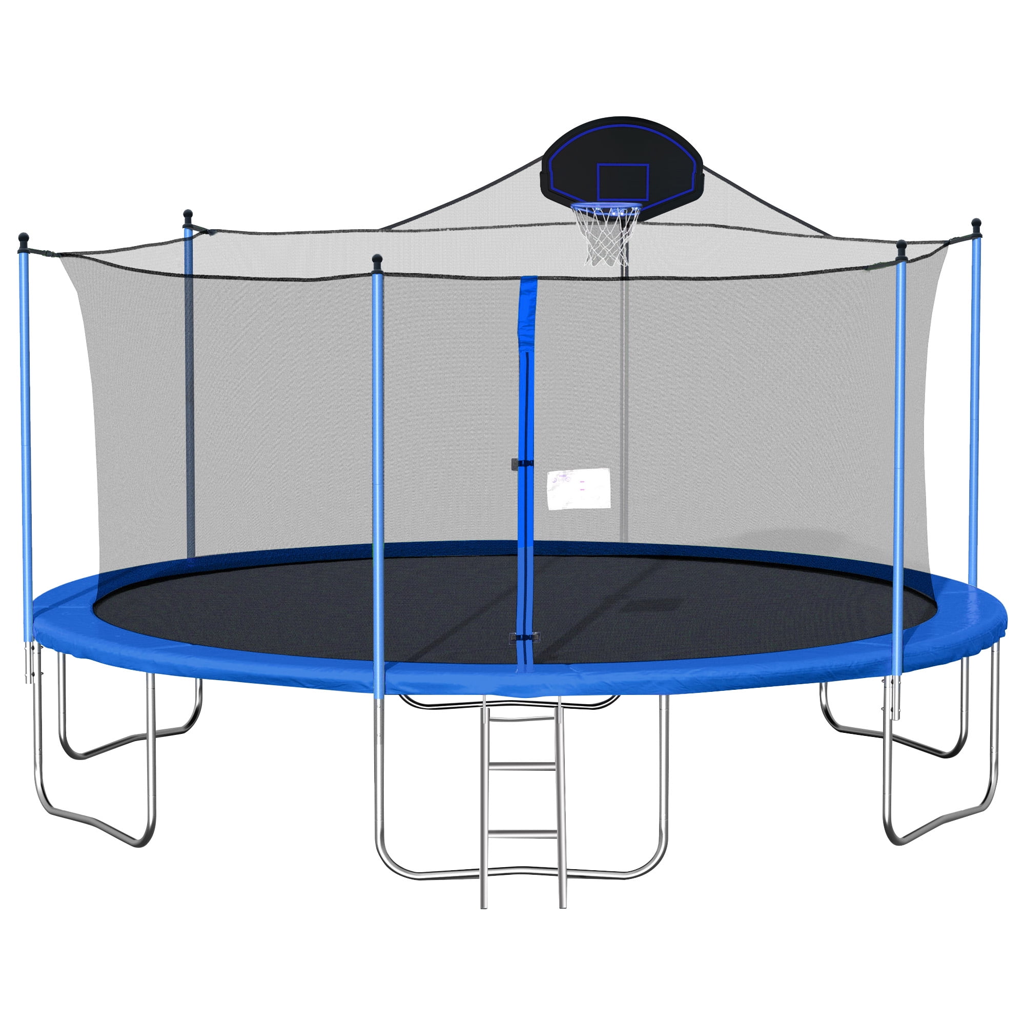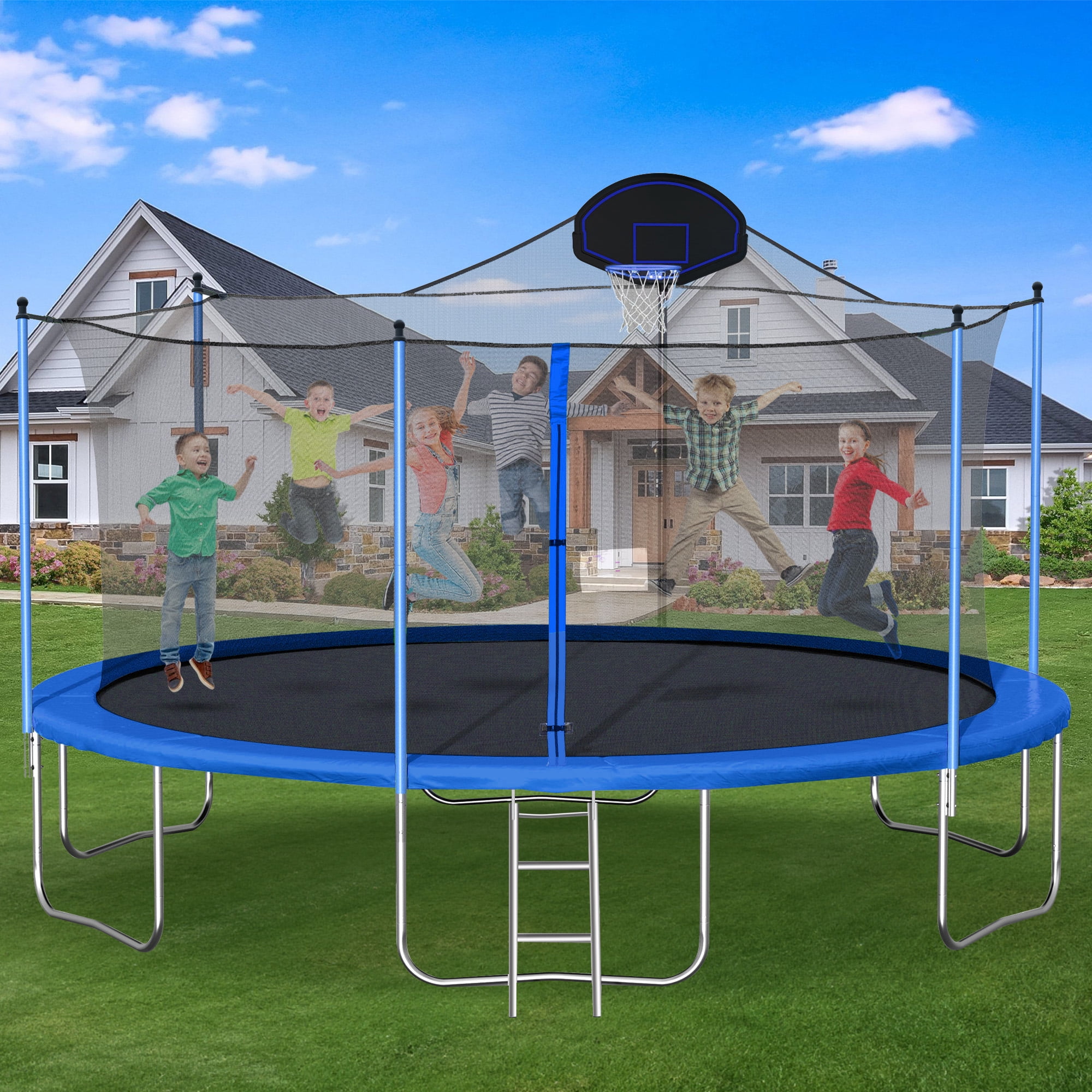 Aukfa 16FT Trampoline with Basketball Hoop for Kids Adults, Outdoor Trampoline with Enclosure for Backyard – Blue