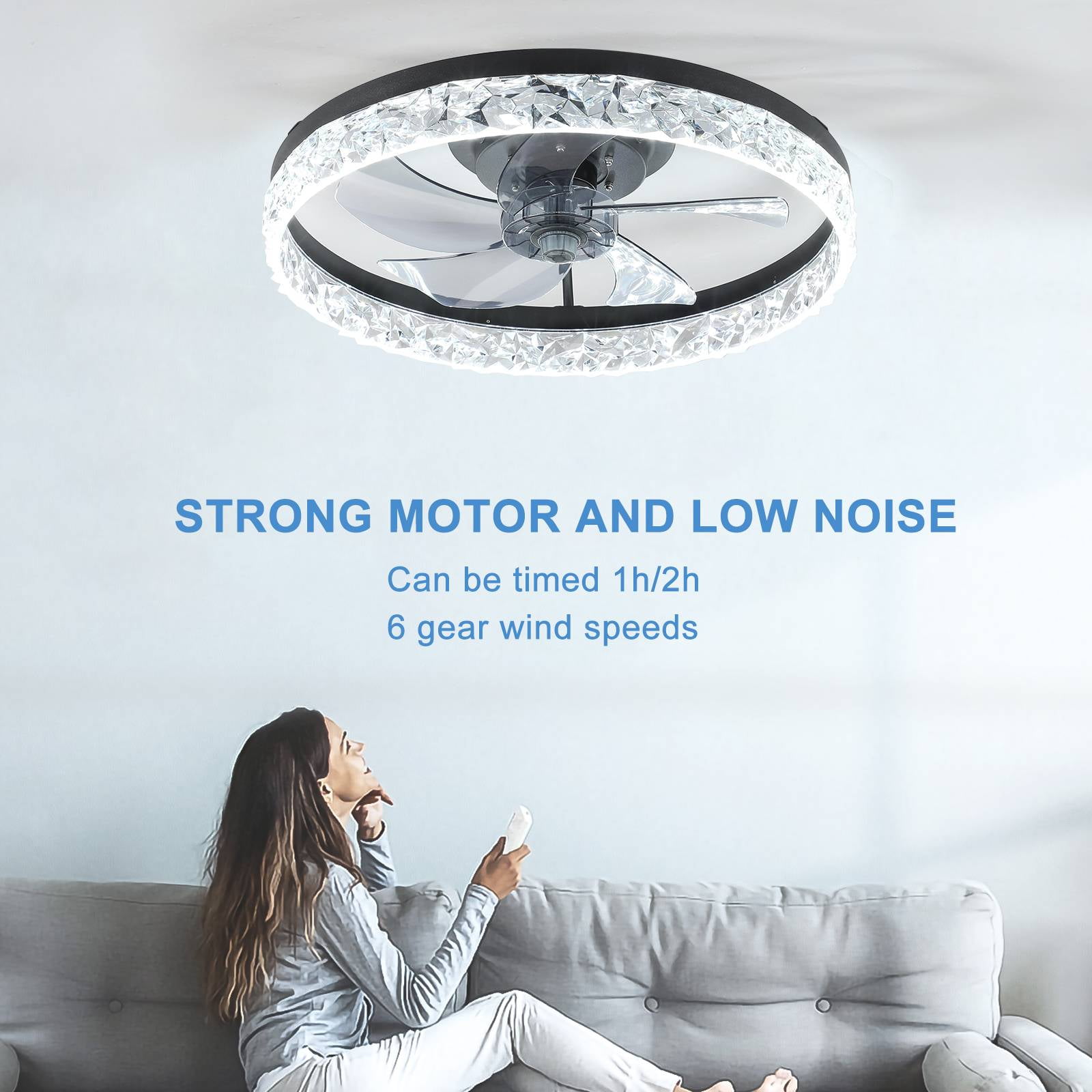 Aukfa 19.7″ Bladeless Ceiling Fan with Light – Flush Mount Design – Remote Controlled – Adjustable LED Lights – Multiple Speed Settings