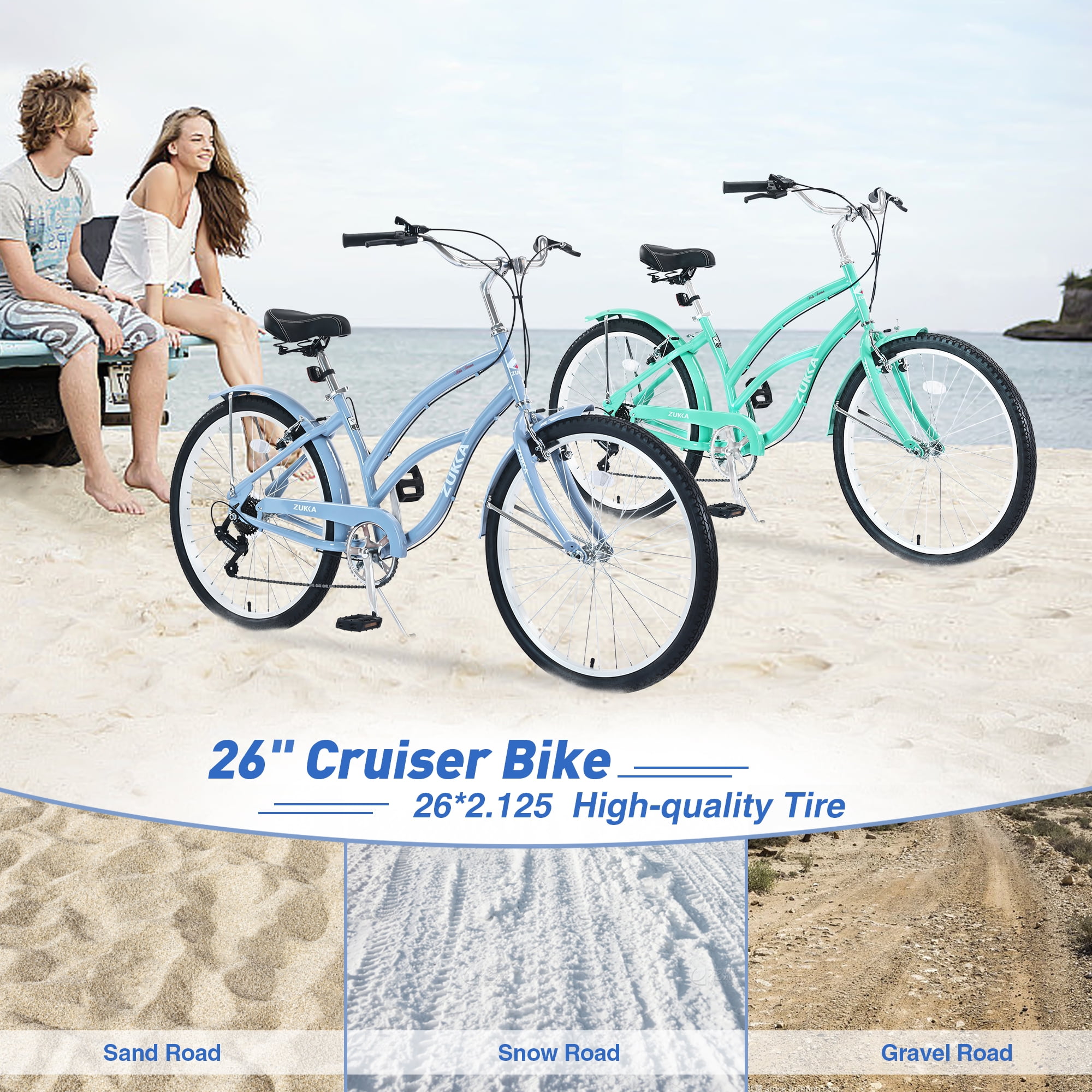 Aukfa 26″ Cruiser Bike, 7 Speed Bicycle Hybrid Bikes for Women Girls Ladies,Mint Green
