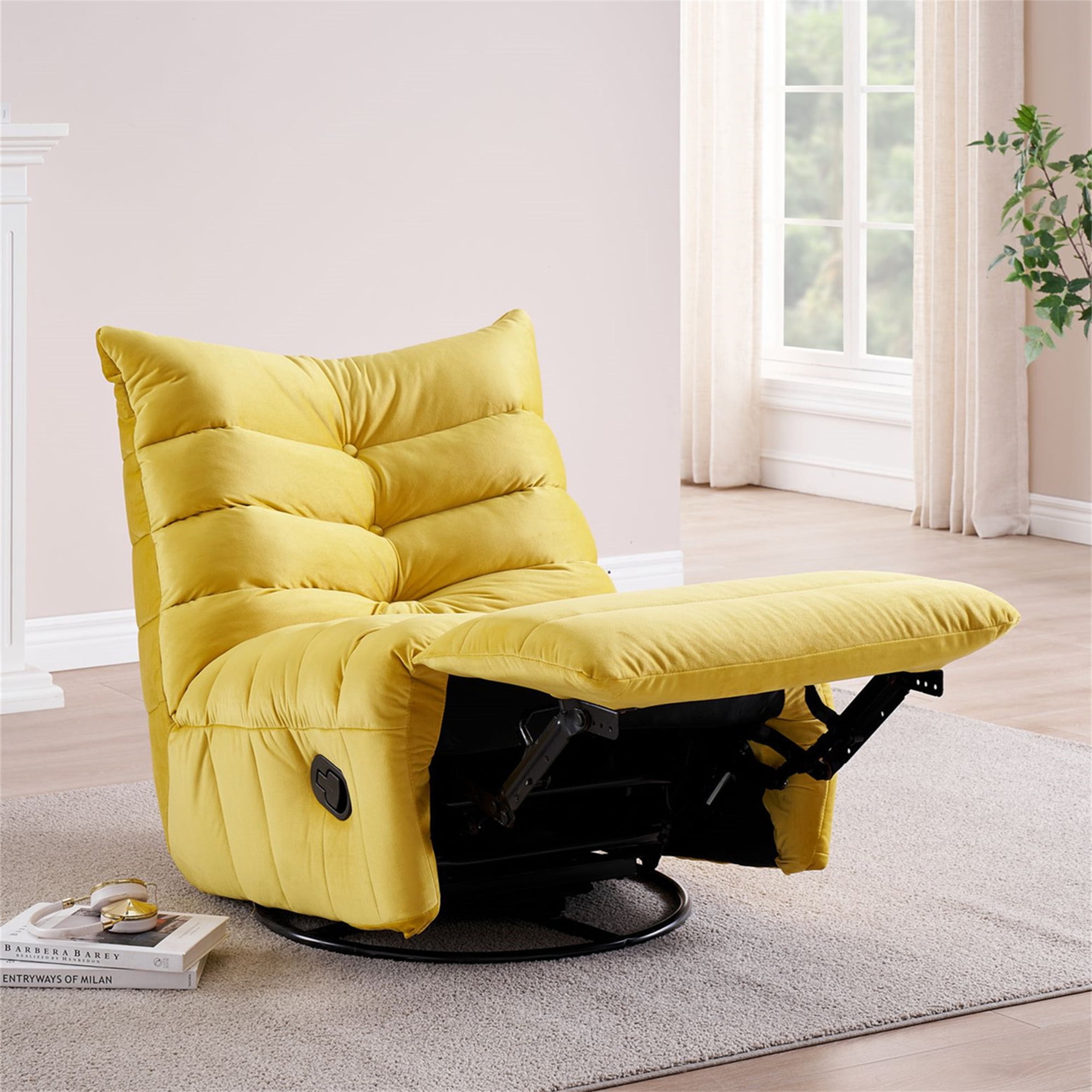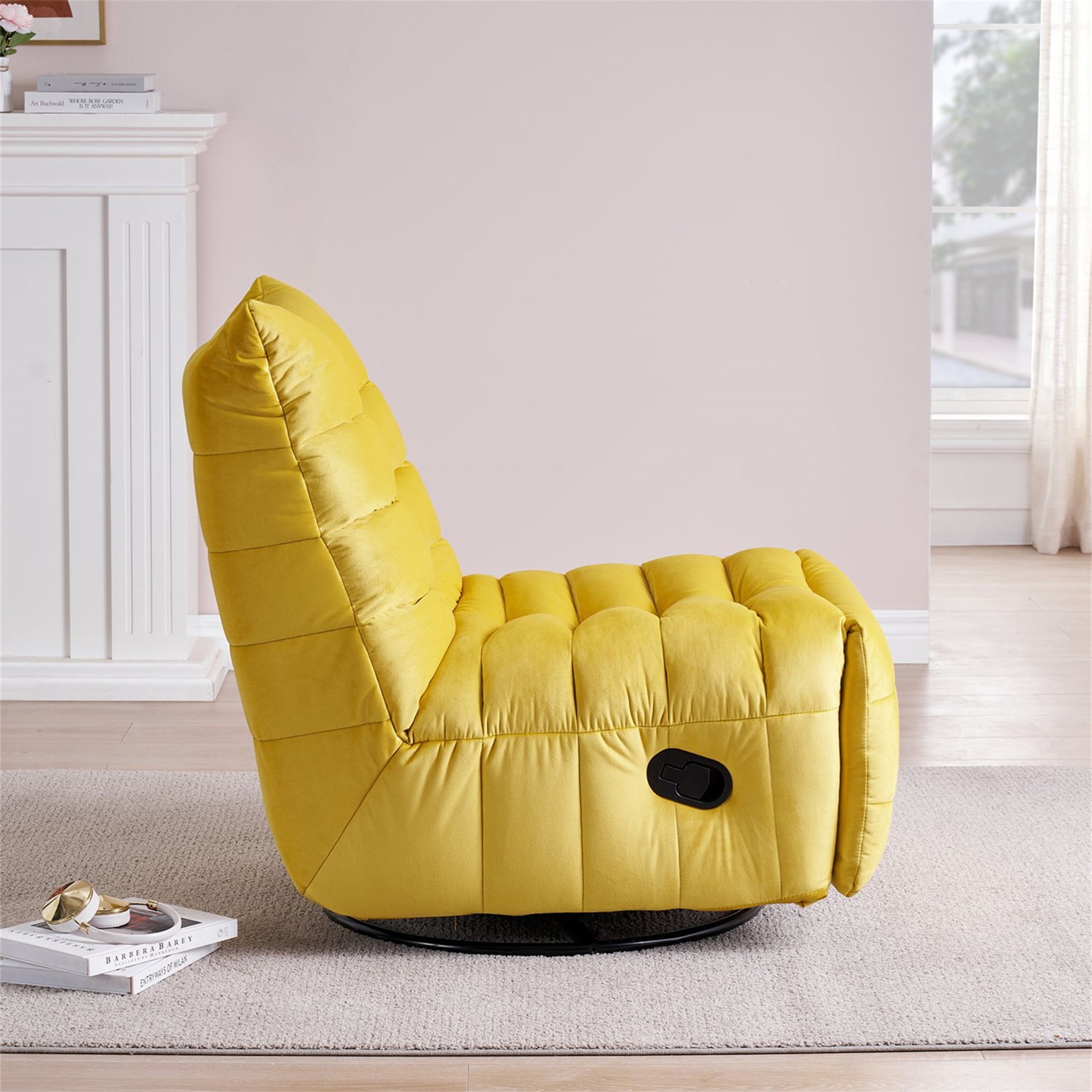 Aukfa 360° Swivel Rocker Recliner Chair Upholstered Plush Sofa for Living Room, Velvet, Yellow