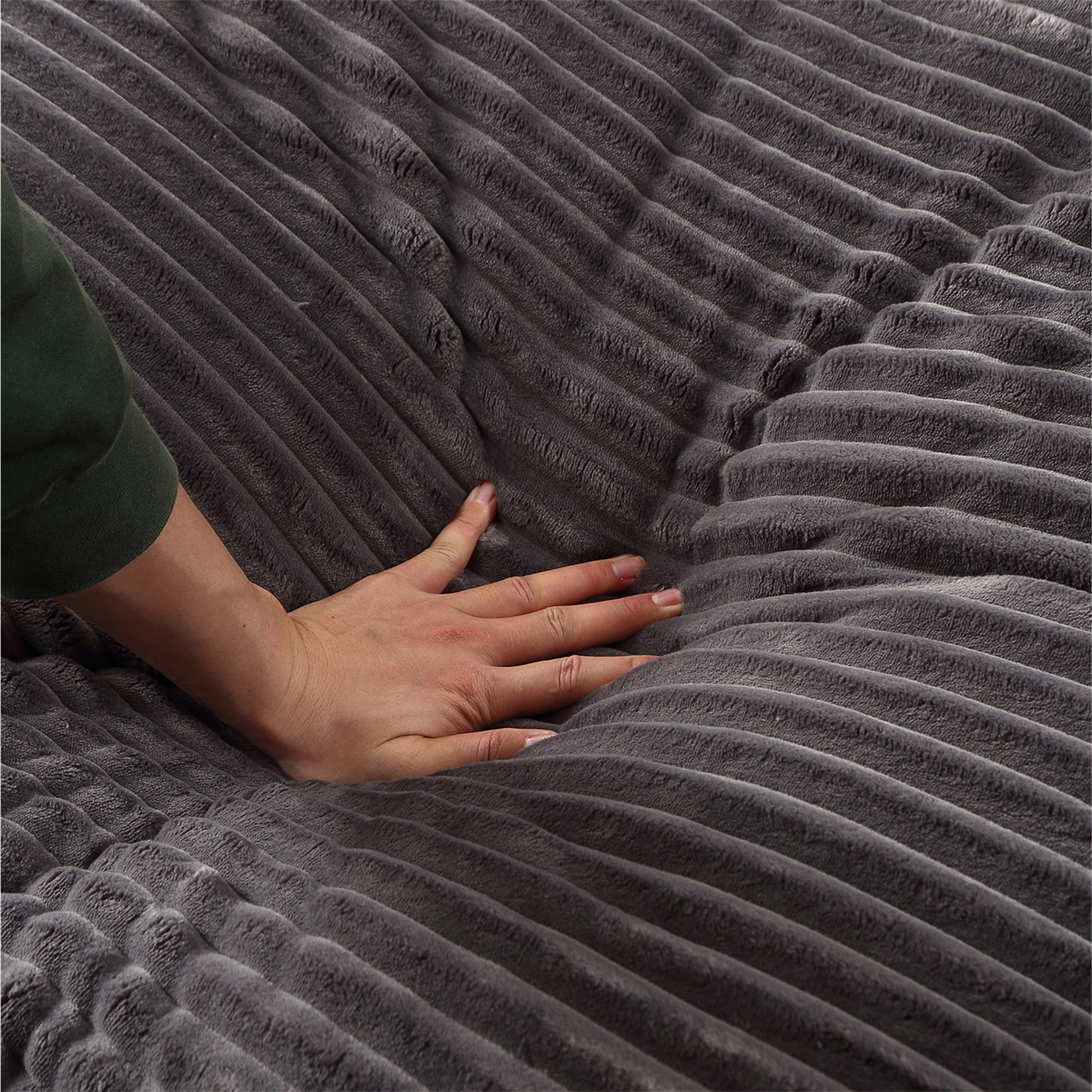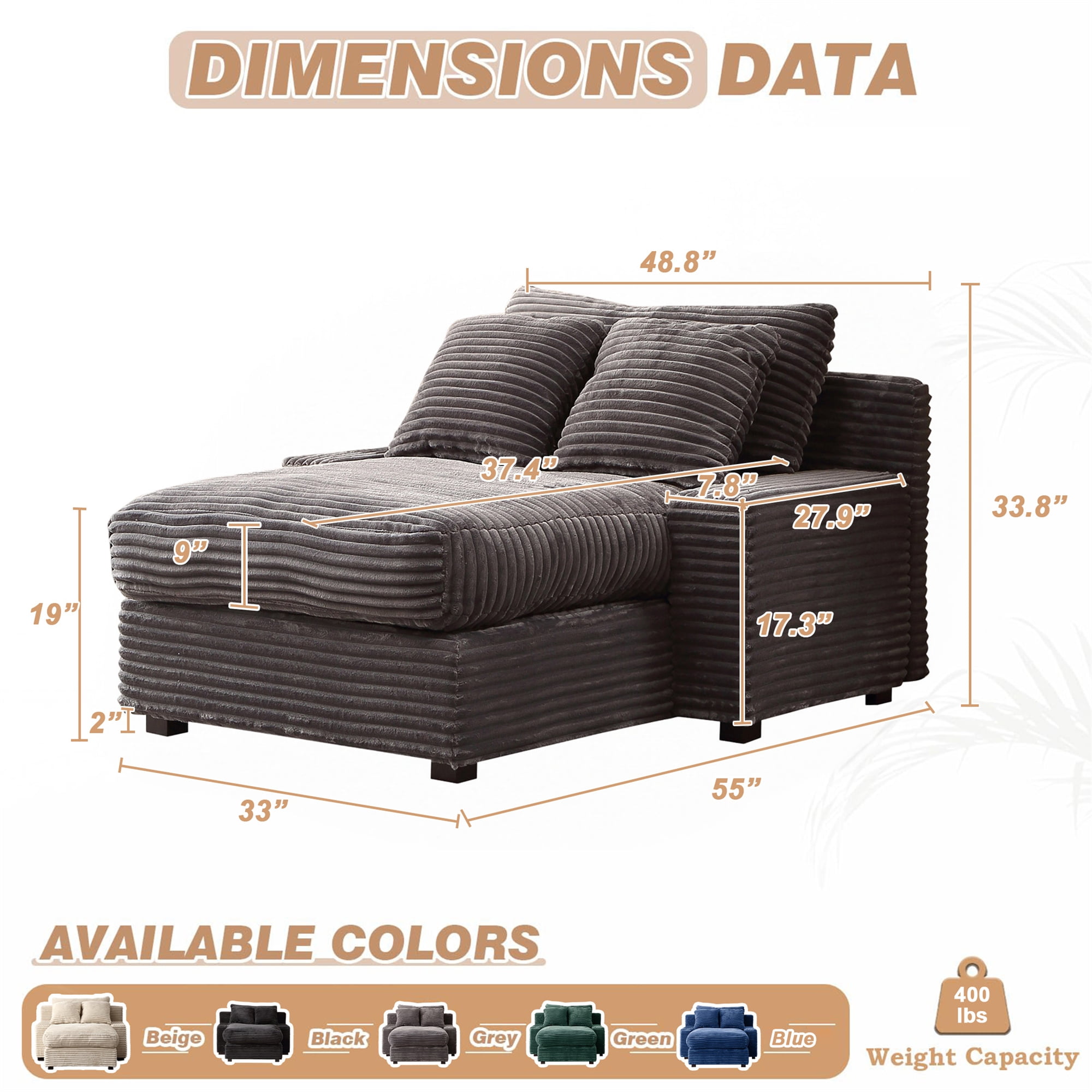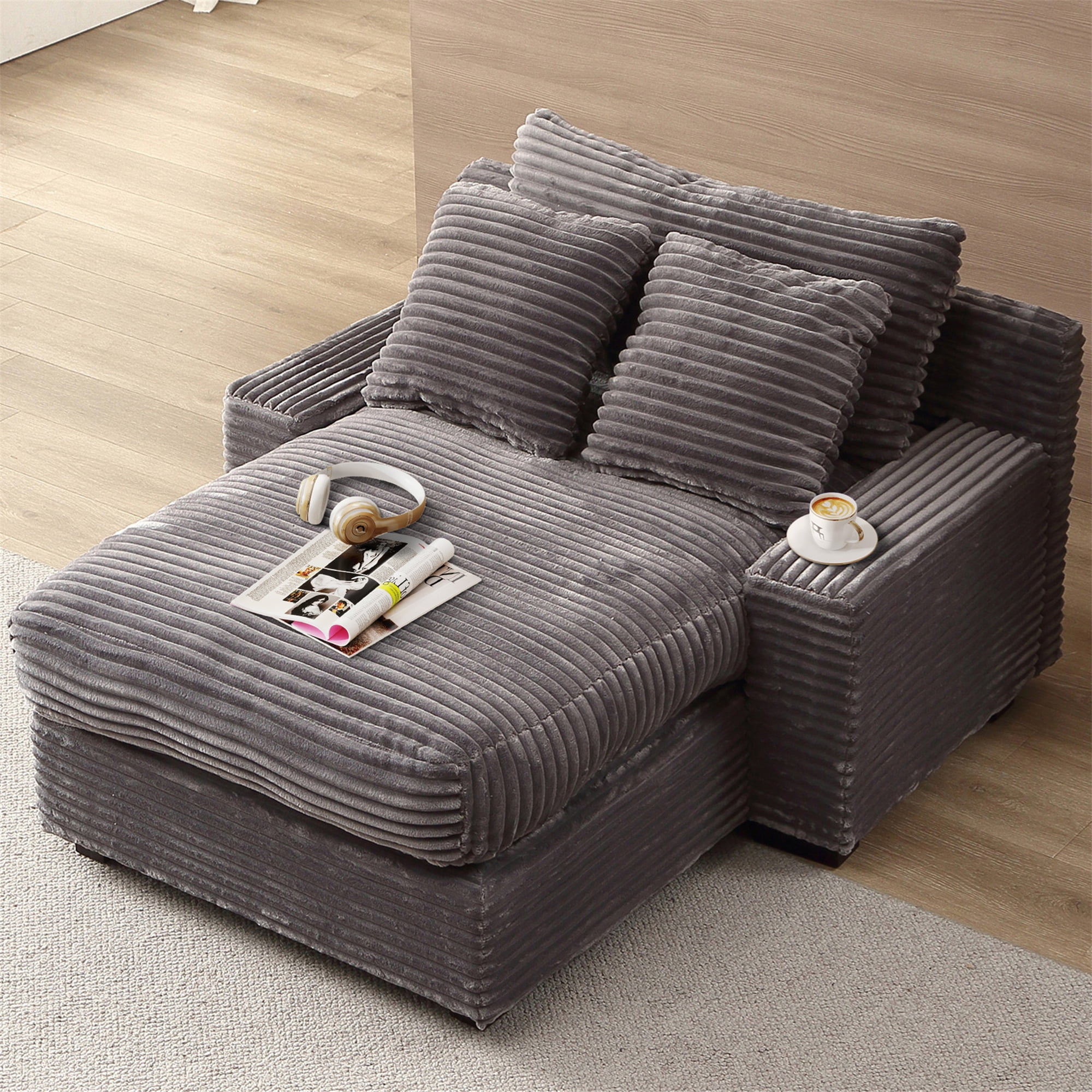 Aukfa 49″ Chaise Lounge Oversized Corduroy Sofa Plush Chair Bed w/ 3 Pillows for Living Room, Gray