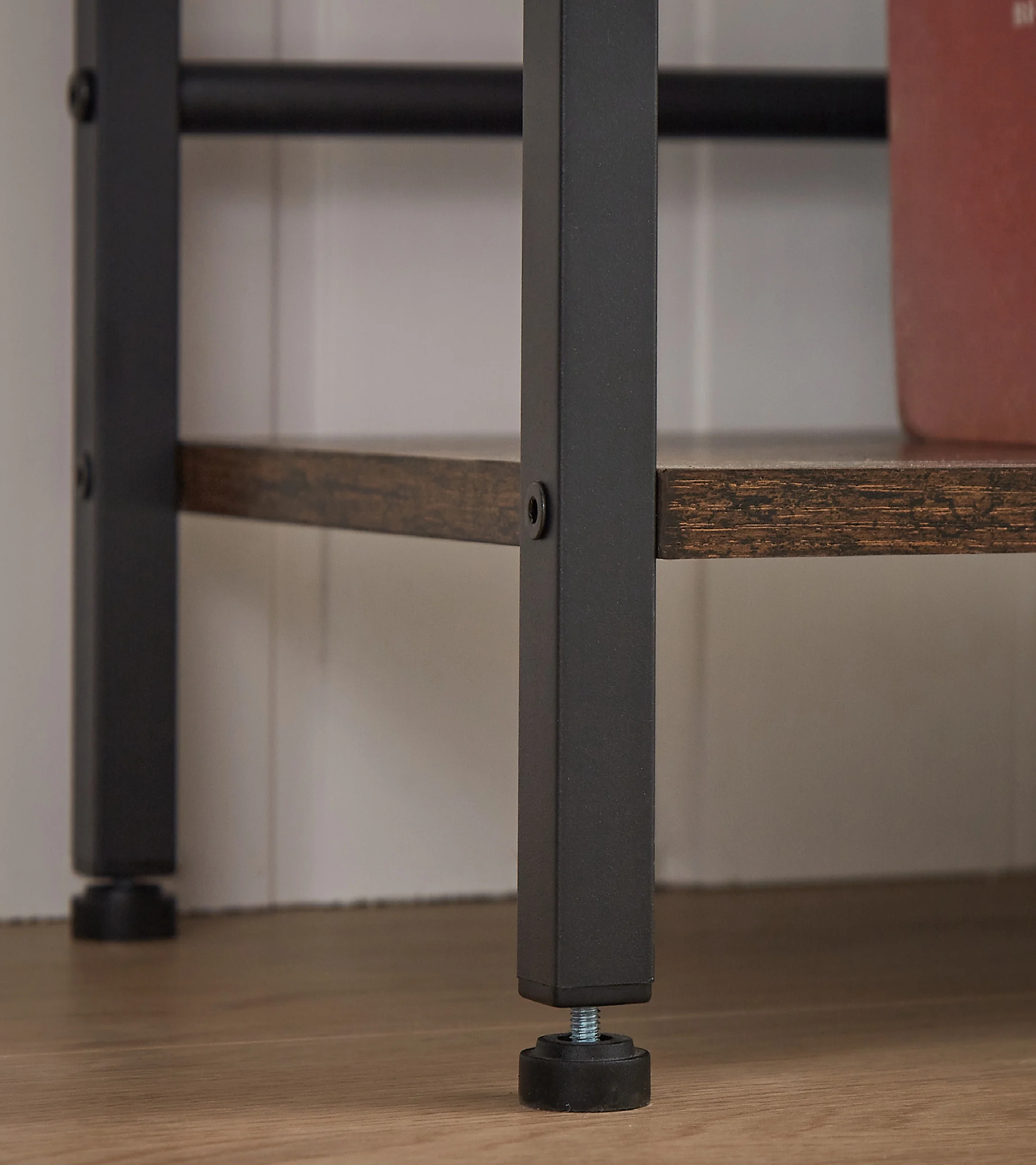 PRODUCT INFORMATION: 5-Shelf Bookcase: 69.3”W x 11.8”D x 70.1”H Overall Product Weight: 79.2 LBS Features: Product Type: 5-Shelf Bookcase;Tall Bookshelves Color: Brown/Gray/Dark Gray Style:Industrial Material: MDF Board & Steel Frame Number of Shelf: 14 Capacity:85 LBS Per Shelf Adjustable Foot Pads: Yes Anti-falling Device :Yes Package Included: Bookcase & Hardware Pack & Instruction Supplier Intended and Approved Use:Non Residential Use; Residential Use Product Care Instructions:Wipe with Damp Cloth Assembly: Assembly Required: Yes Level of Assembly: Full Assembly Needed Installation Required: Yes Warranty: Commercial Warranty: Yes Product Warranty: Yes Warranty Length: 3 Months Warranty Full or Limited Warranty: Full PACKAGE INFORMATION: 1 x 5-Shelf Bookcase 1 x User Manual:AK_AK-HFB1WPB010-N0_PUM_FX-081523