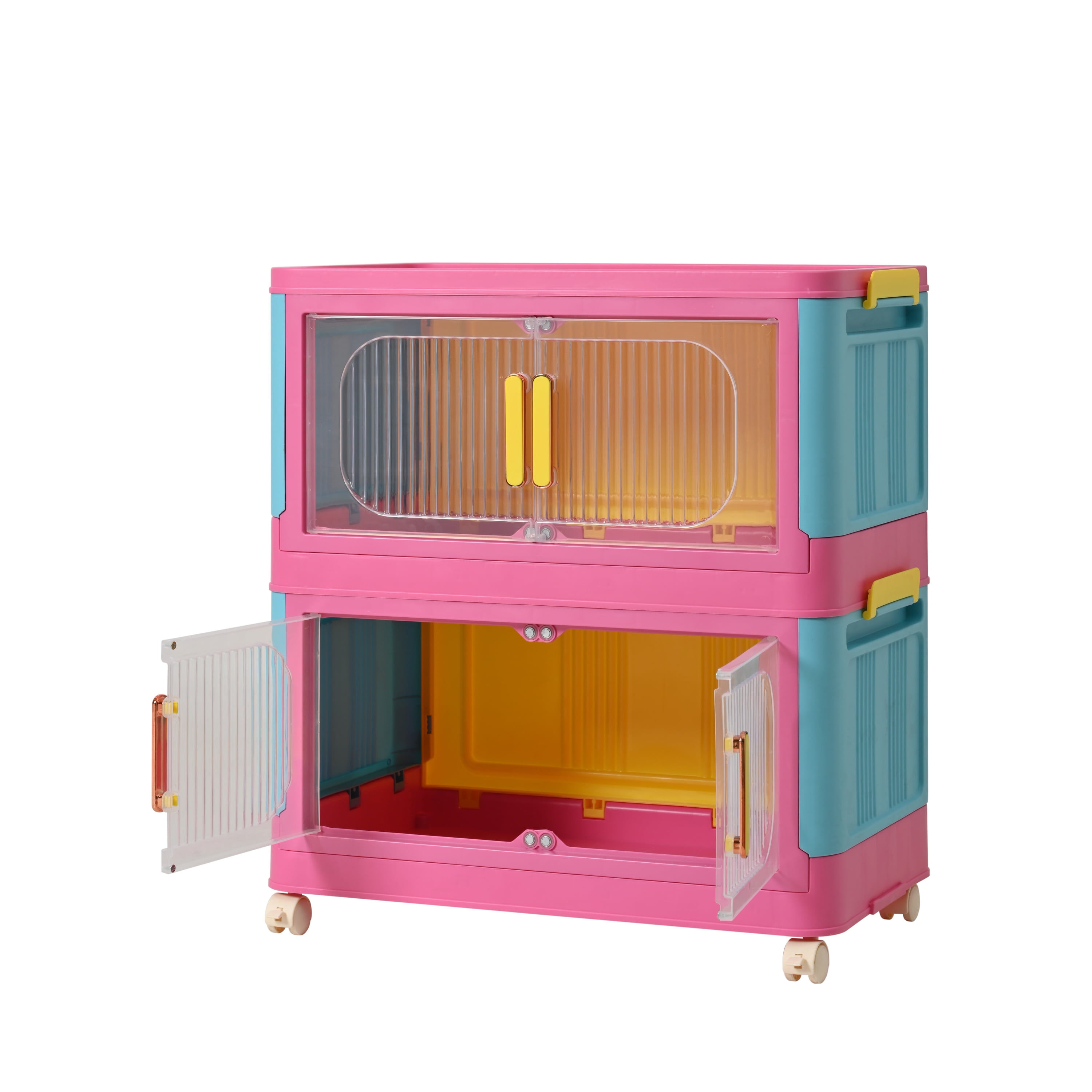 Aukfa 5 Tier Collapsible Storage Bins,20″ Side Plastic Storage Cabinet with Wheels,Pink CLEAR & DURABLE PLASTIC DESIGN – Made from thick, shatter-resistant plastic, these transparent storage bins offer visibility and durability. Perfect for garage storage, basement organization, or closet decluttering—see contents at a glance! SECURE LIDS & STACKABLE DESIGN – Features snap-tight lids to keep items dust-free and secure. The interlocking stackable design saves space in closets, shelves, and storage rooms, making organization effortless. MULTI-PURPOSE STORAGE SOLUTION -Ideal for toy storage, holiday decorations, craft supplies, pantry food storage, and office organization. A versatile choice for home, dorm, or RV use! SPACE-SAVING & EASY TO HANDLE -Lightweight yet sturdy, these folding storage bins with handles are easy to carry and fit in tight spaces like under beds, cabinets, or garage shelves. BPA-FREE & EASY TO CLEAN – Made from non-toxic, odorless plastic, these bins are safe for kids’ toys and food storage. The smooth surface wipes clean in seconds—no stains or lingering smells!