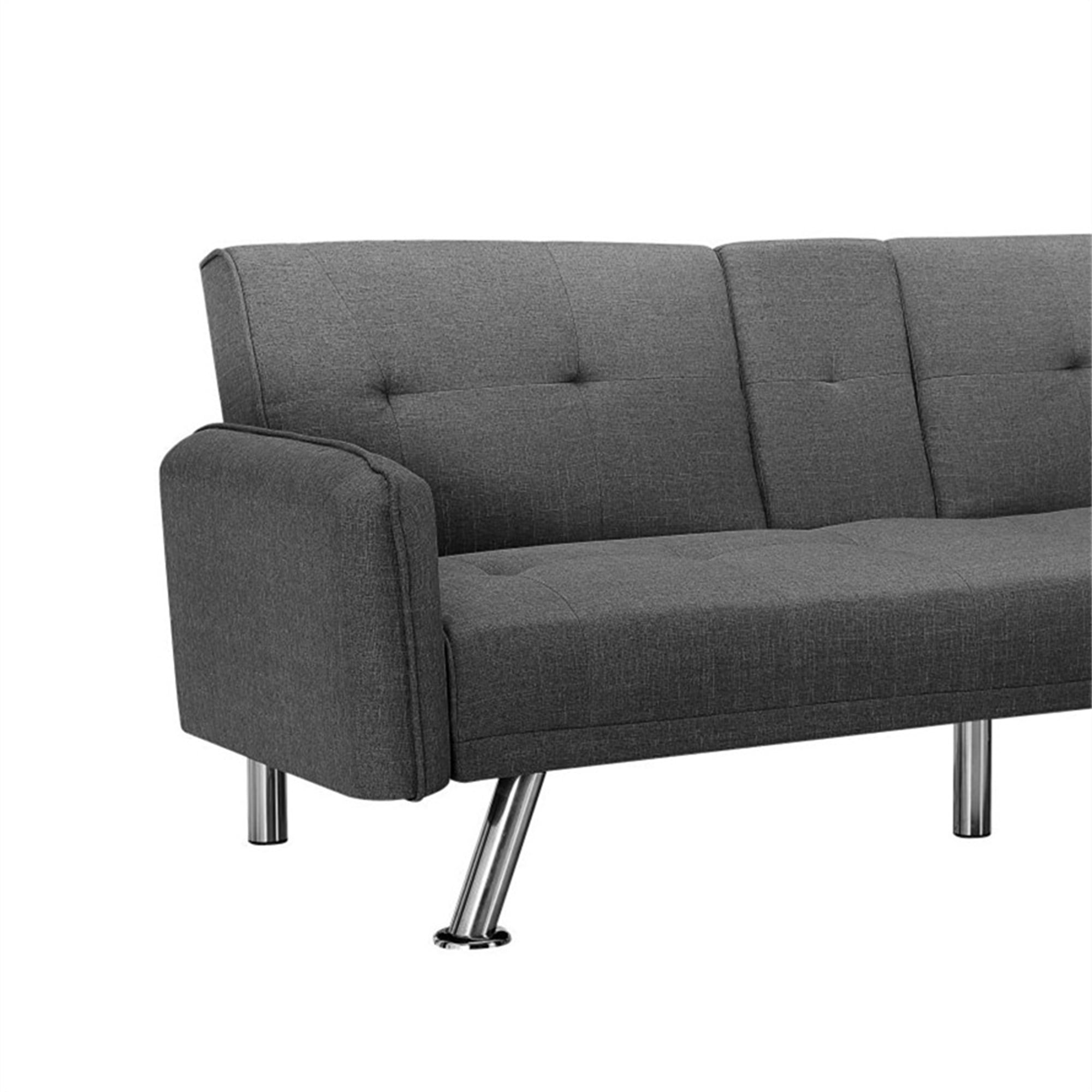Aukfa 75″ Square Arm Futon Convertible Sofa Bed for Home Office, 2 Cup Holders, Linen, Dark Gray