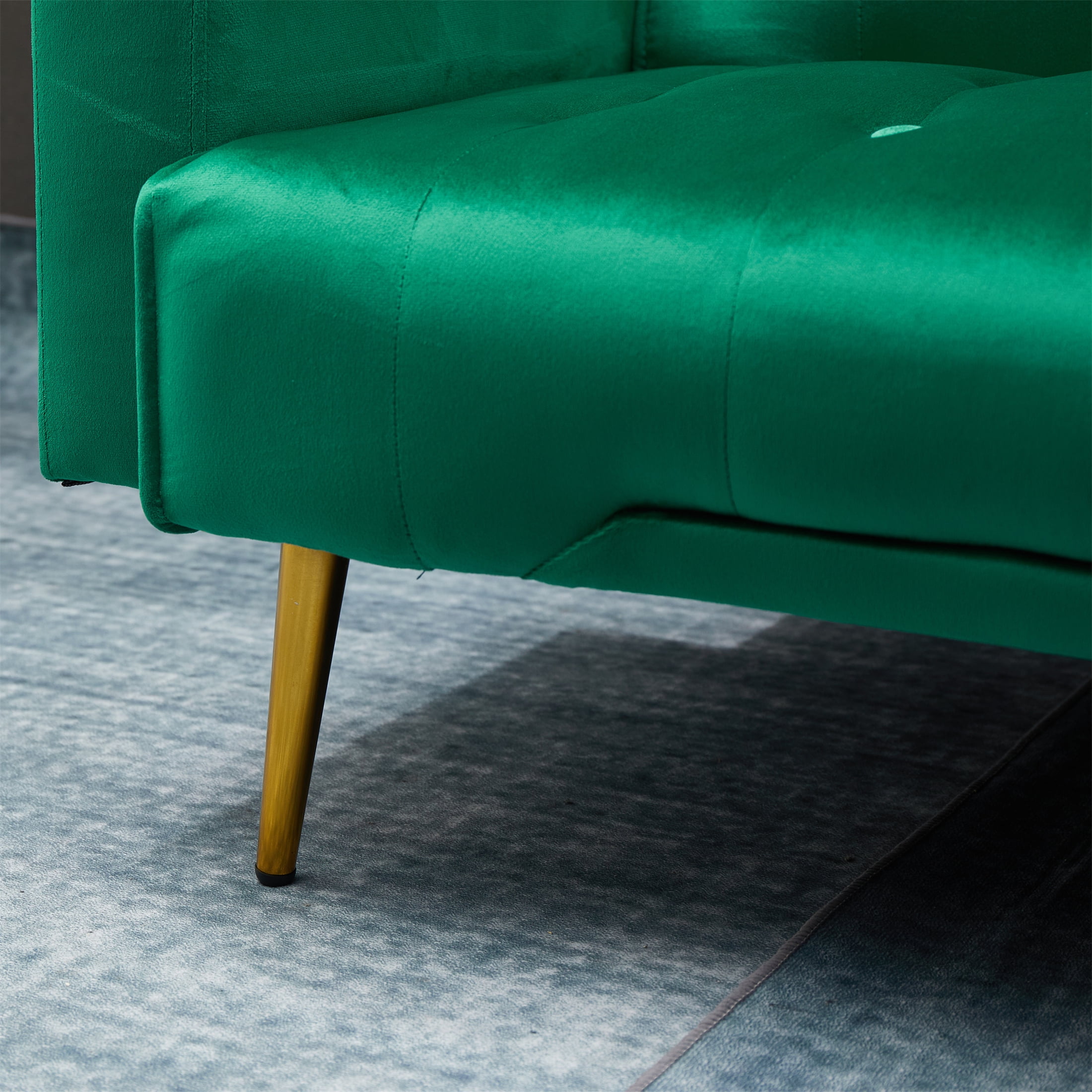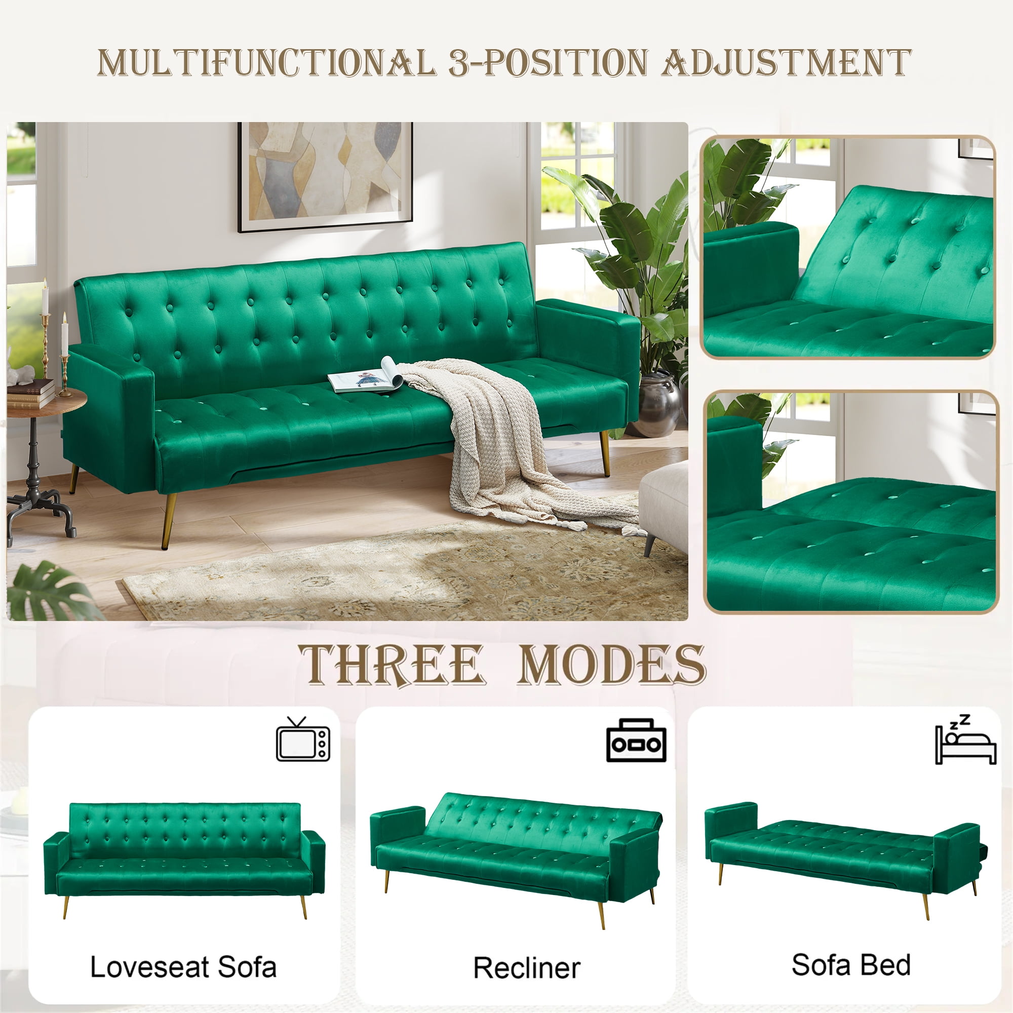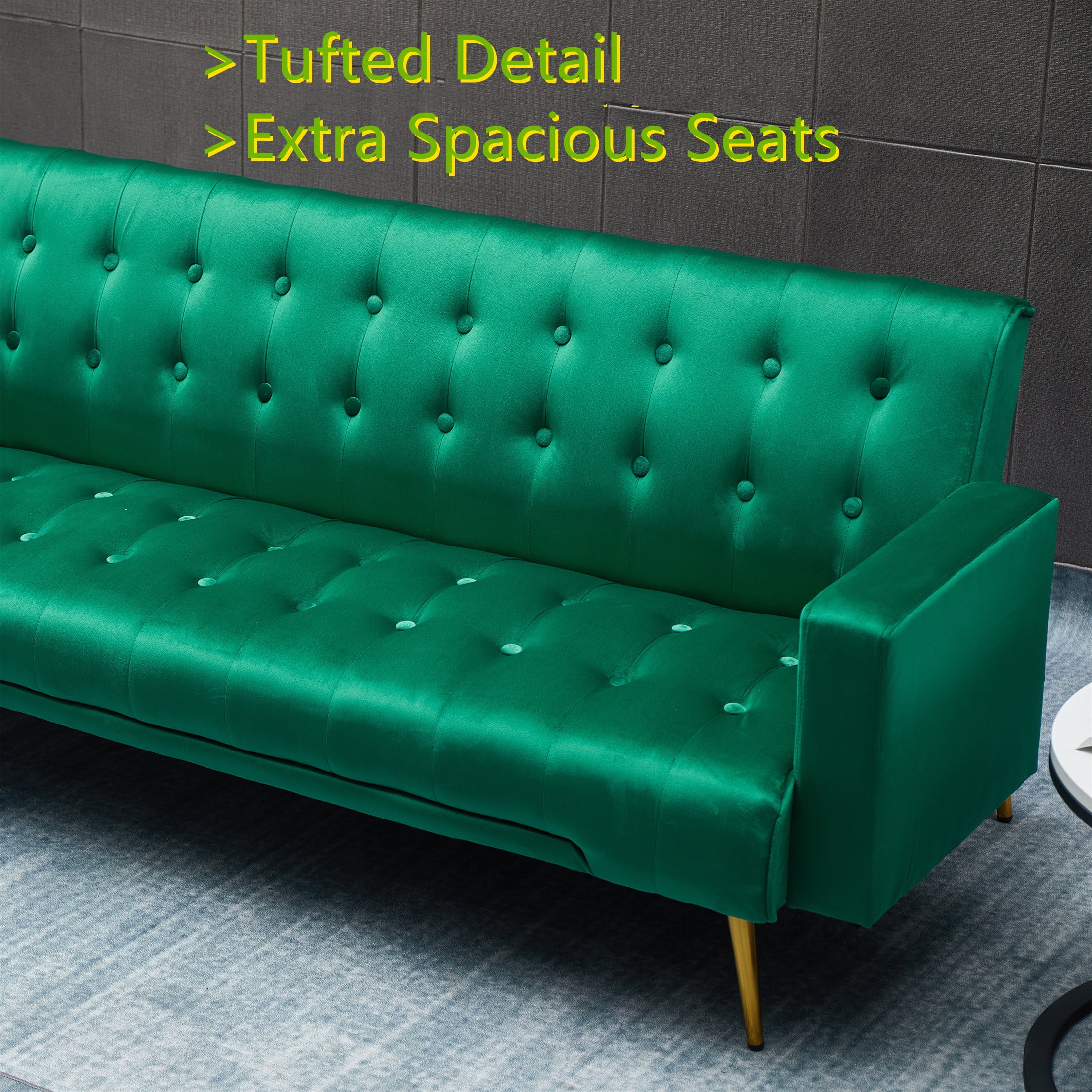 Aukfa 76″ Velvet Futon Convertible Sofa Bed Tufted Arm Couch for Home Office, Green