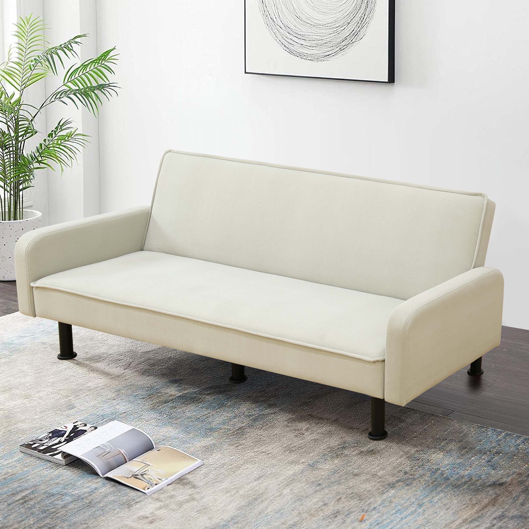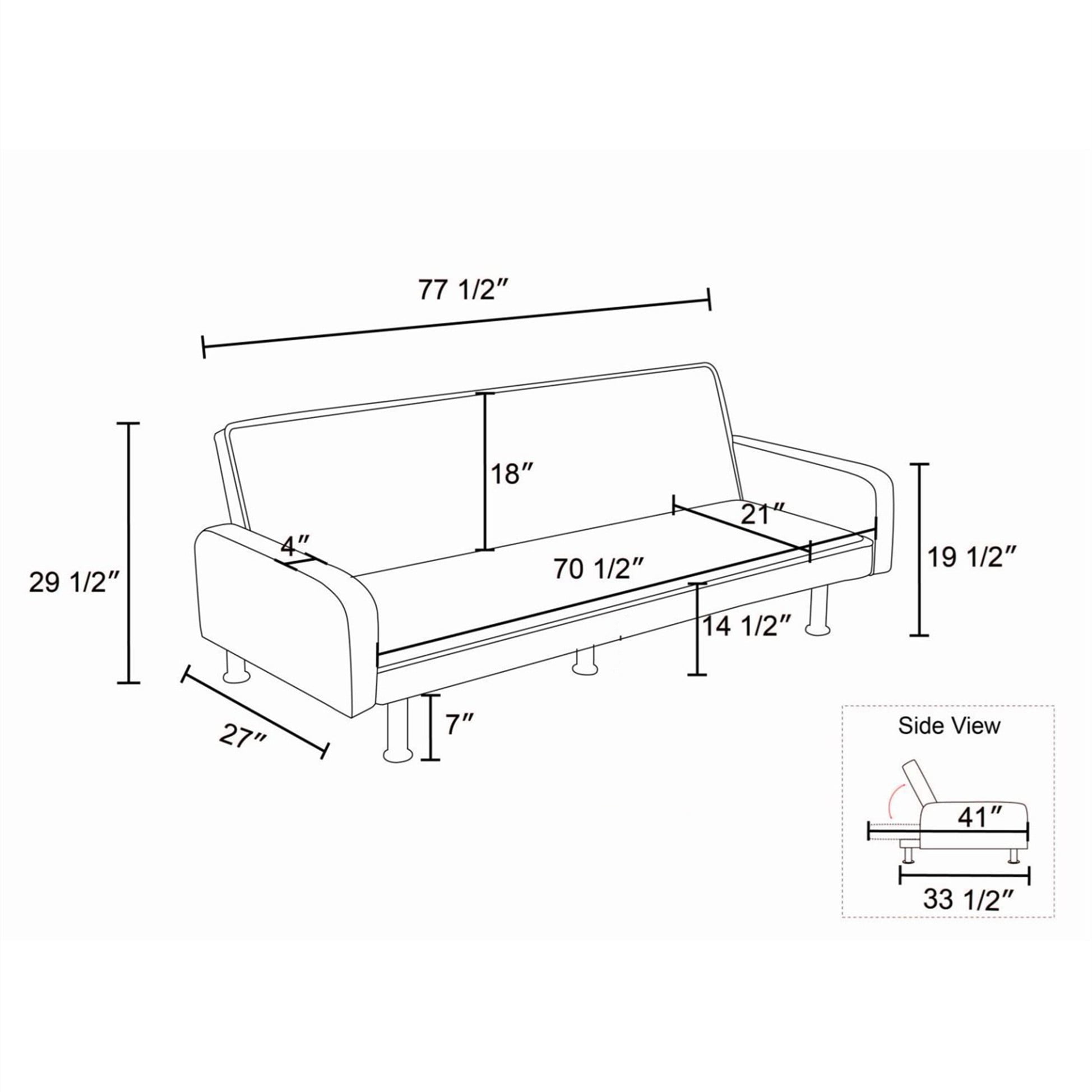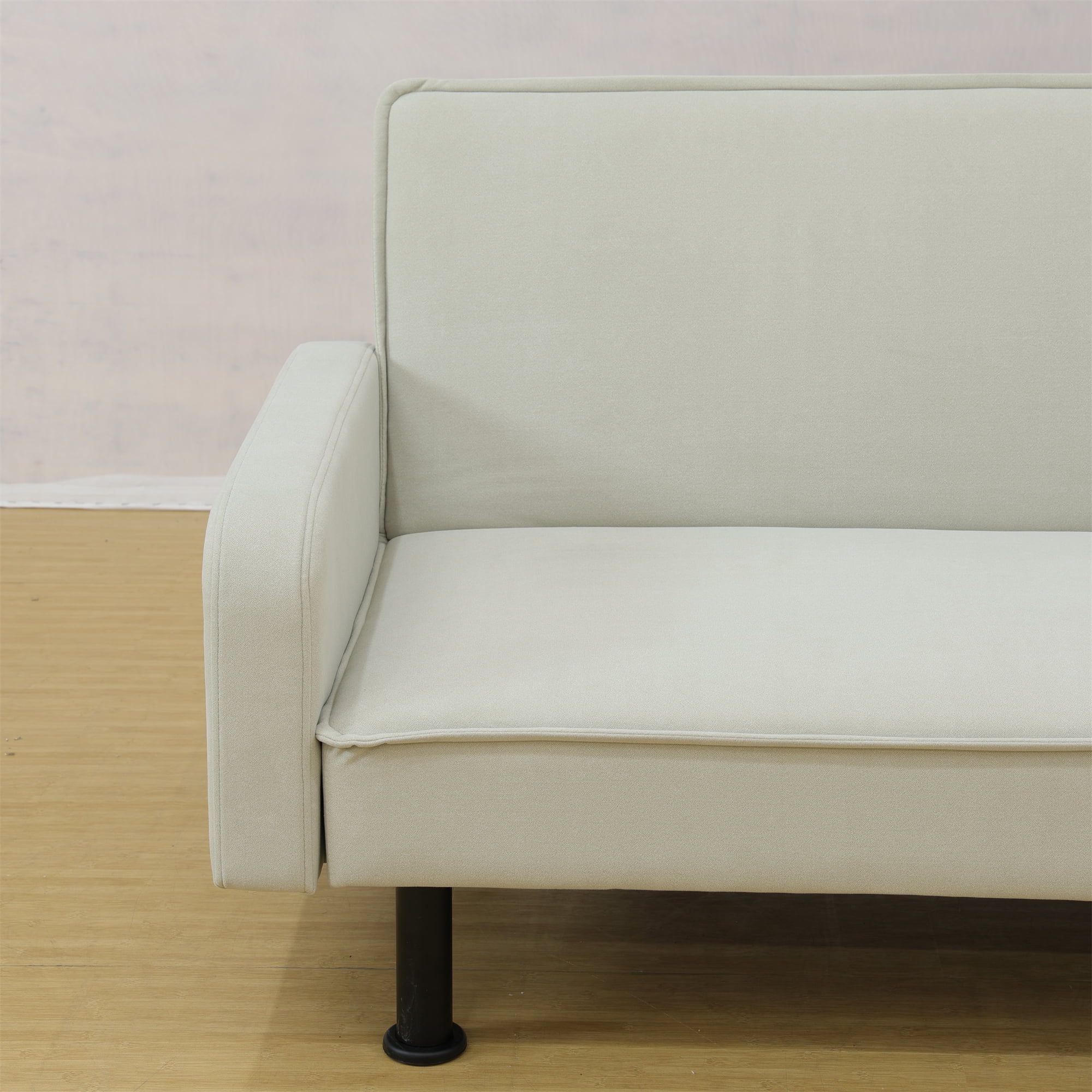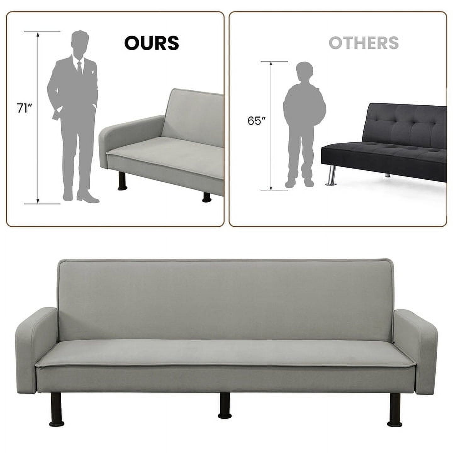 COMFORTABLE SEATING – Enjoy the luxurious comfort of the 78″ futon convertible sofa bed with plush flannel upholstery, providing a cozy and inviting feel for relaxing or entertaining. VERSATILE DESIGN – Easily convert this upholstered 3 seat arm couch from a stylish sofa to a spacious bed, perfect for your home office or guest room. STURDY CONSTRUCTION – Built with a durable wooden frame and high-quality materials, this sofa bed ensures long-lasting use and stability, supporting multiple seating and sleeping arrangements. SPACE-SAVING SOLUTION – Maximize your living space with this compact yet spacious sofa bed, ideal for small apartments, home offices, or multifunctional rooms. EASY ASSEMBLY – Our futon comes with clear and concise instructions, making it easy to assemble and start using in no time. 12-hour professional service team will support you if there is any problem. SPECIFICATION: Overall: 77.5″L x 33.5″W x 29.5″H. Open size – sleeper: 77.5″L x 41″W Back Cushion: 18’H Seat Width: 70.5” Seat Depth: 21” Seat High: 14.5” Leg High: 7” Minimum Door Width: 30” Product Weight: 80.5 lbs Carton Size: 71”L x 34.6” W x 6”H. 44 lbs Features Product Type: Futon Sofa Seating Capacity: 2 Frame Material: Solid Wood Weight Capacity: 600 lb Sleeper Size: Twin Upholstery Material: 100% Flannel Storage Included: No Toss Pillows Included: No Upholstery Color: Light Gray Fill Material: Foam Supplier Intended and Approved Use: Residential Use Leg Material: Metal Leg Color: Black Back Type: Tight Back 3 Position Lock: Yes Cushion Construction: Foam Product Care: Wipe clean with a dry cloth Assembly Level of Assembly: Partial installation Adult Assembly Required: Yes Suggested Number of People for Assembly/Install: 2 Additional Tools Required (Not Included): All Tools Included Warranty Product Warranty: Yes Full or Limited Warranty: Limited Warranty Length: One Year