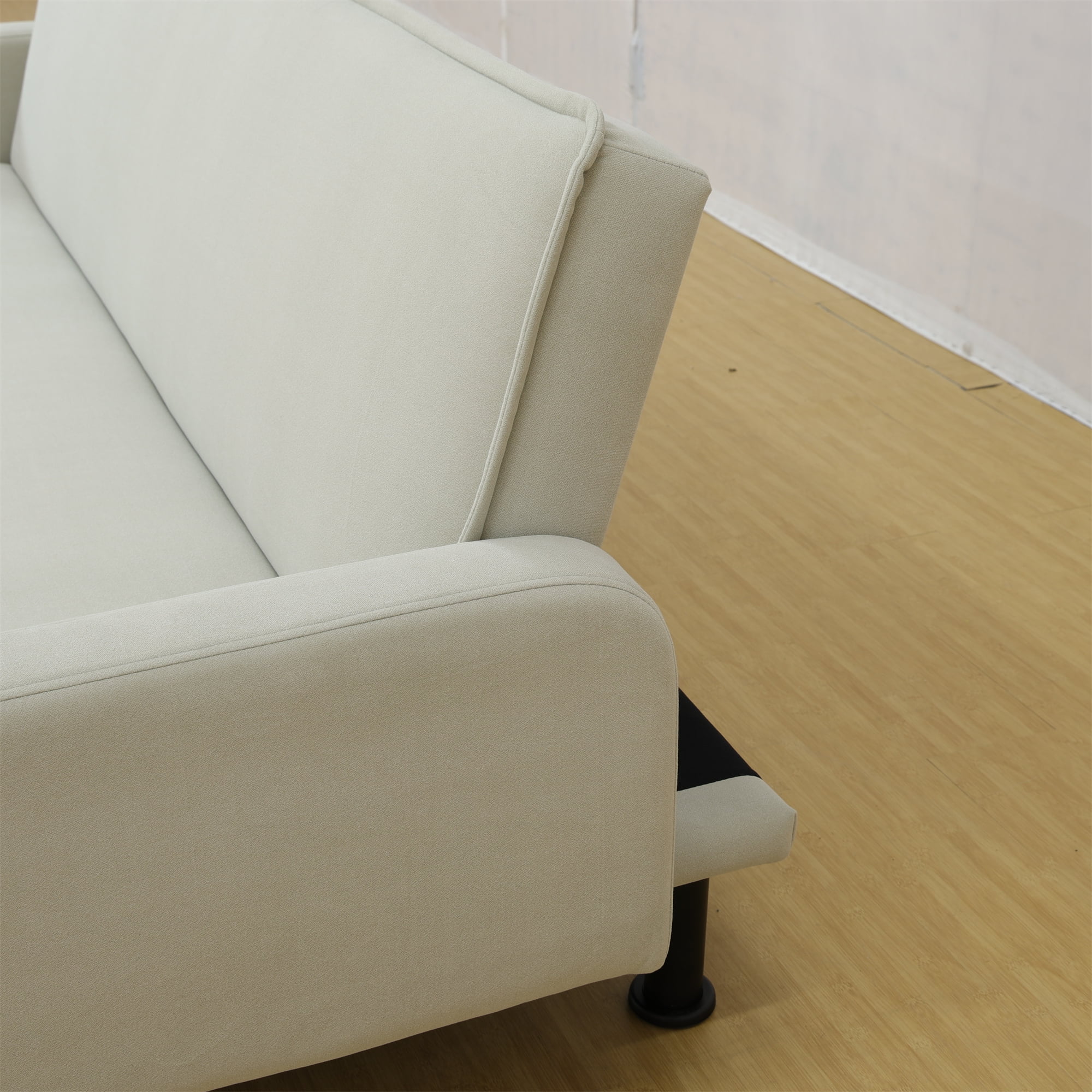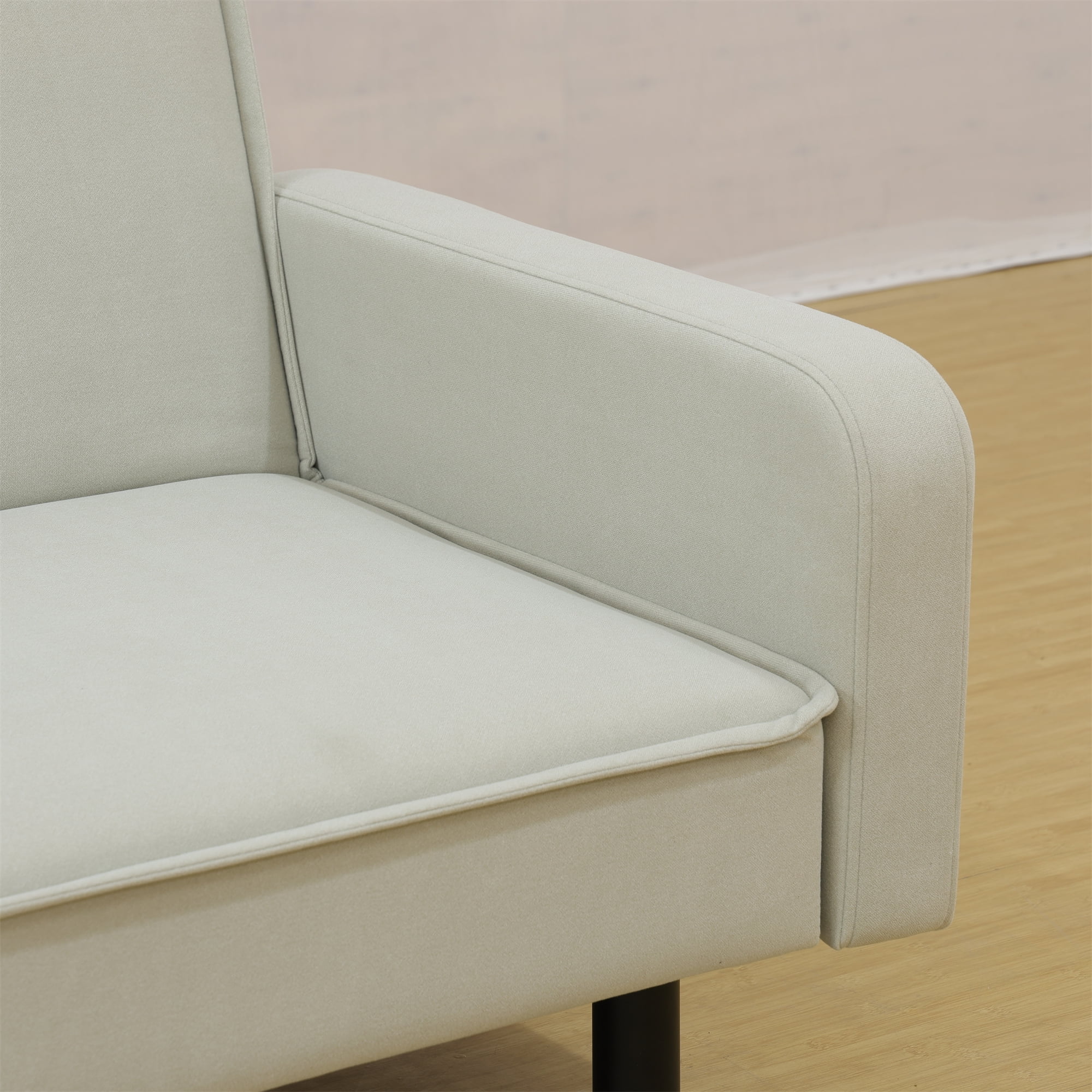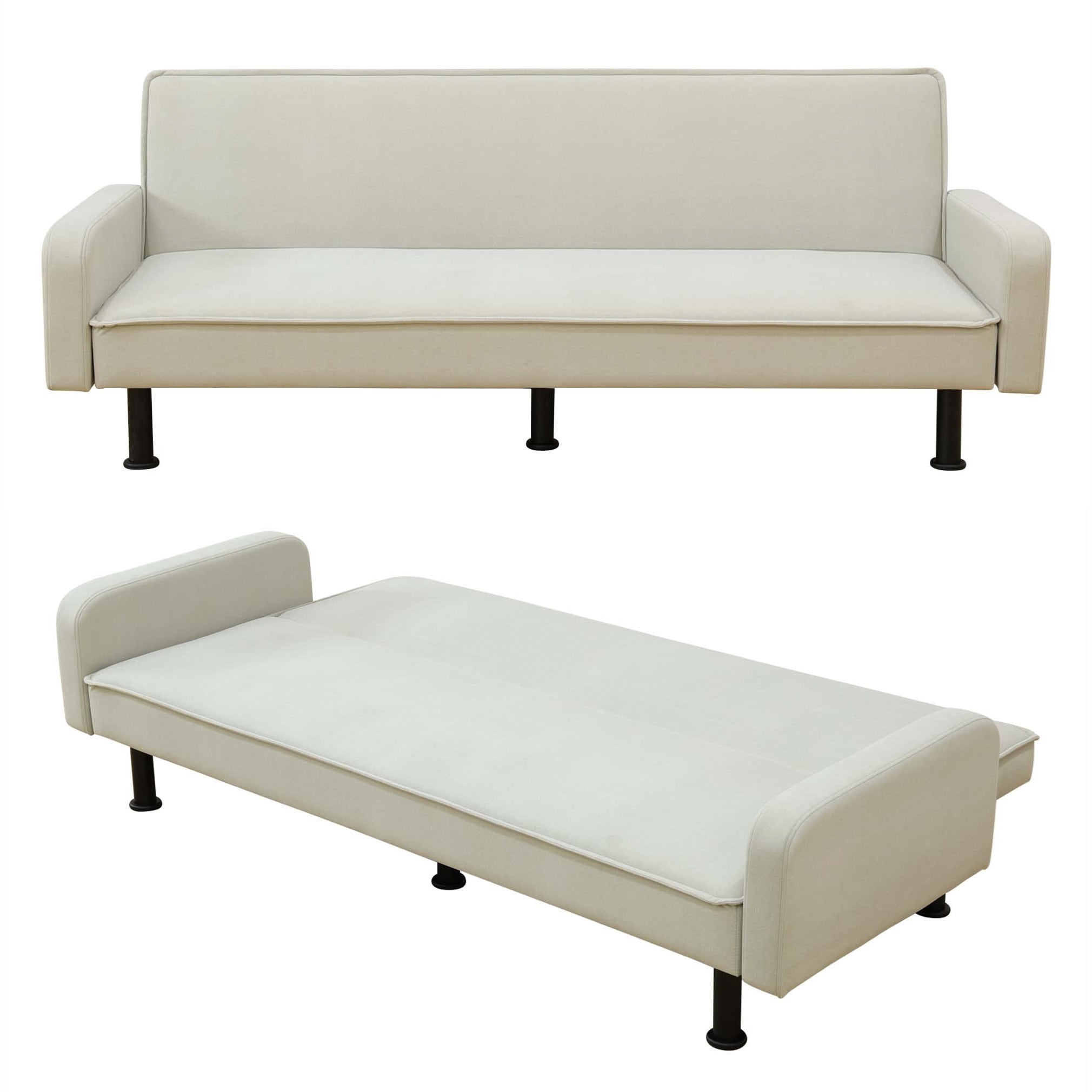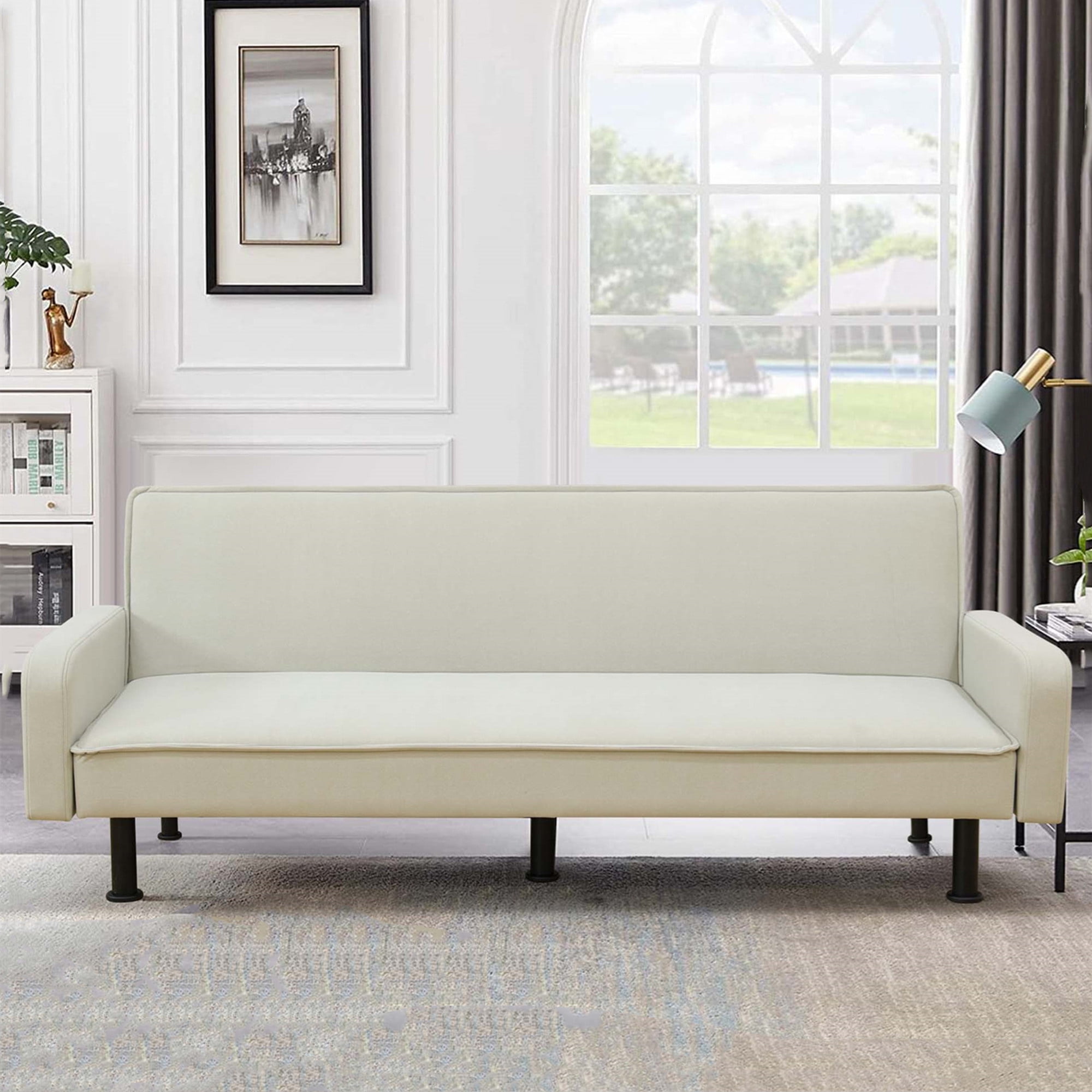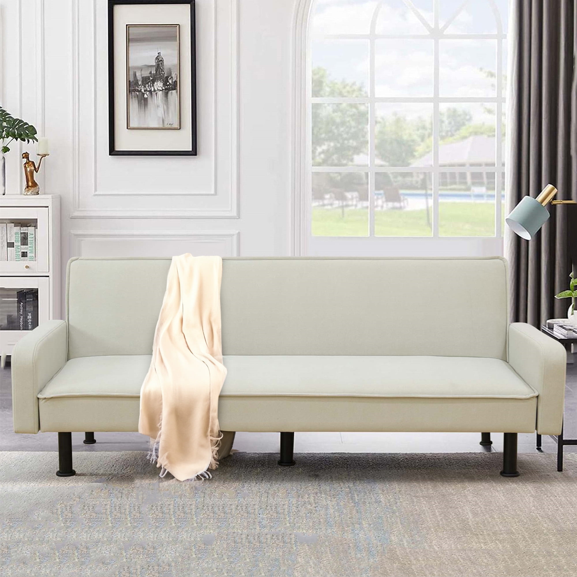 COMFORTABLE SEATING – Enjoy the luxurious comfort of the 78″ futon convertible sofa bed with plush flannel upholstery, providing a cozy and inviting feel for relaxing or entertaining. VERSATILE DESIGN – Easily convert this upholstered 3 seat arm couch from a stylish sofa to a spacious bed, perfect for your home office or guest room. STURDY CONSTRUCTION – Built with a durable wooden frame and high-quality materials, this sofa bed ensures long-lasting use and stability, supporting multiple seating and sleeping arrangements. SPACE-SAVING SOLUTION – Maximize your living space with this compact yet spacious sofa bed, ideal for small apartments, home offices, or multifunctional rooms. EASY ASSEMBLY – Our futon comes with clear and concise instructions, making it easy to assemble and start using in no time. 12-hour professional service team will support you if there is any problem. SPECIFICATION: Overall: 77.5″L x 33.5″W x 29.5″H. Open size – sleeper: 77.5″L x 41″W Back Cushion: 18’H Seat Width: 70.5” Seat Depth: 21” Seat High: 14.5” Leg High: 7” Minimum Door Width: 30” Product Weight: 80.5 lbs Carton Size: 71”L x 34.6” W x 6”H. 44 lbs Features Product Type: Futon Sofa Seating Capacity: 2 Frame Material: Solid Wood Weight Capacity: 600 lb Sleeper Size: Twin Upholstery Material: 100% Flannel Storage Included: No Toss Pillows Included: No Upholstery Color: Light Gray Fill Material: Foam Supplier Intended and Approved Use: Residential Use Leg Material: Metal Leg Color: Black Back Type: Tight Back 3 Position Lock: Yes Cushion Construction: Foam Product Care: Wipe clean with a dry cloth Assembly Level of Assembly: Partial installation Adult Assembly Required: Yes Suggested Number of People for Assembly/Install: 2 Additional Tools Required (Not Included): All Tools Included Warranty Product Warranty: Yes Full or Limited Warranty: Limited Warranty Length: One Year