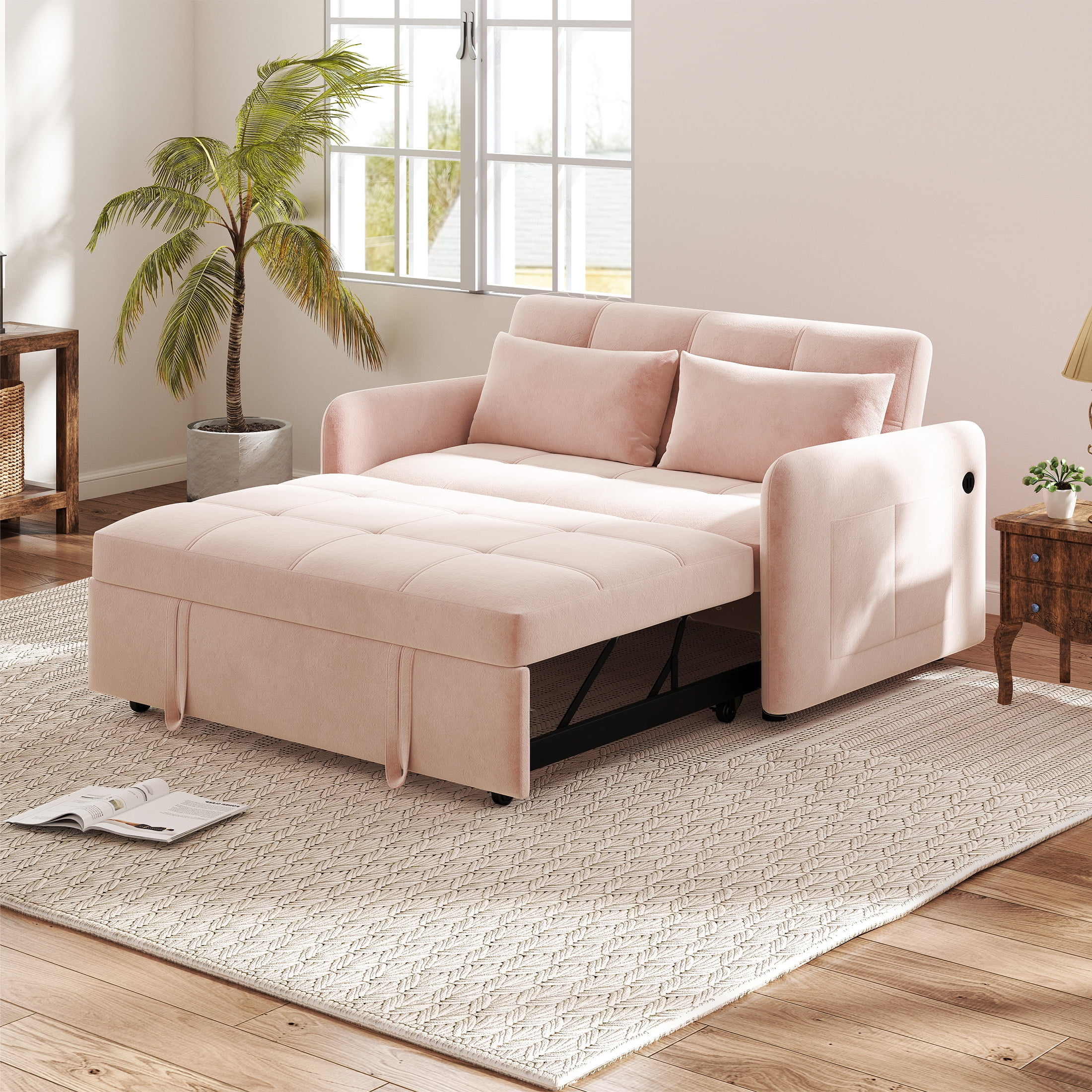 Aukfa 79″ Oversized Double Chaise Memory Foam Sleeper Sofa for Living Room Bedroom, Corduroy, Beige