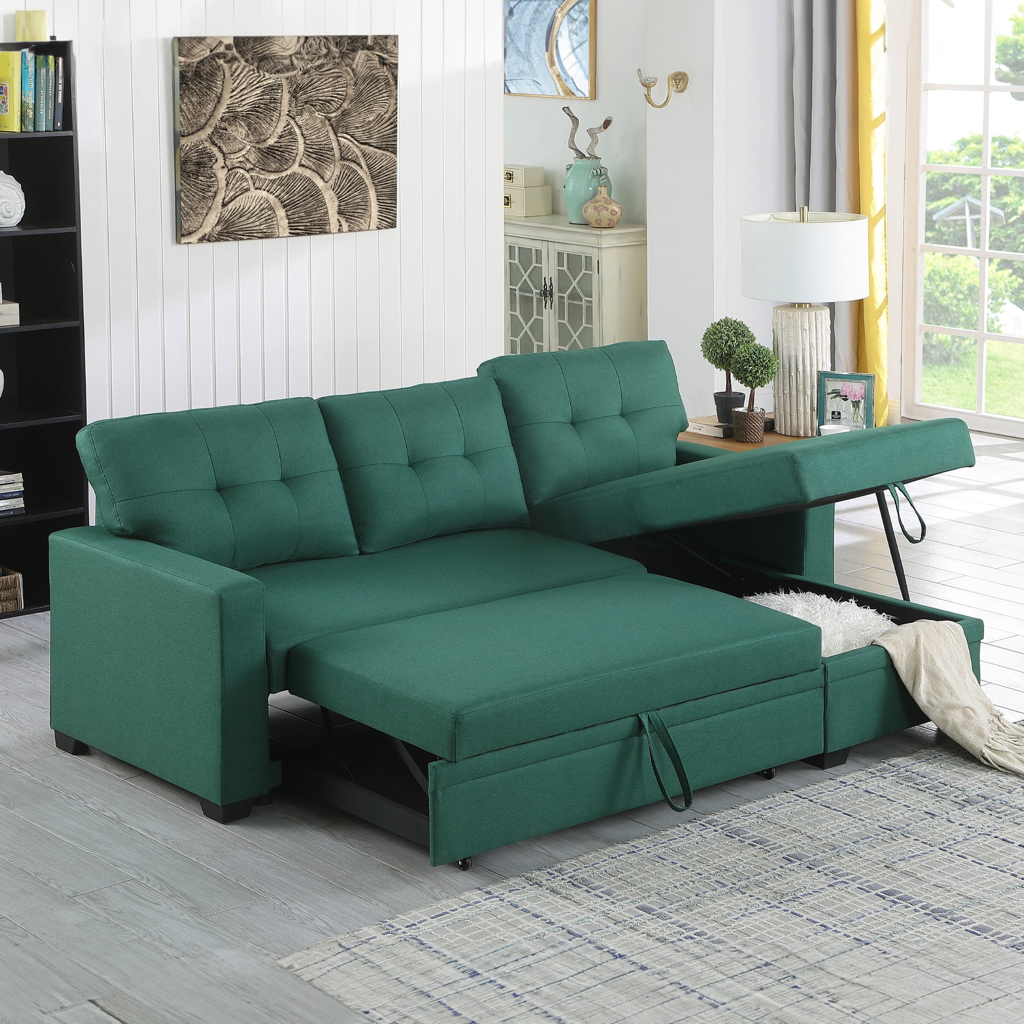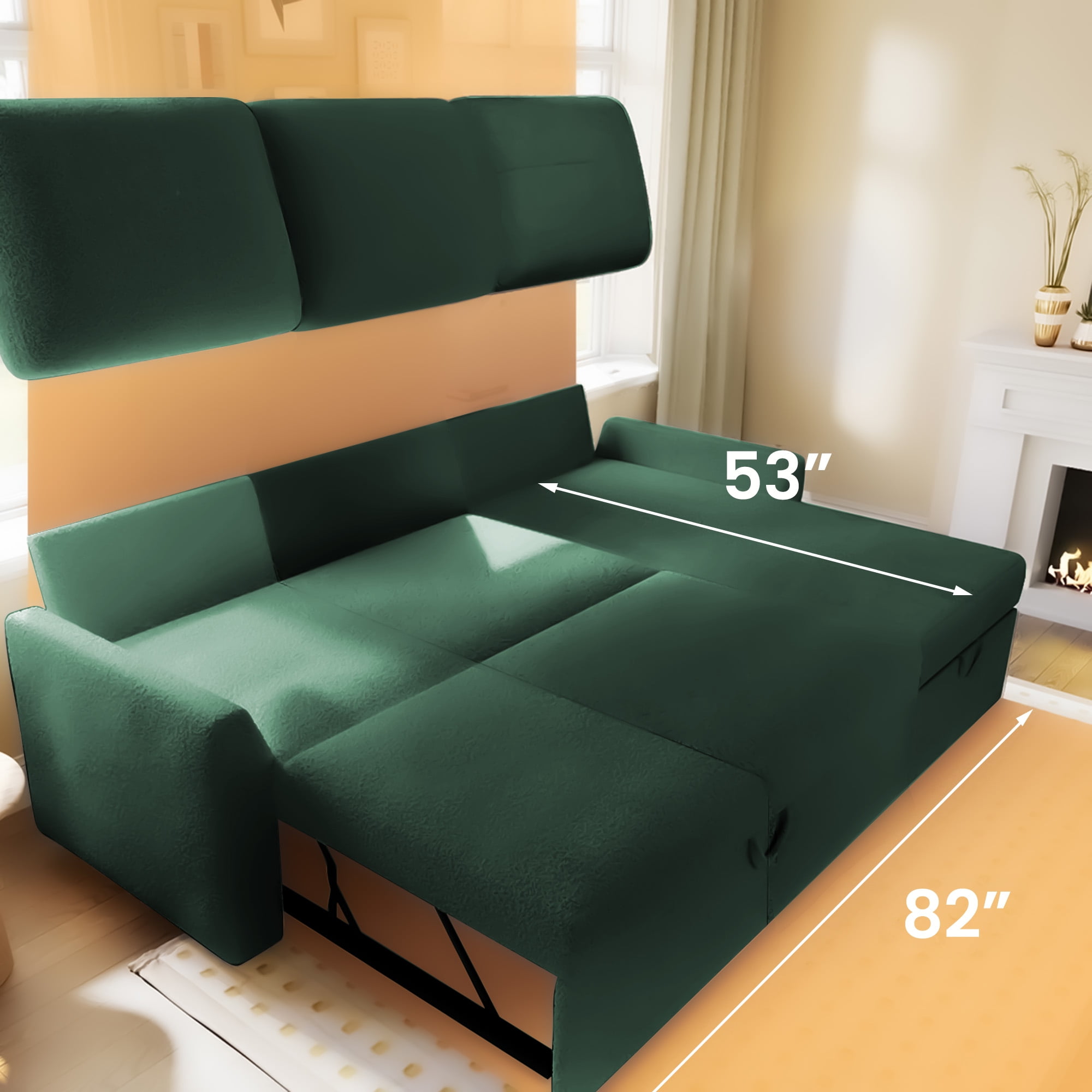 Aukfa 83″ Sofa Bed, Sleeper Sofa, Pull Out Bed with Storage Chaise for Living Room, Linen, Green