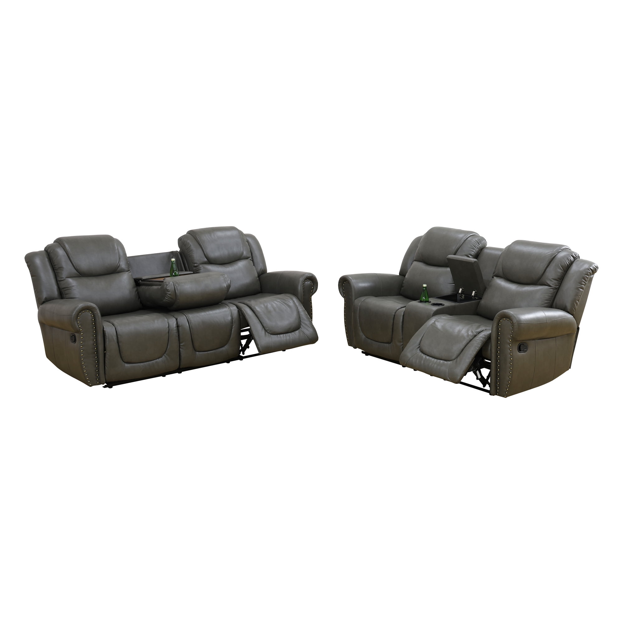 Aukfa 86″ Triple Recliner Chair Oversized Loveseat RV Sofa w/ Cupholder, Home Theater Seating, Leather, Gray