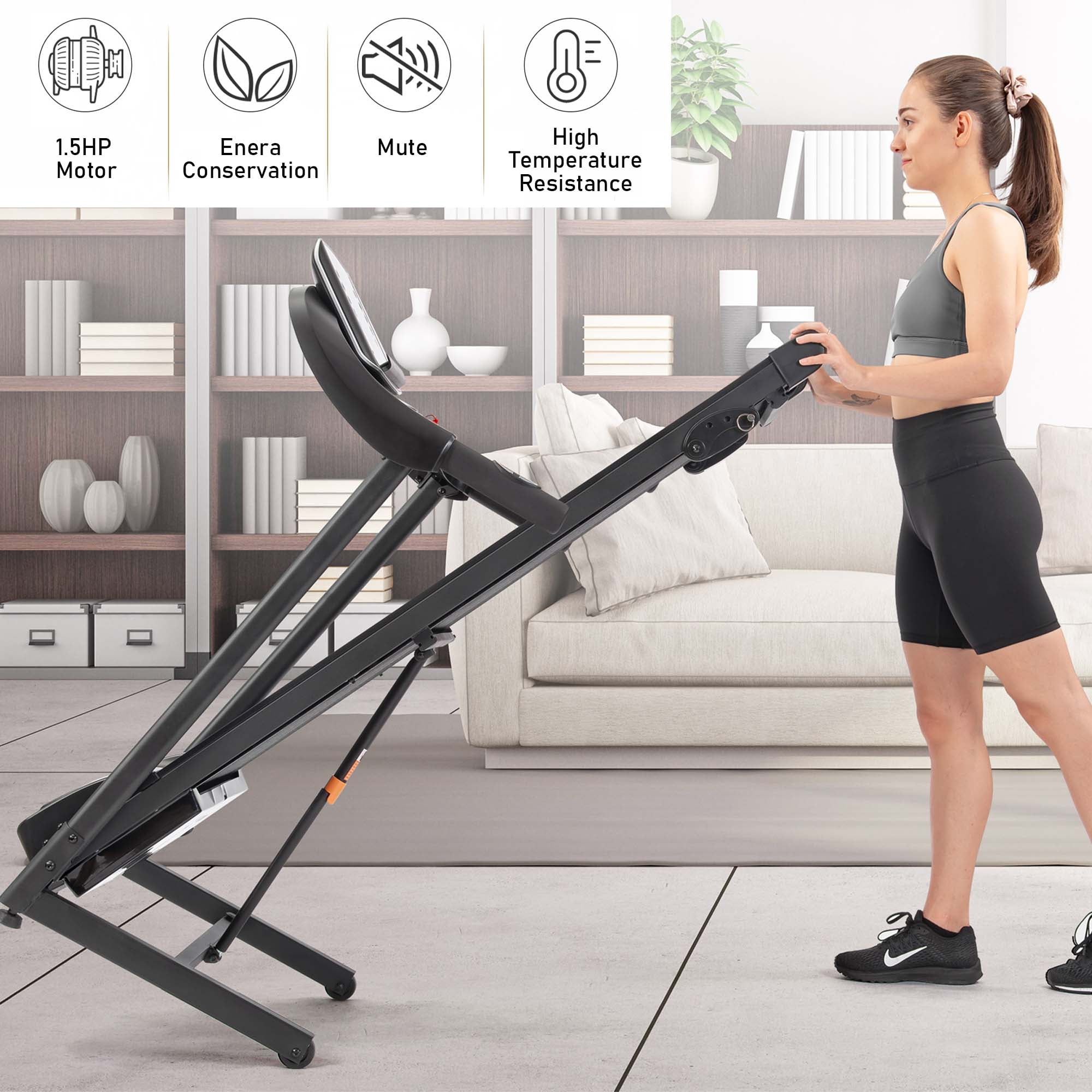 Aukfa AK-SF02M09015-K0 Folding Treadmill with Incline Ideal for walking, jogging, and running at home, office, or apartment Lightweight and foldable design for easy storage and space-saving 2.5HP motor provides smooth running experiences with speeds from 0.5 to 10 MPH Supports up to 300 lbs user weight Includes 12 pre-set programs to enhance your fitness journey Three manual incline settings target specific muscle groups
