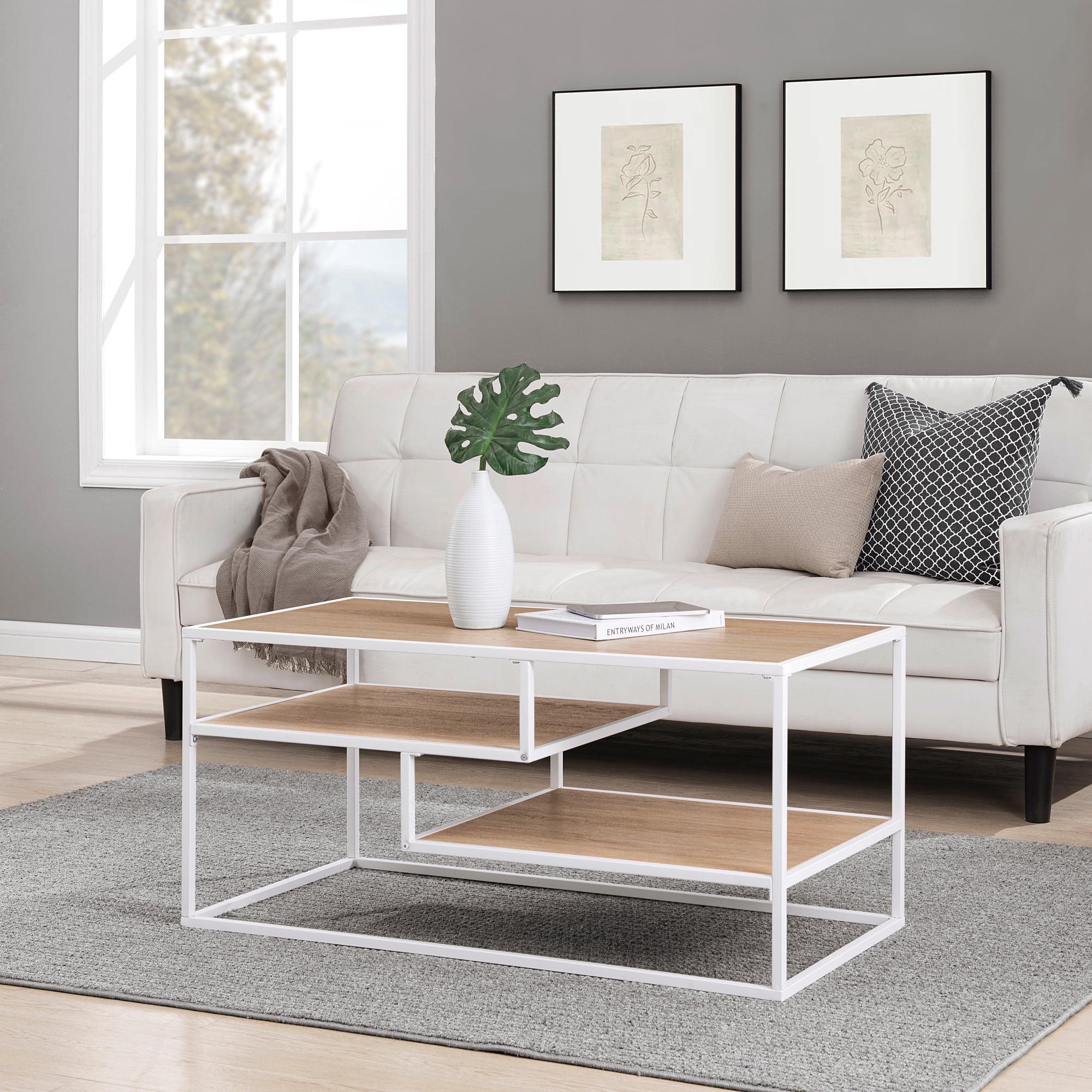 Simple yet eye-catching, the Aukfa AK-FC03-033 coffee table emphasizes clean lines and a bold, straightforward design. Two T-shaped legs create a double-pillar base support, adding geometric interest. It’s made from engineered wood with a finish that highlights the wood grain, offering a hint of rustic charm. Measuring 45″ wide, the rectangular tabletop provides ample space for books, magazines, and remotes. Alternatively, use it to display serving trays of snacks and drinks at your next big get-together.