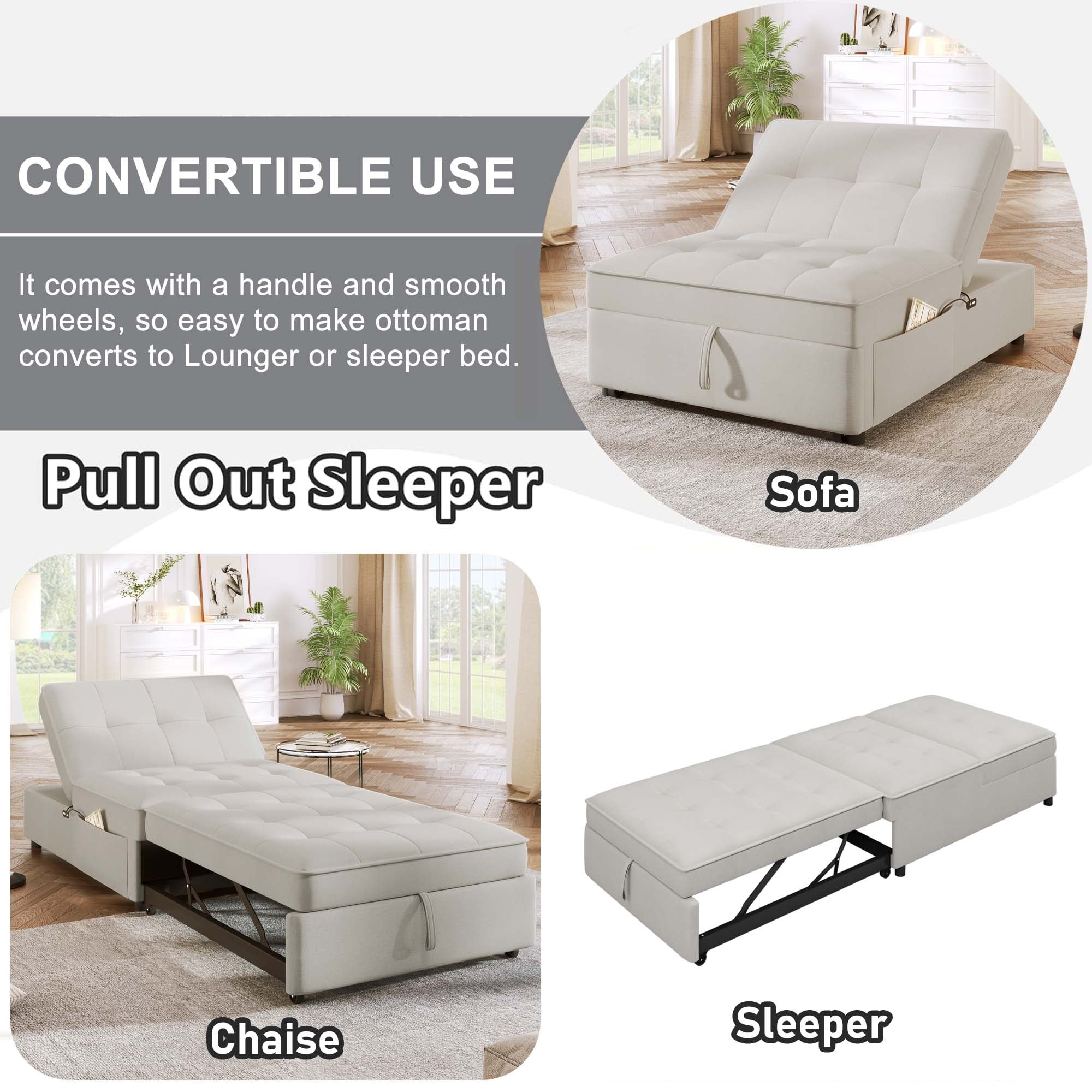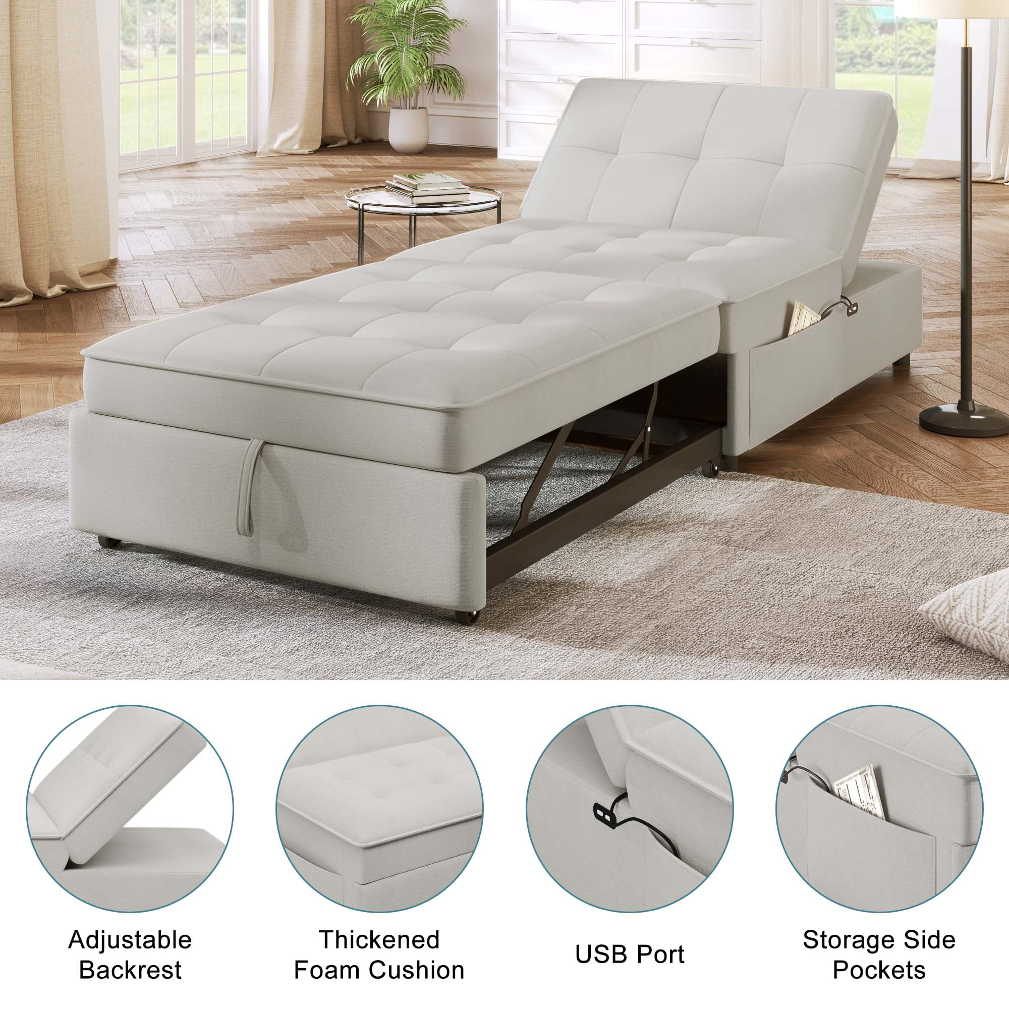 Aukfa Convertible Sleeper Sofa Chair Bed, 3-in-1 Pull Out Sleeper Chair with USB Port and Pocket for Living Room – Beige