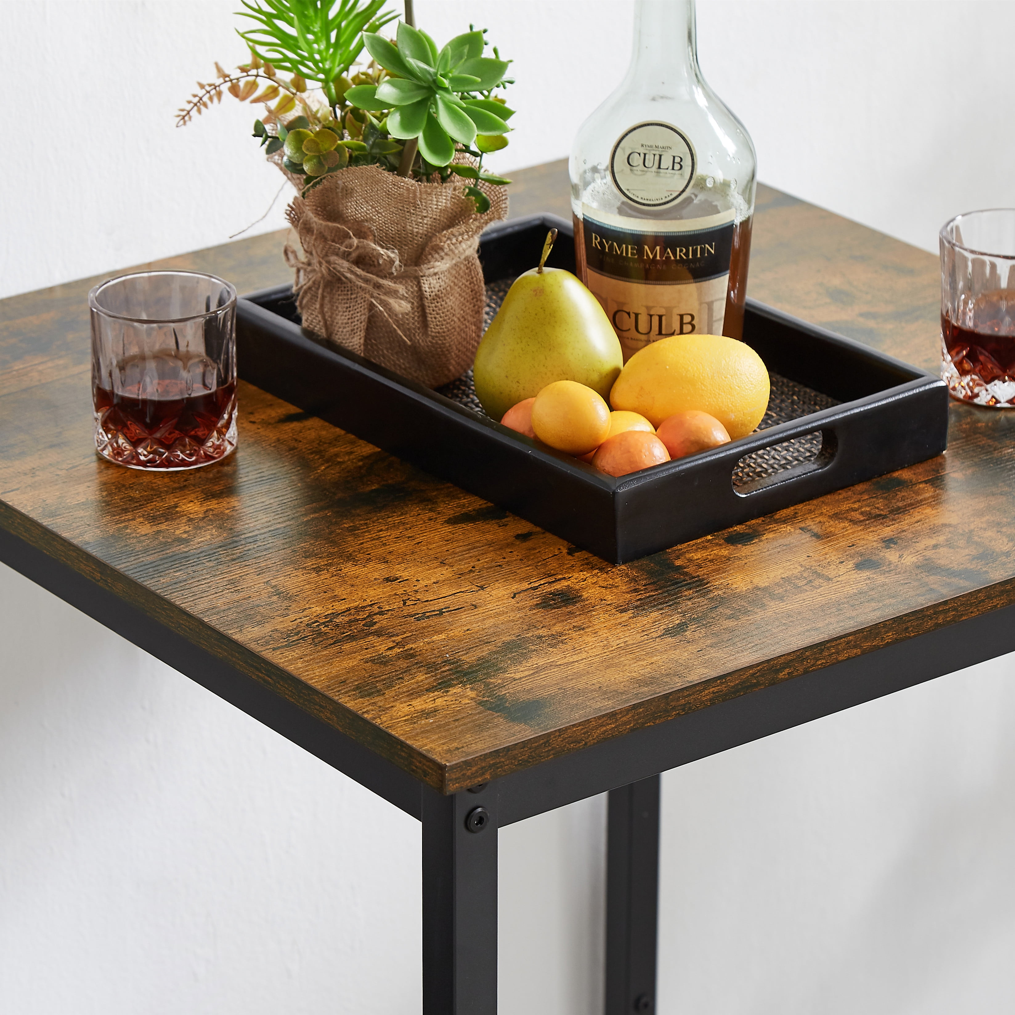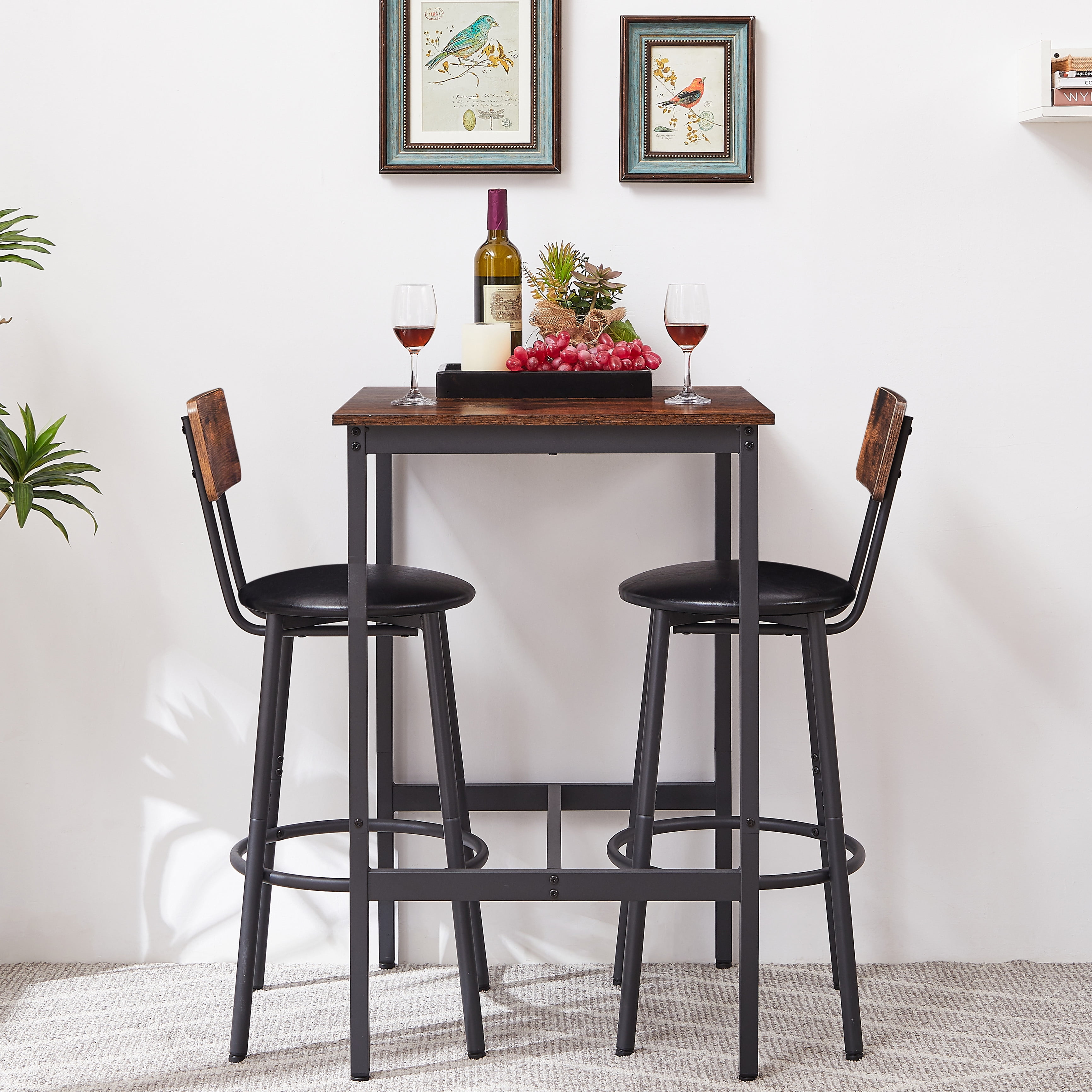MULTI-FUNCTIONAL DINING TABLE SET – This dining table set is designed with versatility in mind, making it suitable for various spaces in your home. It’s perfect for intimate dining with your partner in the kitchen, enjoying a drink at the home bar, and even serves as a compact workspace wherever you need it. IDEAL FOR SMALL SPACES -The dining table and chair set feature compact dimensions, with the square dining table measuring 23.62 inches deep x 23.62 inches wide x 35.4 inches high. This space-saving design is particularly well-suited for small residences, and you can conveniently tuck the chairs under the table to save space. STURDY AND STABLE – Crafted from high-quality particleboard and reinforced with a robust steel frame, this dining table set offers exceptional stability. The addition of bottom crossbars further enhances the structural integrity of the kitchen bar table. Adjustable feet on the dining table and anti-tilt pads on the chairs provide additional stability. FOOTRESTS FOR COMFORT -Both the dining table and 2 chairs come equipped with footrests, ensuring that you can relax and rest your legs comfortably while seated. This practical feature seamlessly combines functionality with comfort in one convenient dining set. EASY ASSEMBLY – Assembling this dining table and kitchen breakfast bar stool set is a breeze. With numbered parts and clear instructions, you can quickly put it together, saving you time and allowing you to relax and enjoy your new furniture in no time. PRODUCT INFORMATION: Bar Table Size: 23.62″L x 23.62″W x 35.43″H StoolSize: 19.5″L x 19.5″W x 35.82″H Overall Product Weight: 37.62 LBS Features: Product Type: Dining Table Set;Counter Height Dining Set Color: Dark Brown/Brown Table: Yes Number of People Set Accommodates: 2 Chair Seating: Yes Number of Benches Included: 2 Table Top Shape: Square Table Top Material: MDF Table Base Material: Metal Seating Material: Particle Board Table Top Color: Residential Use/Non-Residential Use Table Base Type: Four leg Supplier Intended and Approved Use: Residential Use; Non Residential Use Chair Weight Capacity: 350 lbs Back Style: Backrest Imported: Yes Durability: Waterproof Assembly: Assembly Required: Yes Level of Assembly: Full Assembly Needed Installation Required: Yes Warranty: Commercial Warranty: Yes Product Warranty: Yes Warranty Length: 3 Months Warranty Full or Limited Warranty: Full PACKAGE INFORMATION: 1 x Dining Table Set